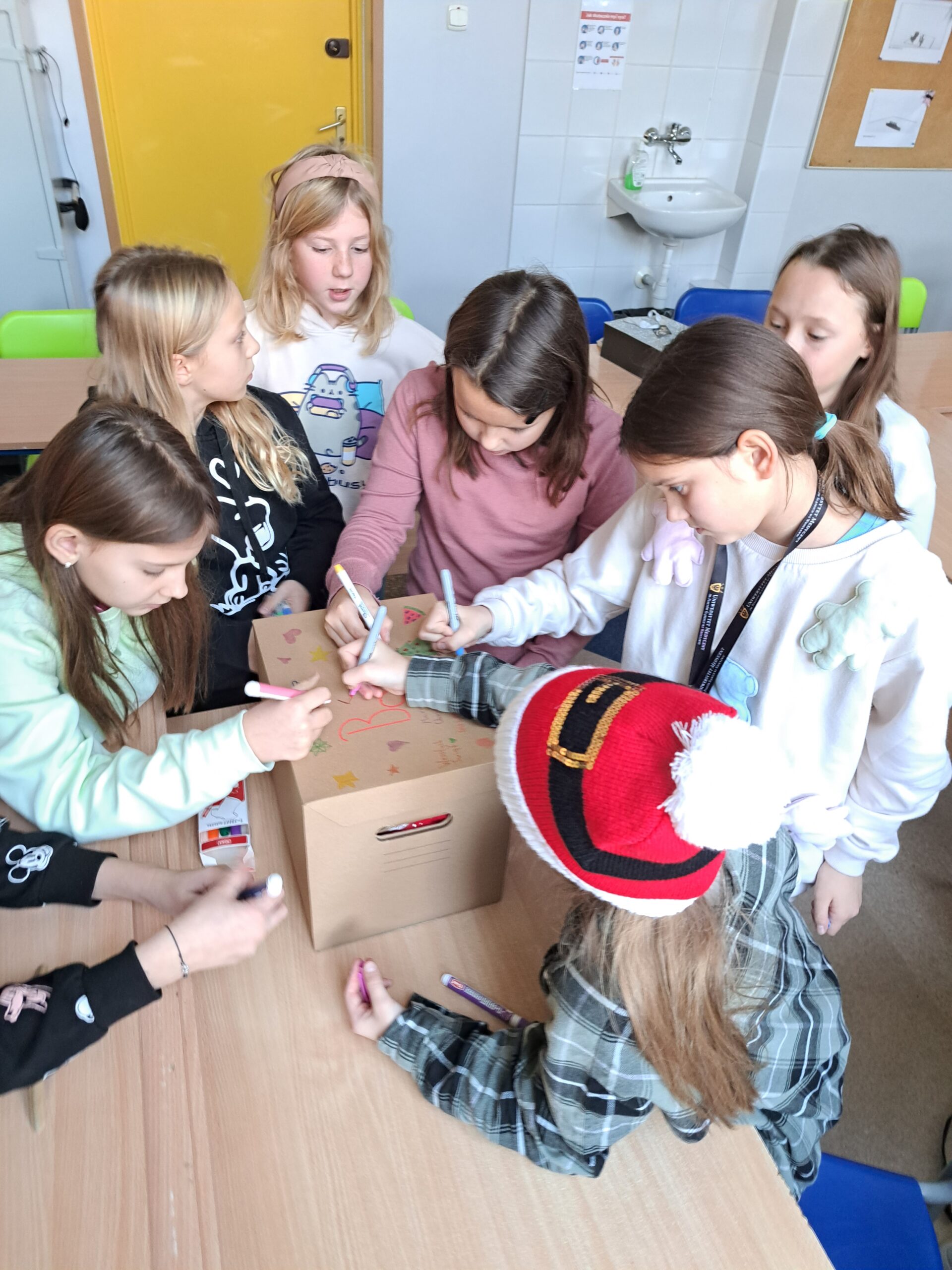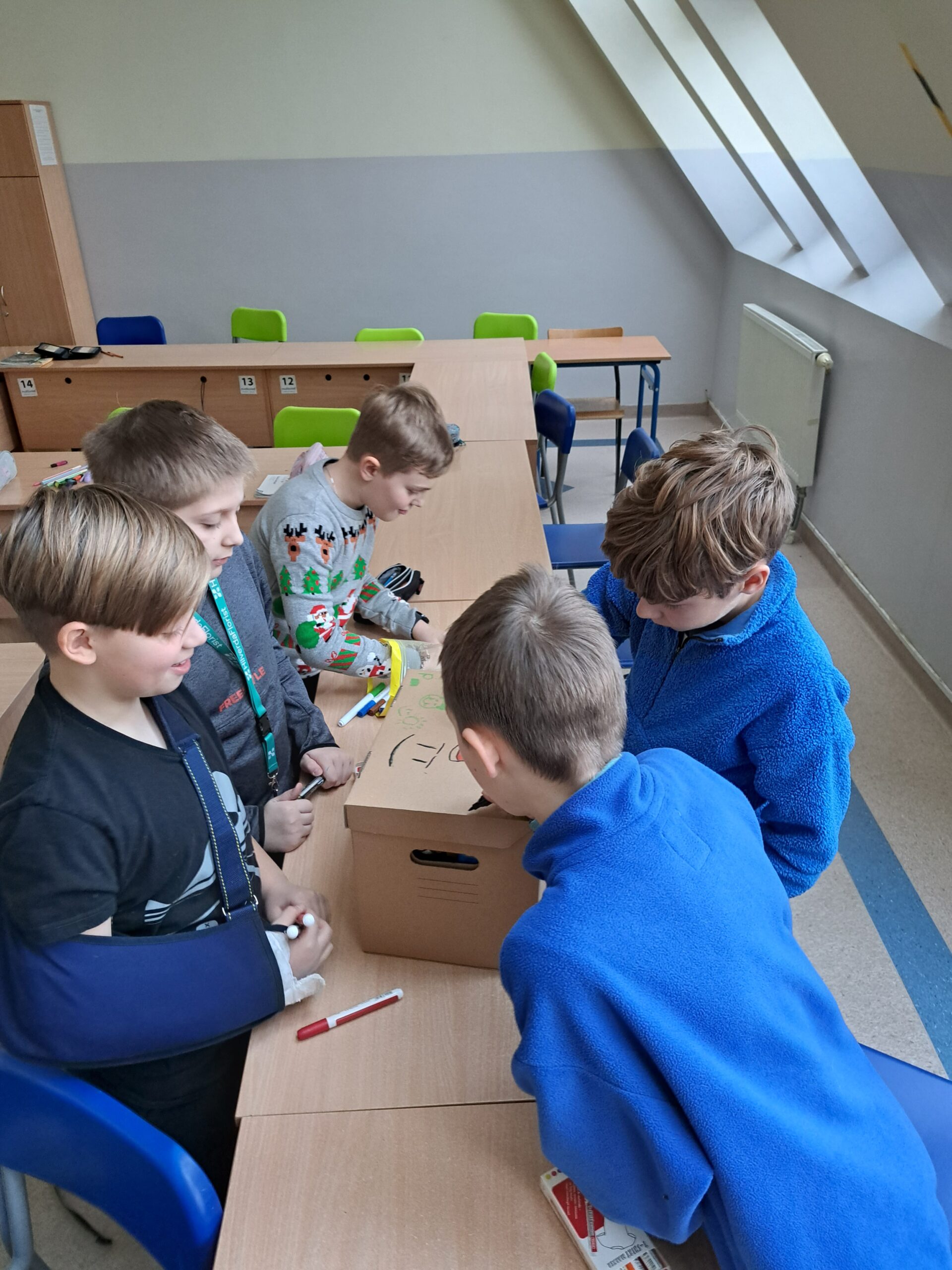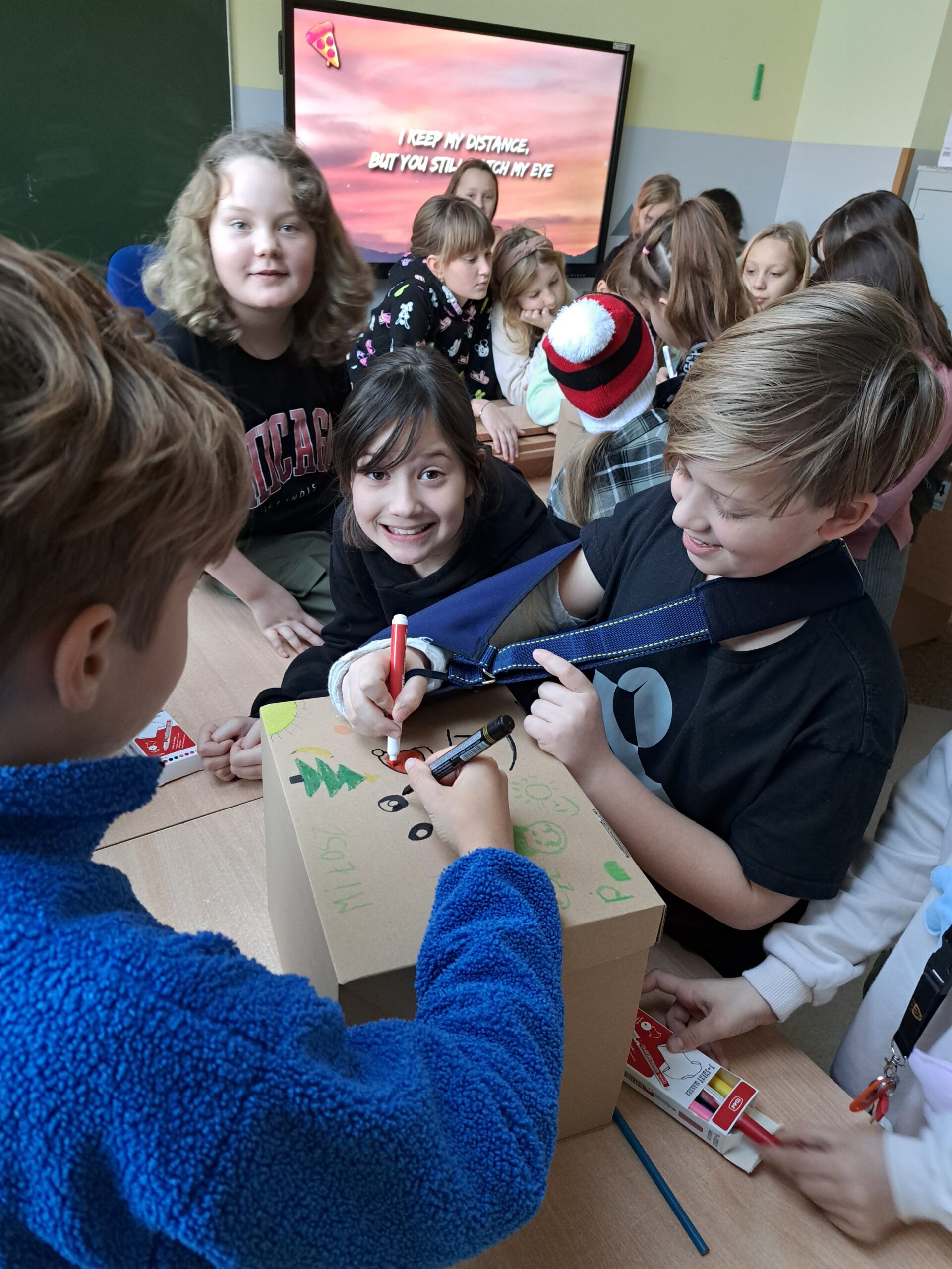 W poniedziałek 4.12 uczniowie z klasy 4b przygotowali paczki dla Basi i Miłosza – dzieci z naszej gminy, znajdujących się w trudnym położeniu materialnym. Spakowane paczki ozdobili rysunkami i podpisami w rytm świątecznych przebojów. Uczniowie cieszyli się, że mogli komuś sprawić radość podarkami, a jednocześnie uświadomili sobie jak wiele sami posiadają. Mamy nadzieje, że ta piękna inicjatywa w przyszłym roku będzie jeszcze większa! Ogromnie dziękujemy również rodzicom z klasy 4b za zakup prezentów.