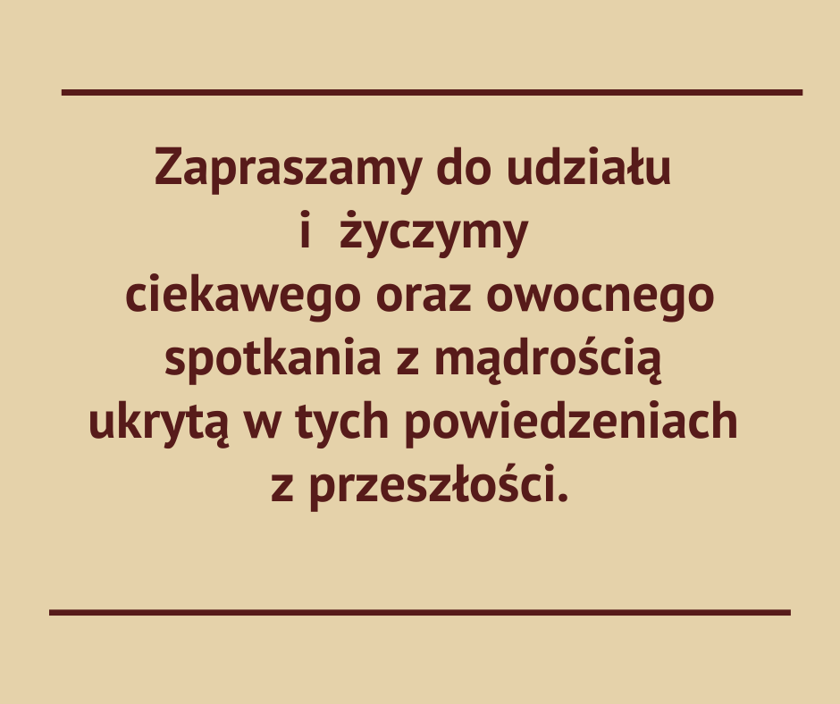 Zapraszam do udziału i życzę ciekawego oraz owocnego spotkania z mądrością ukrytą w tych powiedzeniach z przeszłości.