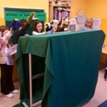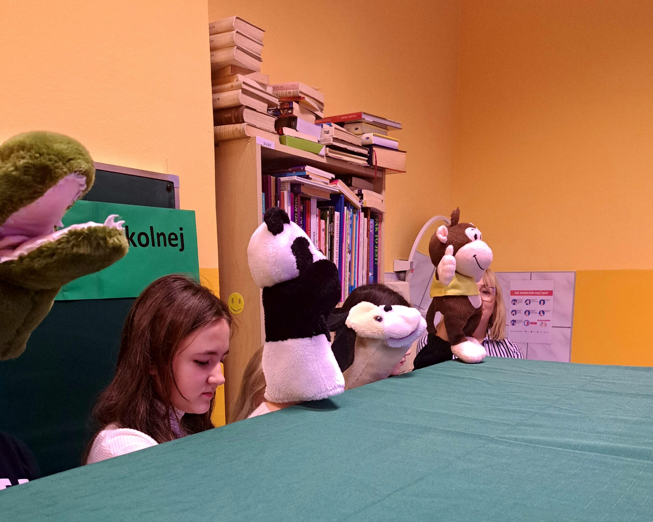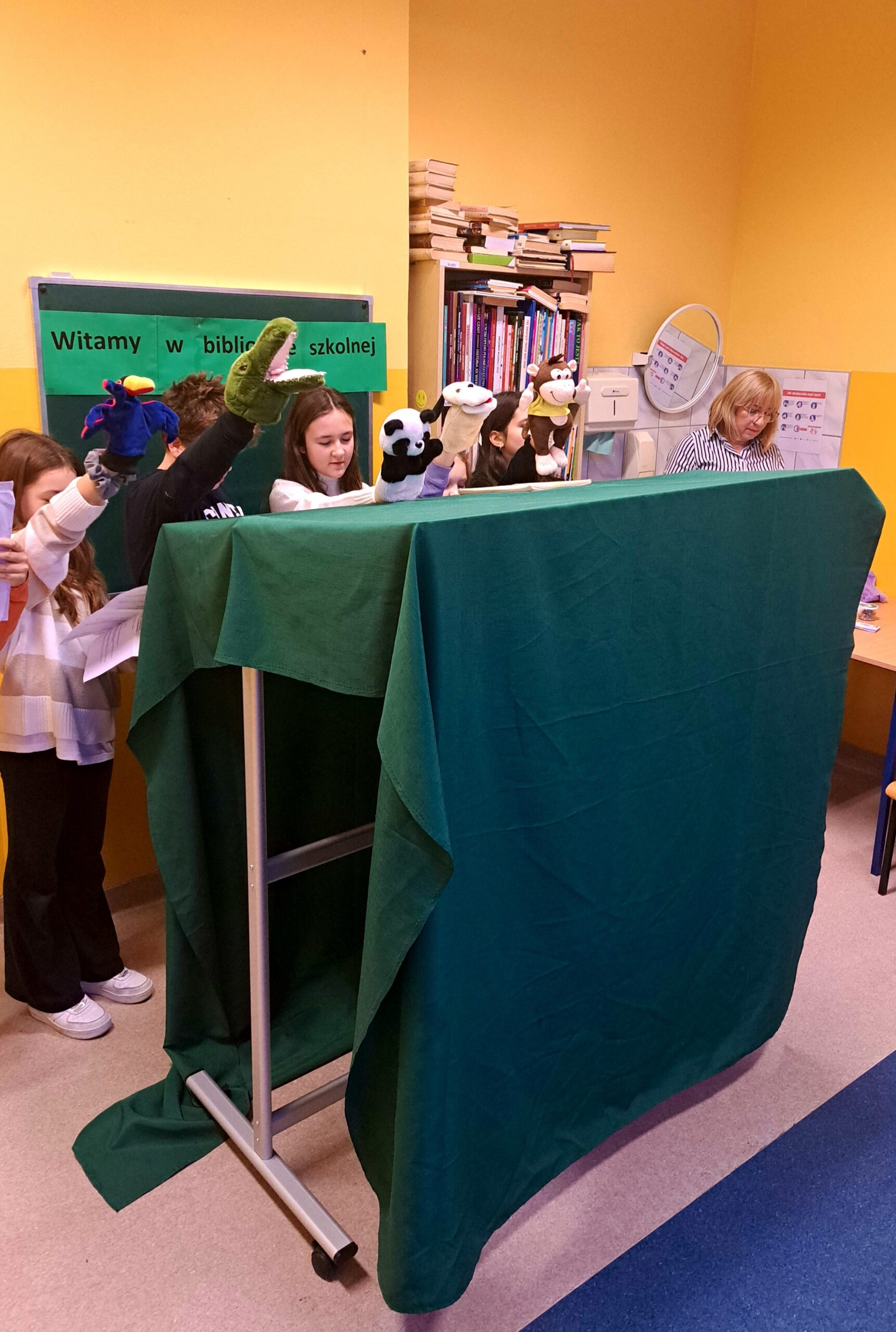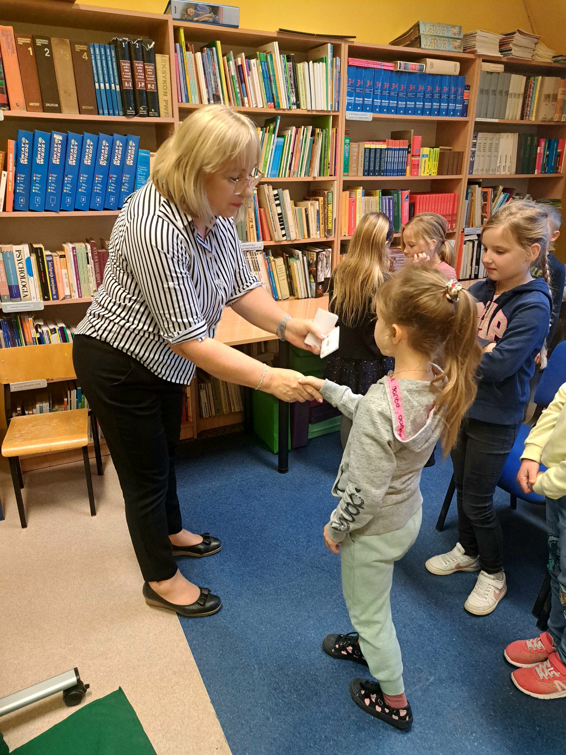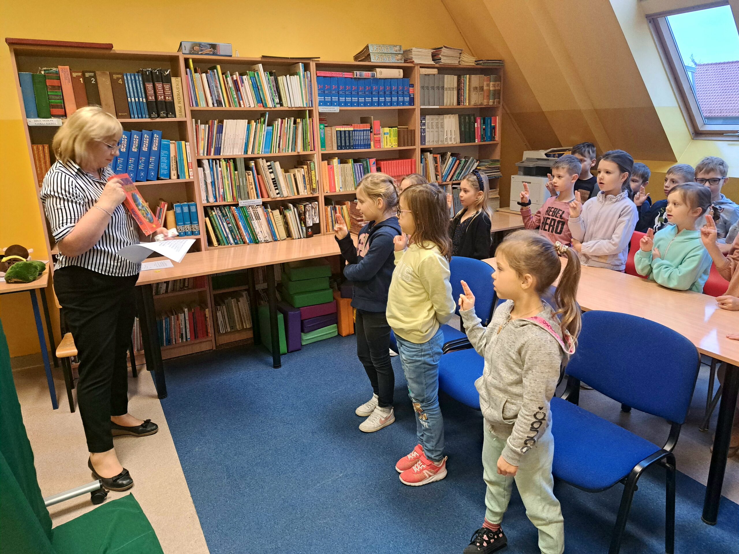 Wieloletnią tradycją szkoły jest uroczystość pasowania uczniów klas pierwszych na czytelników. W tym roku szkolnym była to wielka gromada, bo aż 97 uczniów zostało czytelnikami biblioteki szkolnej. Aby uświetnić tę uroczystość, uczniowie klasy 5 a i 5b, wraz z p. Bożeną Górniak, przygotowali pacynkowe widowisko. Zwierzaczki opowiedziały dzieciom w ciekawy sposób o czytelnictwie i potrzebie dbania o wypożyczone książki. Dzieci ślubowały, że będą o nie bardzo dbały. Otrzymały również prezenty- zakładki i książki oraz przepustkę do biblioteki jaką jest elektroniczna karta czytelnika. Z niecierpliwością czekali na możliwość wypożyczenia książki, wykorzystując kartę. Przybyło nam nie tylko wielu czytelników, ale prawdziwych miłośników książek, którzy z zapałem przystąpili do wertowania księgozbioru. Do zobaczenia w bibliotece !