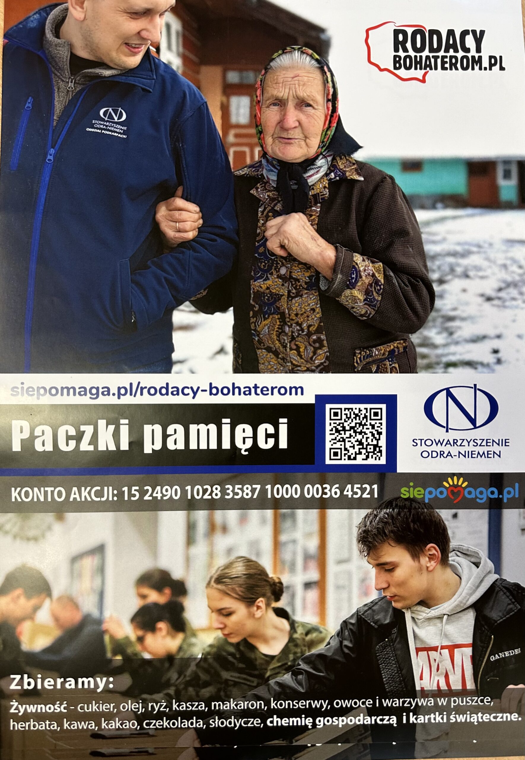 15 grudnia zakończyliśmy akcję Paczki pamięci Rodacy Bohaterom. Program prowadzi Stowarzyszenie Odra-Niemen. To niesamowita okazja, żeby naszym Rodakom, żyjącym poza granicami ojczyzny, pomóc w sposób duchowy i materialny. Kolejny raz mogliśmy liczyć na Państwa wrażliwe i otwarte serca. Zebraliśmy pięć kartonów najpotrzebniejszych produktów.