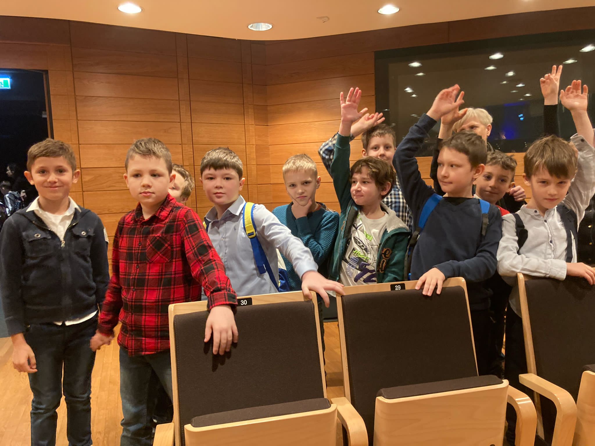 Dnia 1 lutego zerówka i klasy 1-3 wybrały się na koncert do Narodowego Forum Muzyki we Wrocławiu. Koncert pt. ,,Witajcie w naszej bajce wzbudził ogromne zainteresowanie uczniów. Pan Kleks prowadził ciekawą lekcję, której przygrywała przepiękna muzyka. Piosenki śpiewane przez chór, dziecięcy, młodzieżowy, męski, damski, orkiestra oraz wspaniałe instrumenty wprowadziły nas w dobry nastrój. Witajcie w naszej bajce, na wyspach Bergamutach, Kaczka Dziwaczka to tylko niektóre z utworów zagranych i zaśpiewanych w NFM. Polecamy wszystkim.