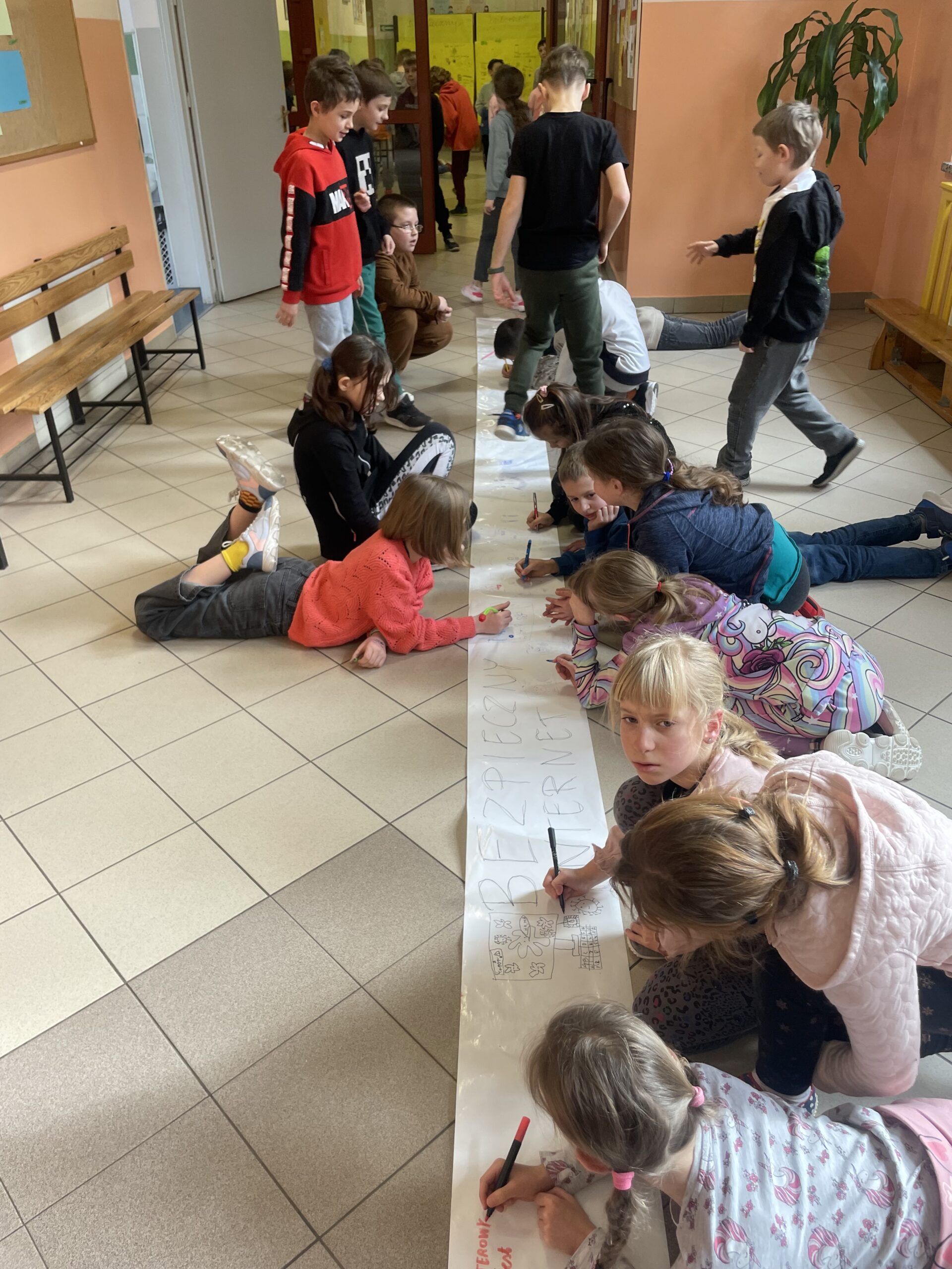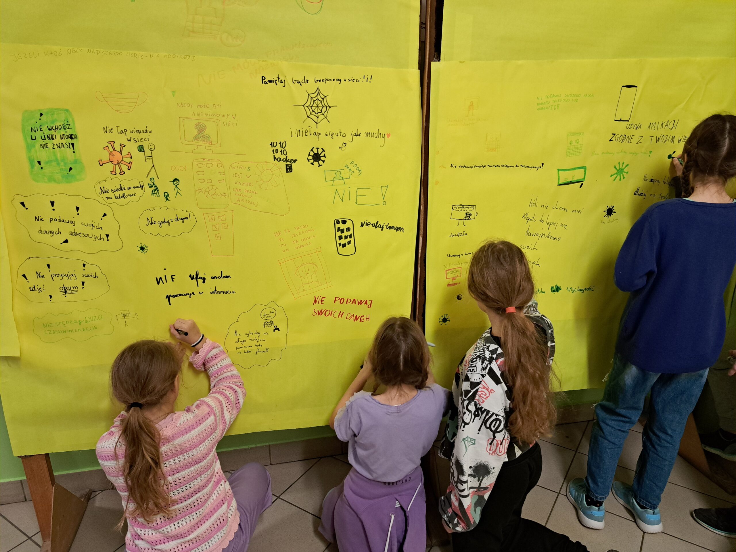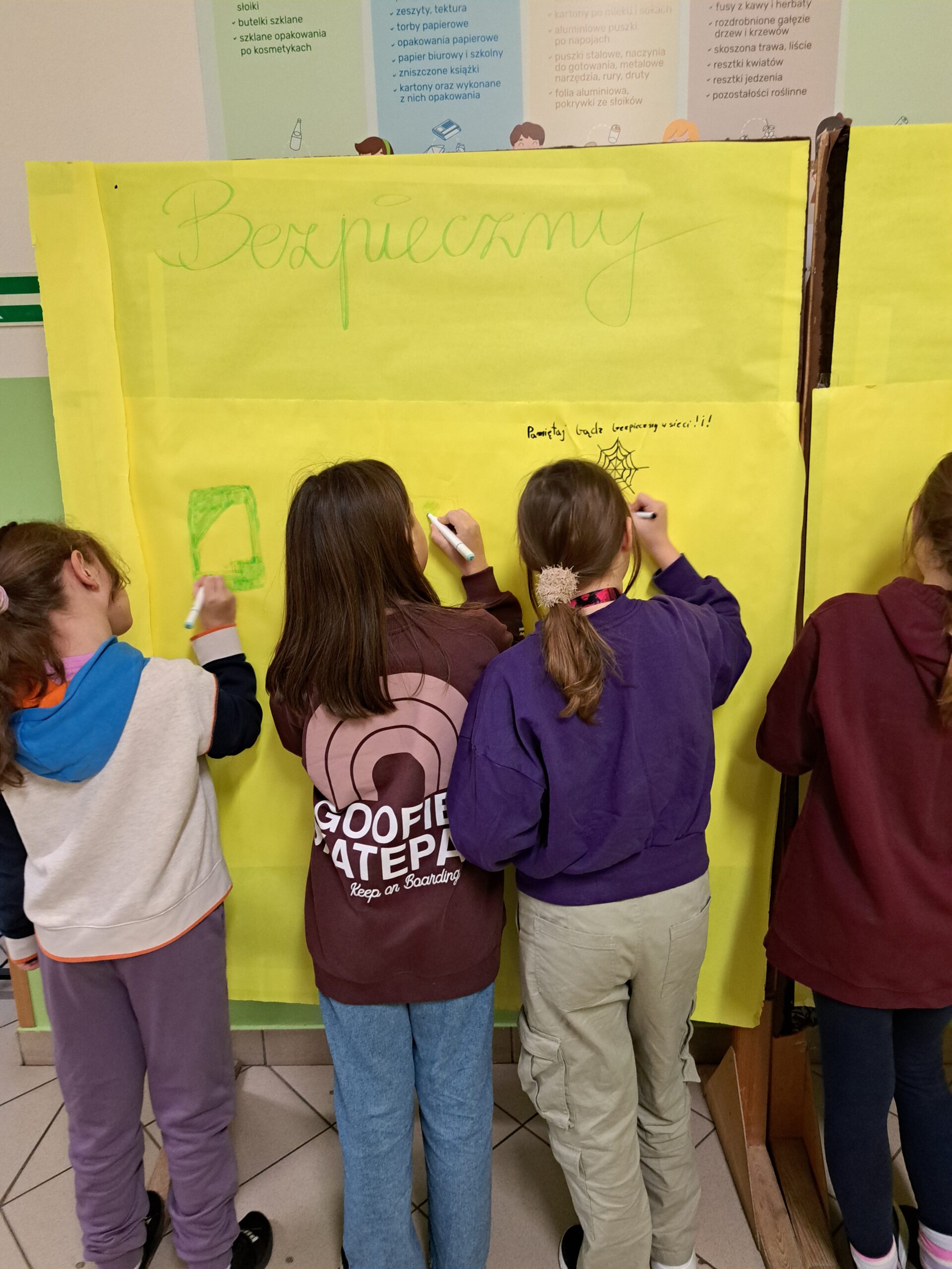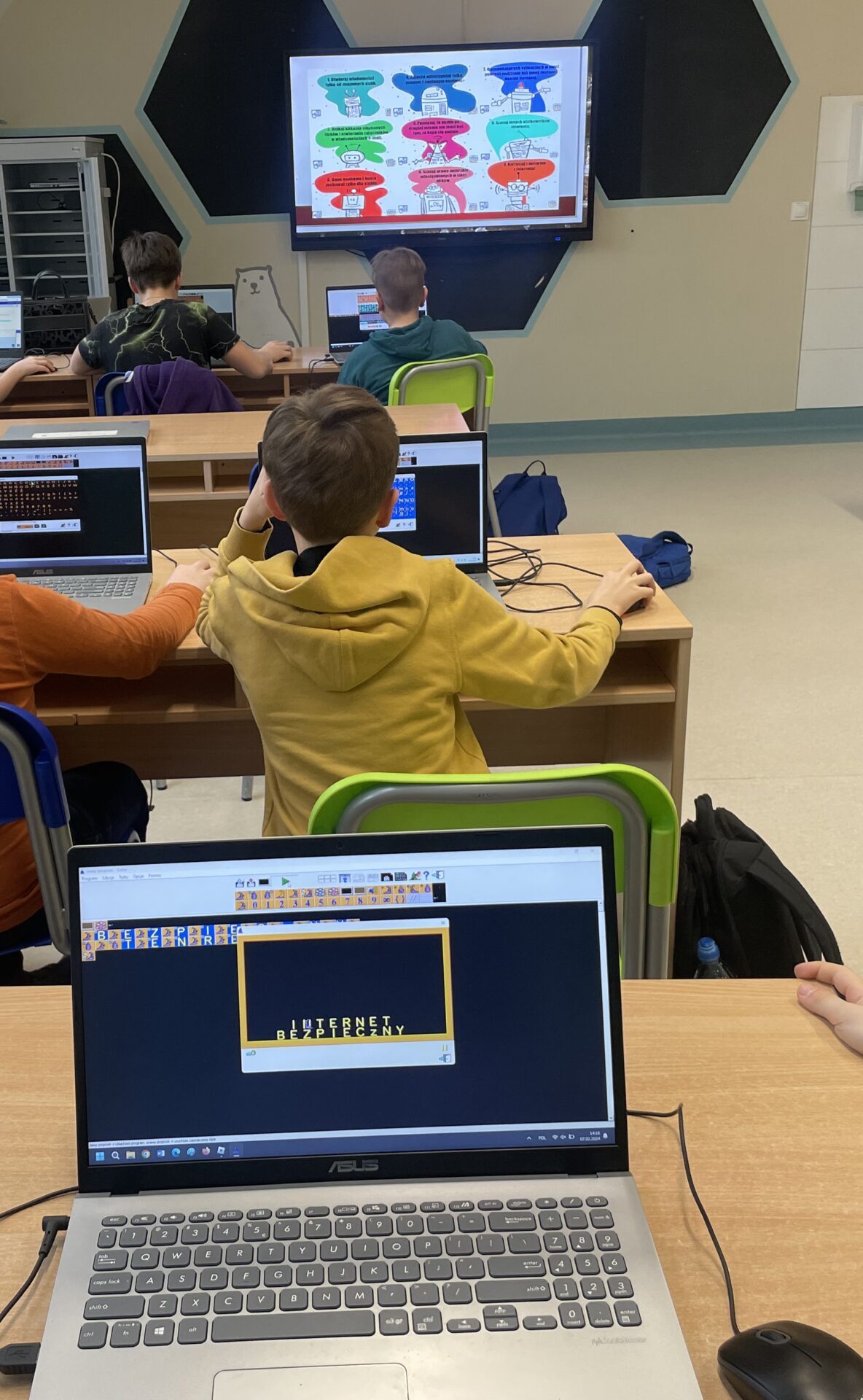 6 lutego 2024 r. obchodziliśmy kolejną edycję Dnia Bezpiecznego Internetu (DBI). Działania na rzecz bezpieczeństwa dzieci i młodzieży odbywały się w naszej szkole przez cały tydzień (od 5.02.2024 – 09.02.2024). W ramach DBI we wszystkich klasach odbyły się pogadanki na temat bezpiecznego korzystania z Internetu. Podczas lekcji informatyki, uczniowie klas 4-8, przypomnieli sobie zasady odpowiedniego zachowania w sieci czyli Netykietę. Swoje przemyślenia i internetowe doświadczenia zobrazowali tworząc scenki w języku programowania Scratch oraz Baltie. Przez cały tydzień w wyznaczonym miejscu na korytarzu uczniowie brali udział w tworzeniu mutalu o bezpieczeństwie.
