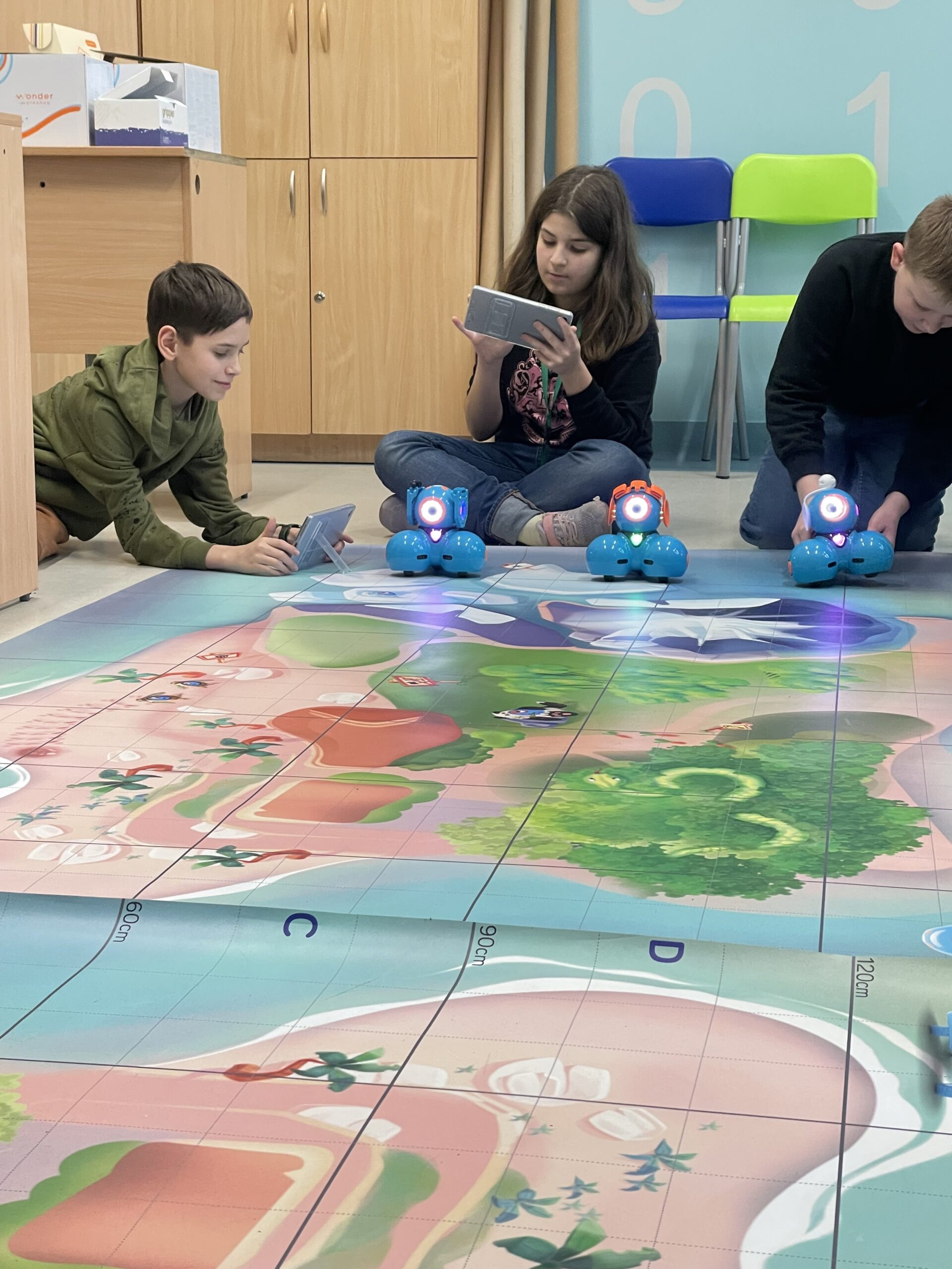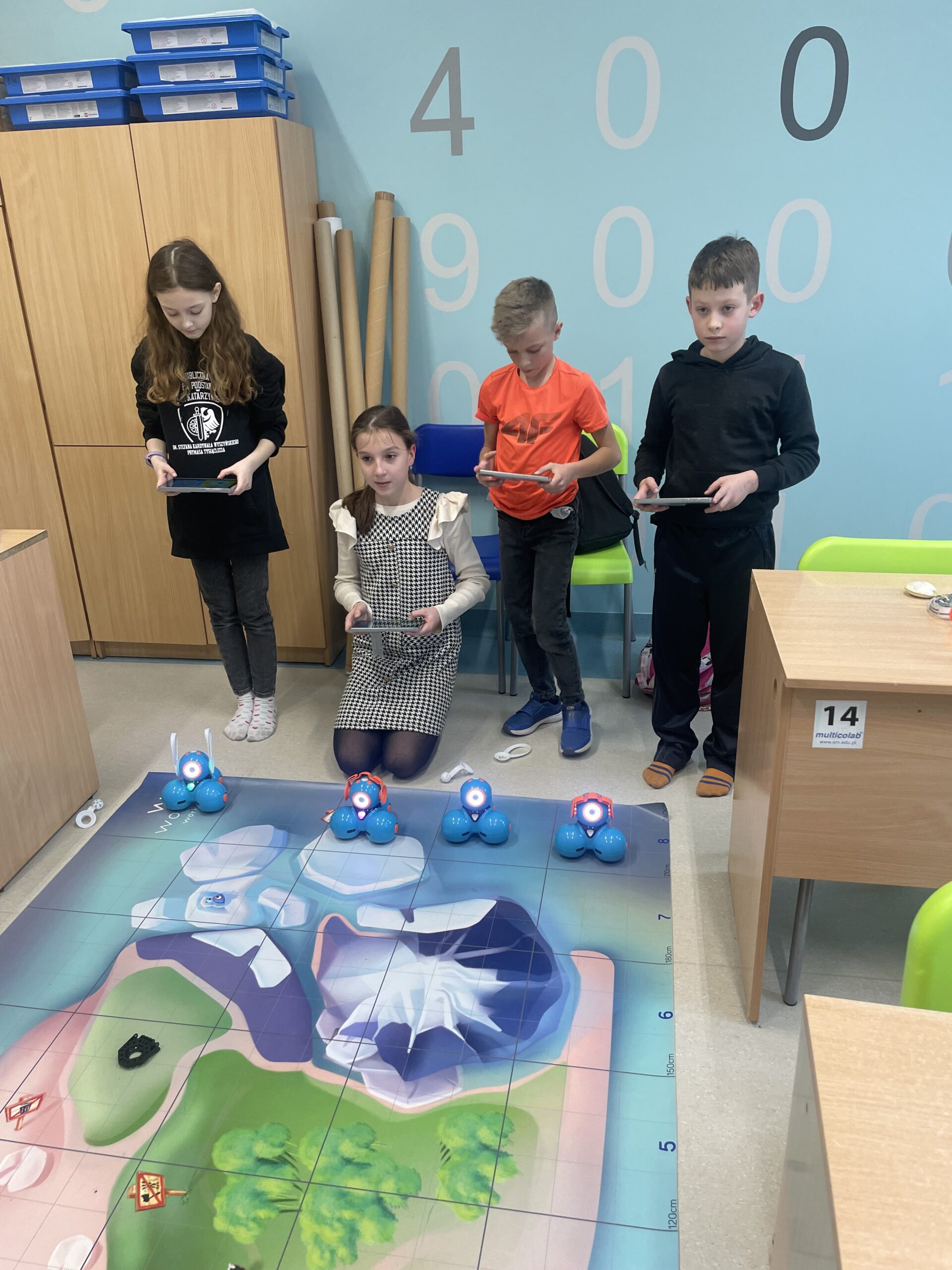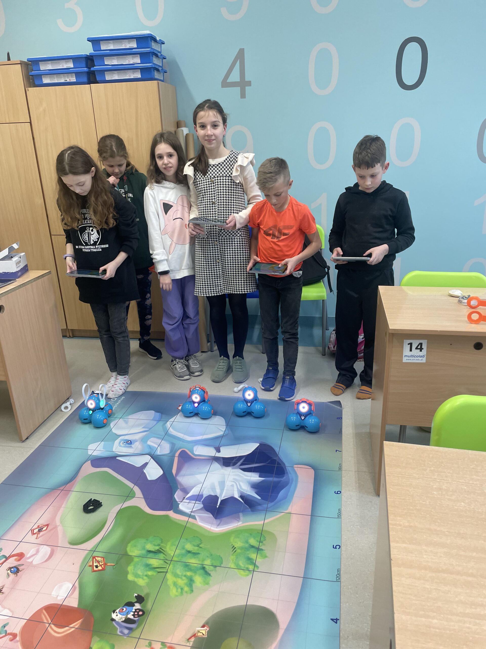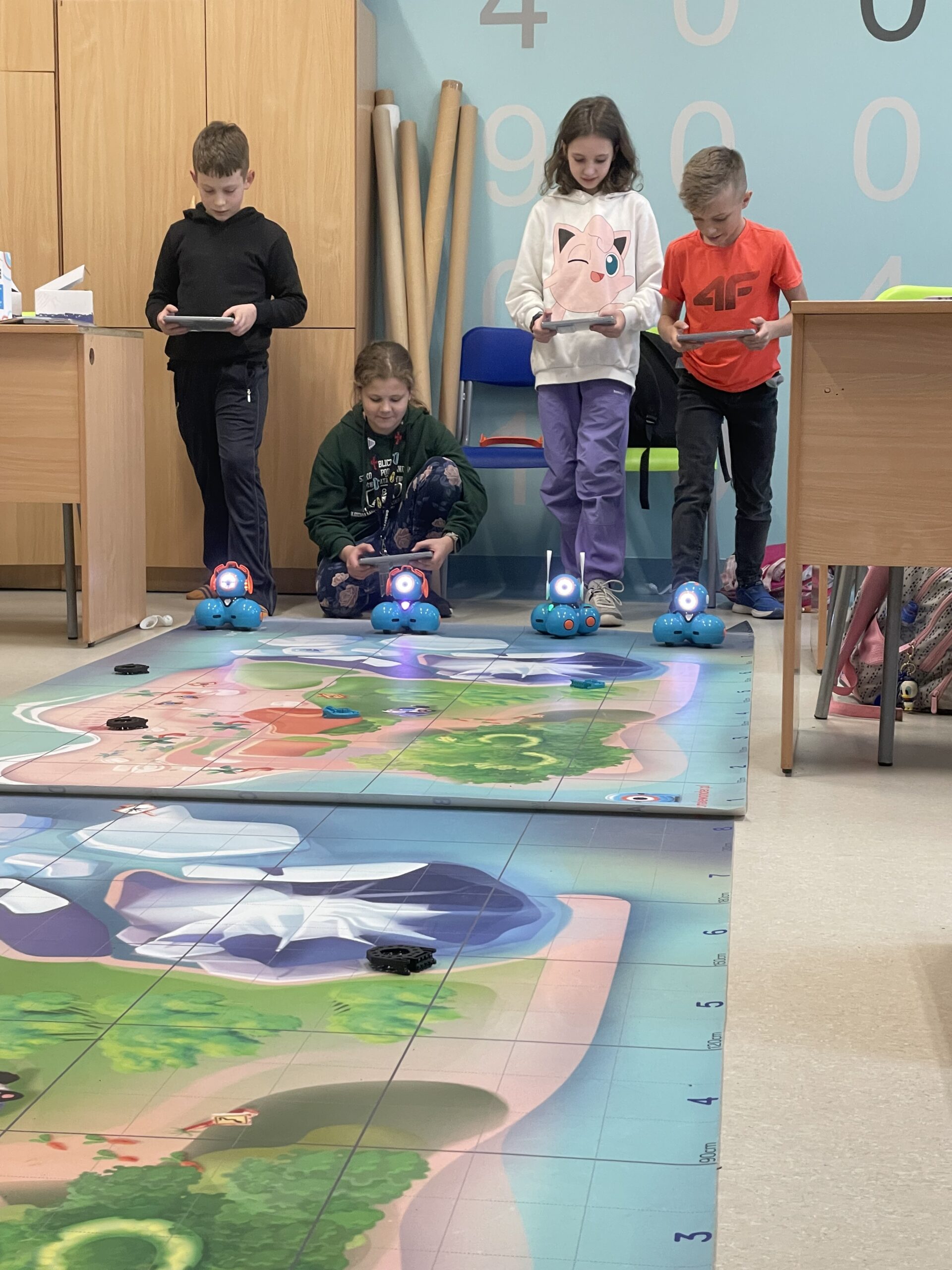 W lutym na kółku informatycznym dla klas 4-6 odbyły się zajęcia z programowania z wykorzystaniem interaktywnych robotów edukacyjnych Dash. W czasie zajęć uczniowie sterowali robotami, decydując jaki tor ma przejść oraz jakie przeszkody ominąć. Następnie mieli możliwość tworzenia własnych programów w dedykowanej aplikacji, w której po ułożeniu skryptu, mogli od razu połączyć się z robotem i sprawdzić jego działanie. Spotkania z robotami Dash to idealne narzędzie do utrwalenia wiedzy zdobytej podczas zajęć lekcyjnych. Uczniowie poprzez zabawę z robotami wchodzą w świat programowania, rozwijają kluczowe w naszych czasach umiejętności: logicznego myślenia skupionego na rozwiązywaniu problemów, precyzyjnego prezentowania swoich myśli oraz współpracy z innymi.
