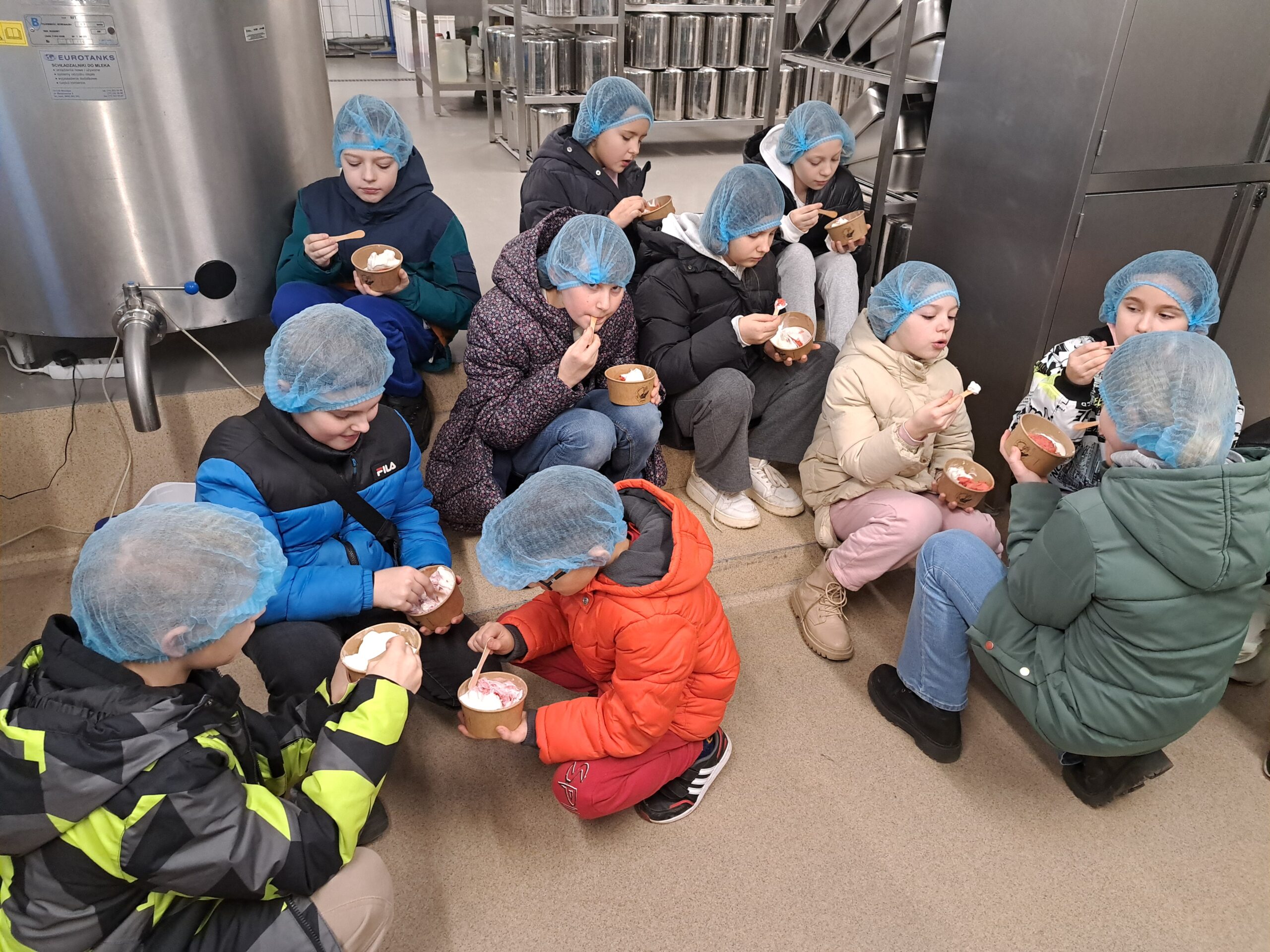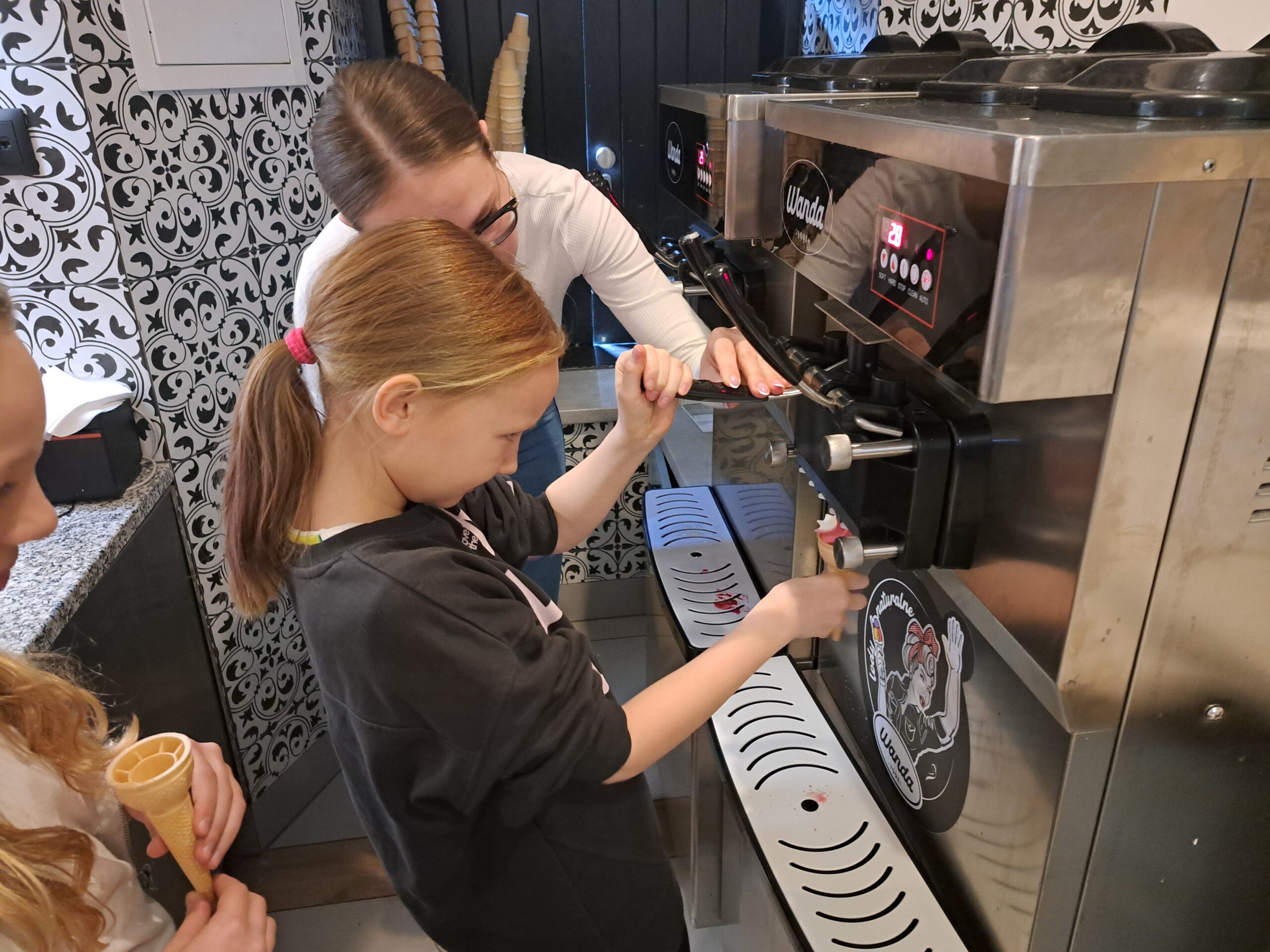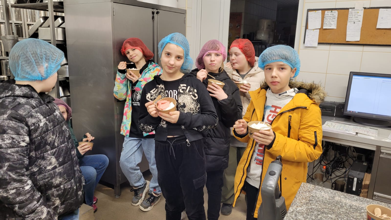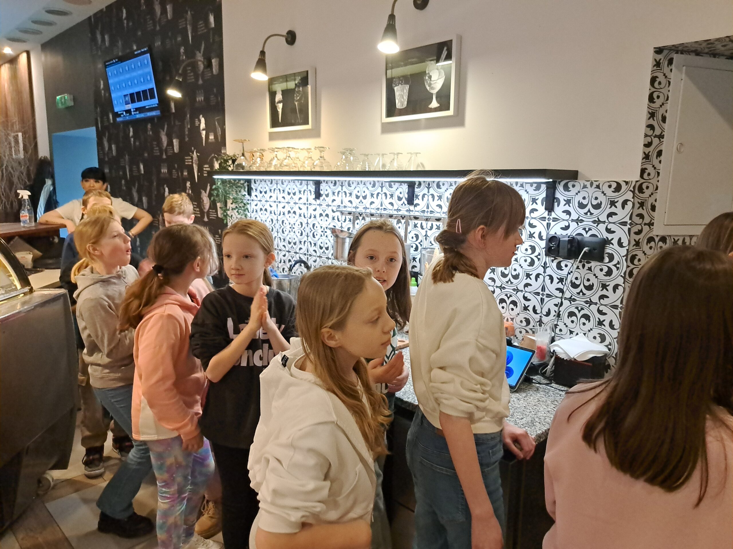 8 marca, 2024 Wycieczka klasy 4b 8.03.2024 klasa 4b pojechała do Kątów wrocławskich gdzie mieści się fabryka lodów „Wanda”. Na miejscu poznawaliśmy techniki wyrabiania lodów, a każdy z nas mógł samodzielnie przygotować swoje lodowe przysmaki. To był bardzo słodki dzień!