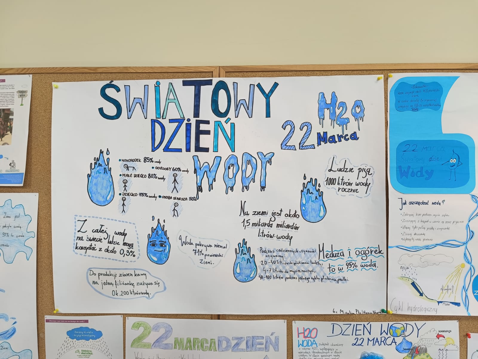 W dniu 22.03 obchodzimy Światowy Dzień Wody. Nasza szkoła przystąpiła do ogólnopolskiej akcji PAH i z tej okazji na korytarzach szkolnych zawisły plakaty o wodzie, jej dostępności i ilości jaka zużywamy w życiu codziennym. Uczniowie klas młodszych i starszych mieli prelekcje o wodzie, gry i zabawy, których celem było zaznajomienie ich z problemami z dostępnością do wody.