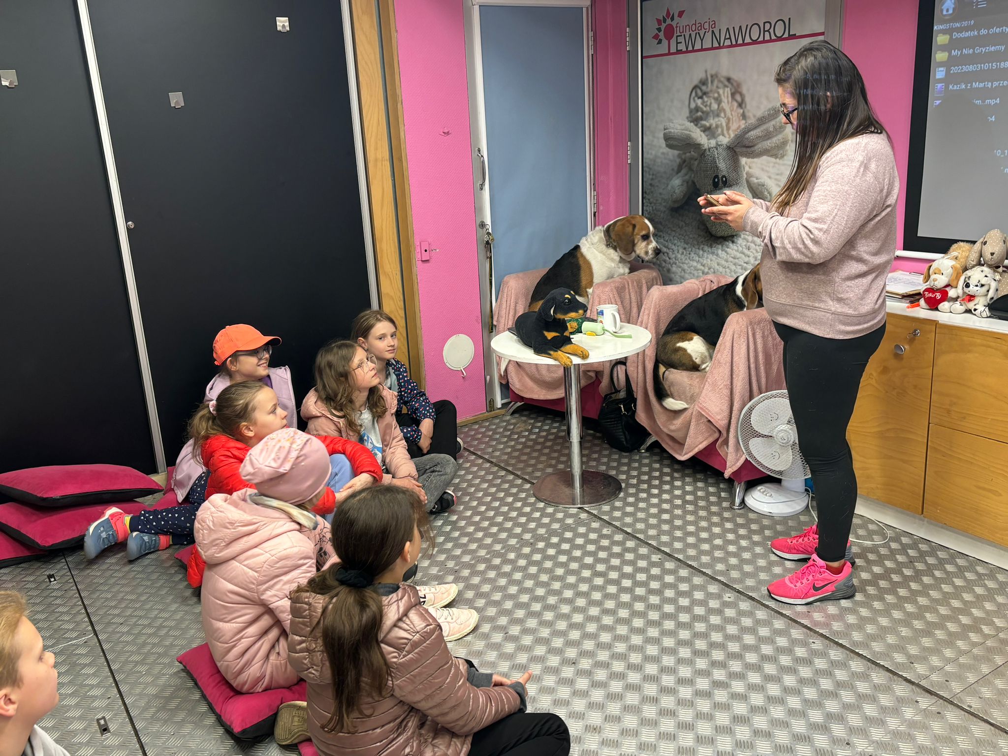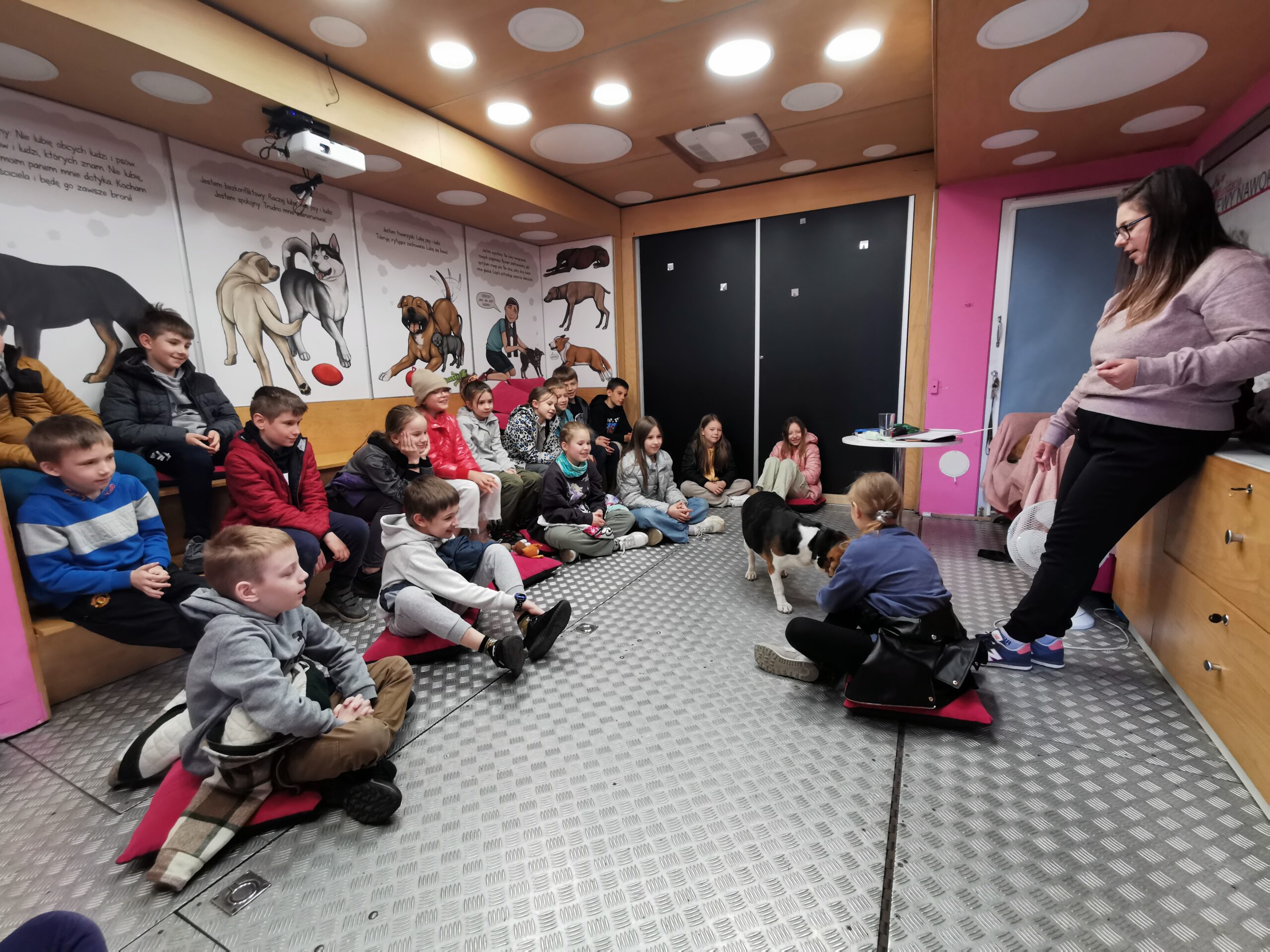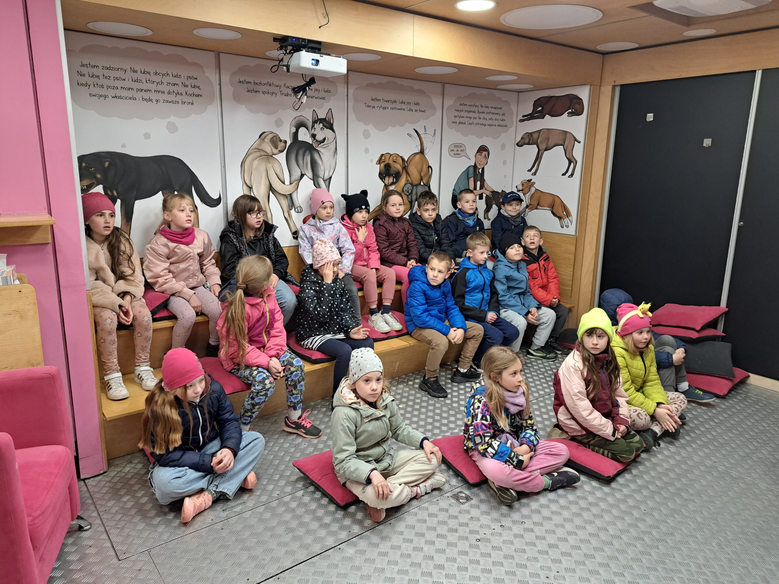W dniach 15.04.-16.04 nasza szkoła wzięła udział w Ogólnopolskiej Akcji Edukacyjnej dla dzieci „MY NIE GRYZIEMY”, realizowanej przez Fundację Ewy Naworol. W warsztatach wzięli udział uczniowie klas 0-3. Zajęcia odbywały się w dostosowanej sali edukacyjnej, która znajdowała się w dużej ciężarówce. Samochód przyjechał na teren naszej szkoły. Celem zajęć było poznanie zasad bezpiecznej komunikacji z psem, odczytywanie sygnałów ostrzegawczych wysyłanych przez psa, kształtowanie empatycznej i wrażliwej postawy wobec zwierząt domowych, co zapobiega ich krzywdzeniu. Dzieci były zachwycone możliwością indywidualnego kontaktu z dwoma pieskami rasy Beagle, wydawaniem komend, poznawaniem mowy ciała psa. Uczyły się również bezpiecznej pozycji drzewa i żółwia w przypadku ataku psa. Zajęcia były bezpłatne dla uczniów, finansowane przez Gminę Siechnice.
