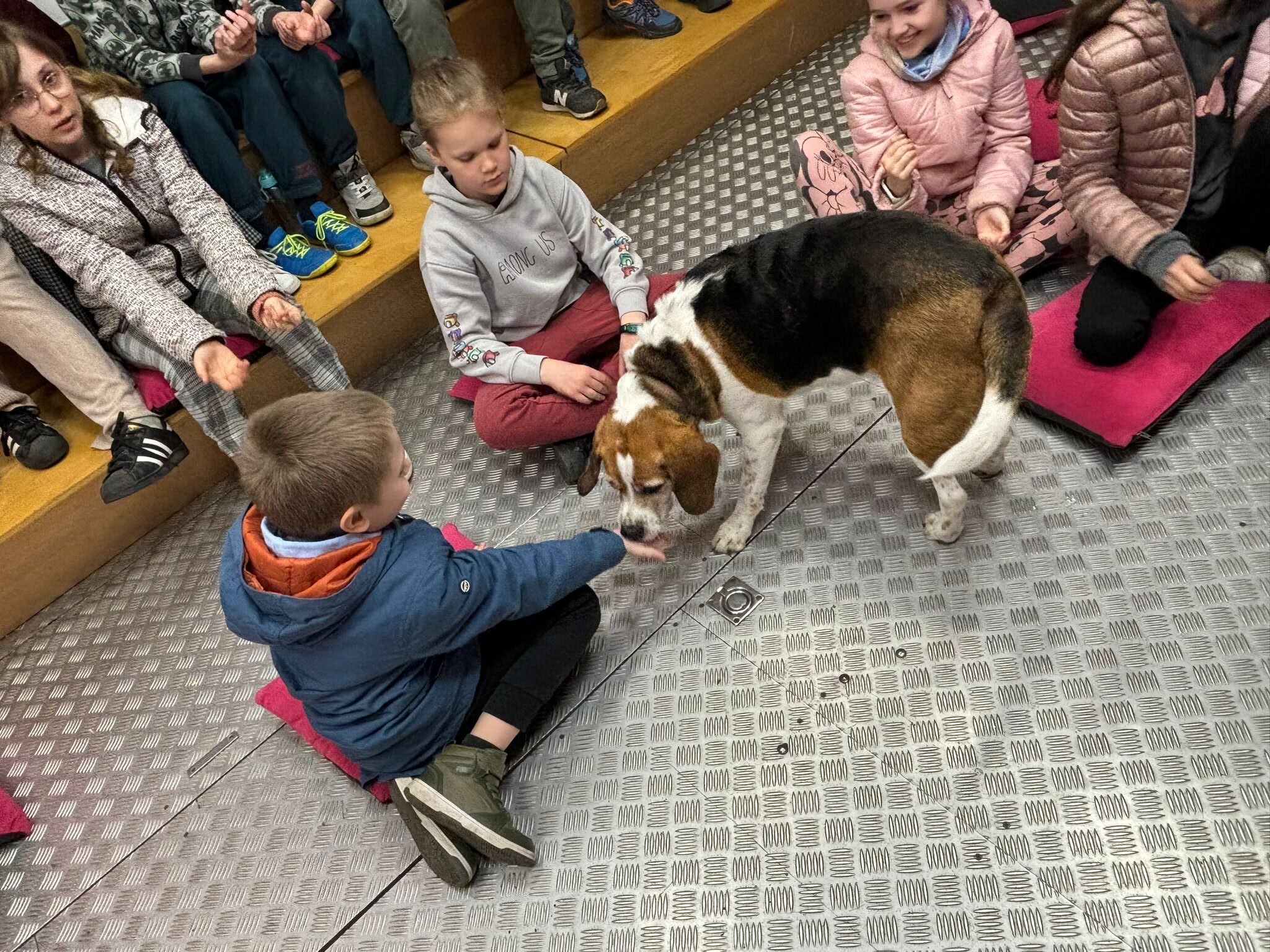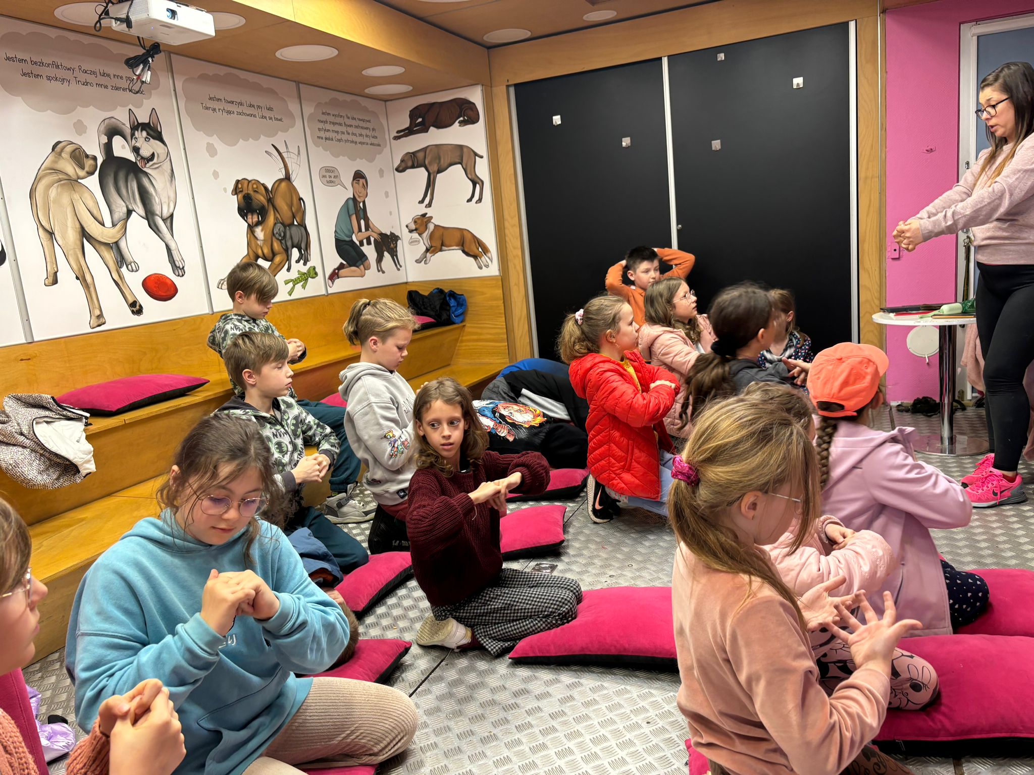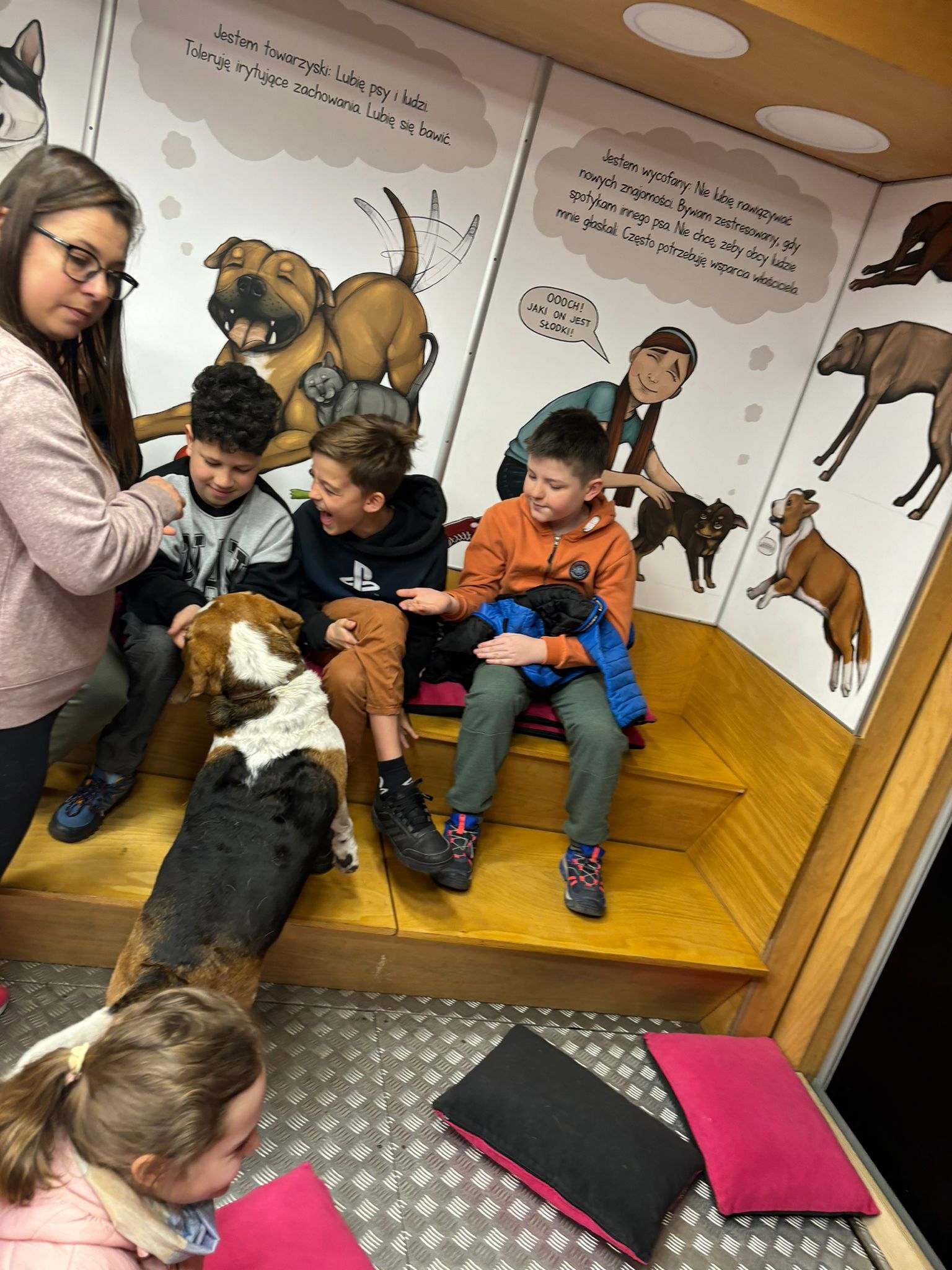 W dniach 15.04.-16.04 nasza szkoła wzięła udział w Ogólnopolskiej Akcji Edukacyjnej dla dzieci „MY NIE GRYZIEMY”, realizowanej przez Fundację Ewy Naworol. W warsztatach wzięli udział uczniowie klas 0-3. Zajęcia odbywały się w dostosowanej sali edukacyjnej, która znajdowała się w dużej ciężarówce. Samochód przyjechał na teren naszej szkoły. Celem zajęć było poznanie zasad bezpiecznej komunikacji z psem, odczytywanie sygnałów ostrzegawczych wysyłanych przez psa, kształtowanie empatycznej i wrażliwej postawy wobec zwierząt domowych, co zapobiega ich krzywdzeniu. Dzieci były zachwycone możliwością indywidualnego kontaktu z dwoma pieskami rasy Beagle, wydawaniem komend, poznawaniem mowy ciała psa. Uczyły się również bezpiecznej pozycji drzewa i żółwia w przypadku ataku psa. Zajęcia były bezpłatne dla uczniów, finansowane przez Gminę Siechnice.