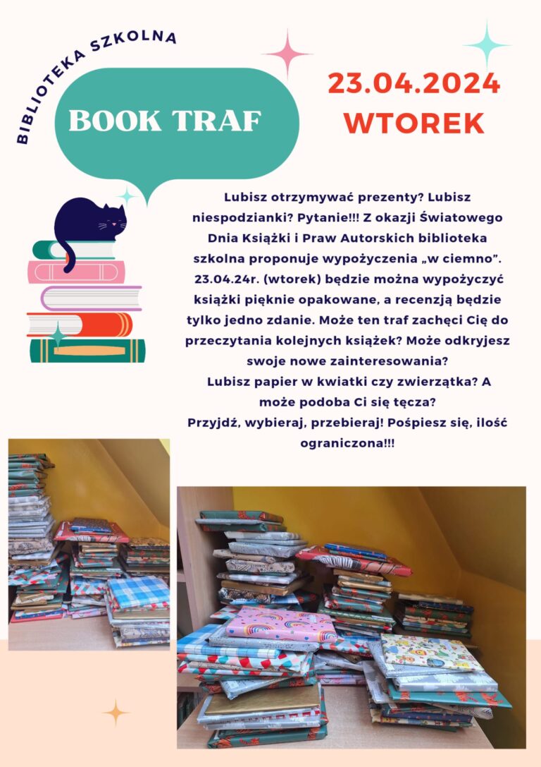 22 kwietnia, 2024 Book traf Lubisz otrzymywać prezenty? Lubisz niespodzianki? Pytanie!!! Z okazji Światowego Dnia Książki i Praw Autorskich biblioteka szkolna proponuje wypożyczenia „w ciemno”.