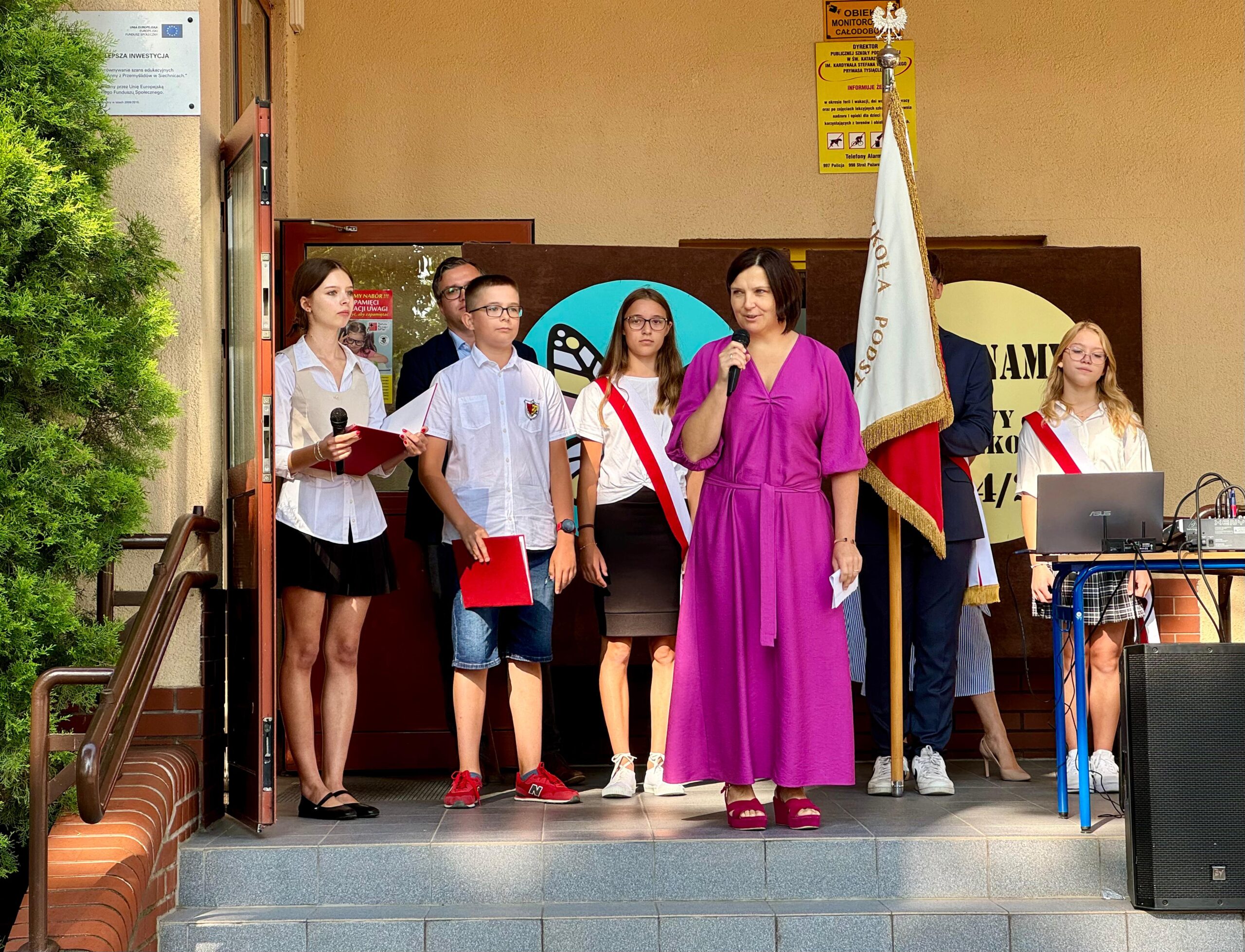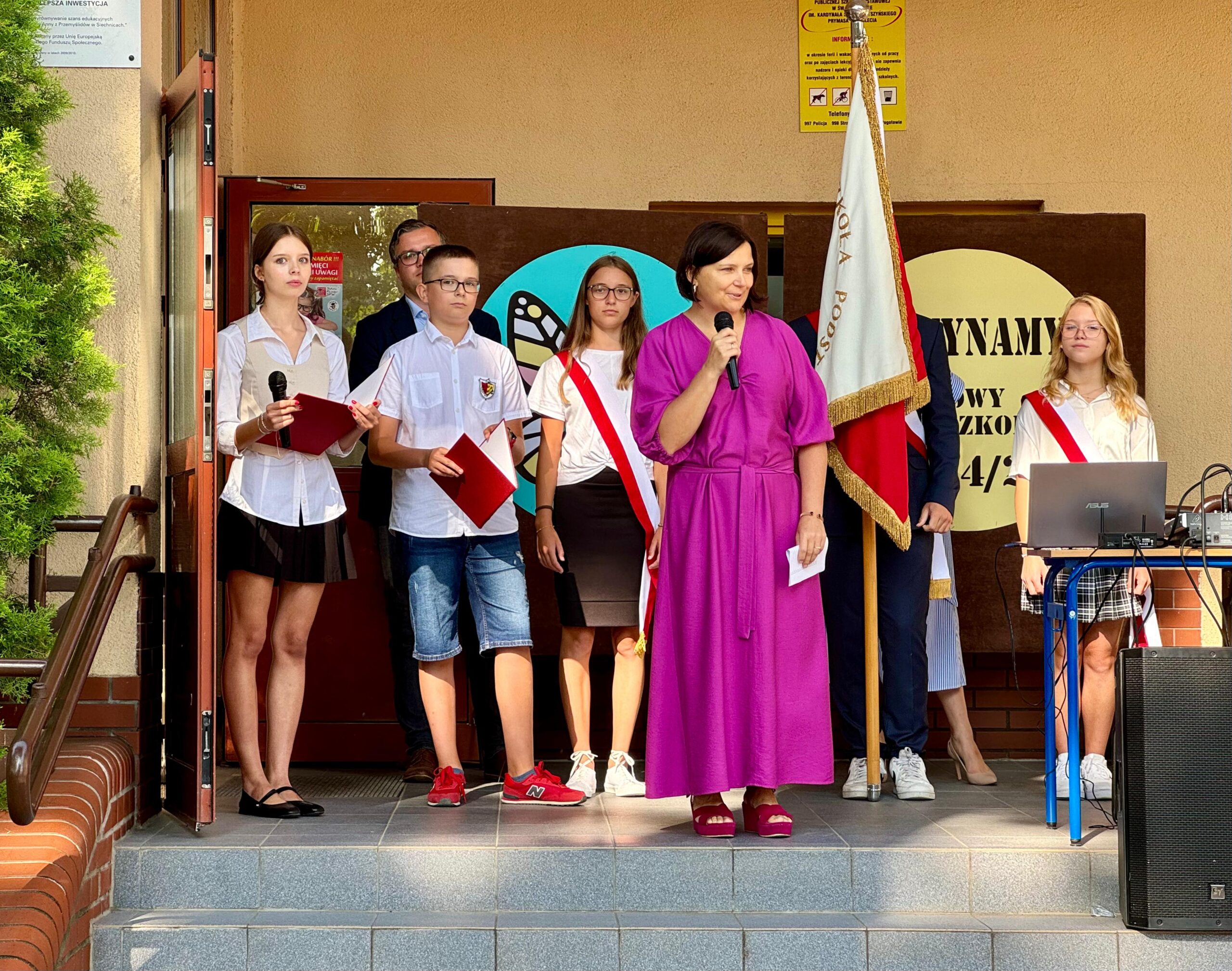 Jak w każdej polskiej szkole, dziś rozbrzmiał dzwonek, który obwieścił wszystkim uczniom, że rozpoczęliśmy nowy rok szkolny. Pani Dyrektor Magdalena Kochan-Nowik powitała serdecznie wszystkich uczniów, rodziców, nauczycieli i pracowników szkoły. Ciepłe słowa skierował także do społeczności szkolnej zastępca burmistrza gminy Siechnice Pan Paweł Jasięga.