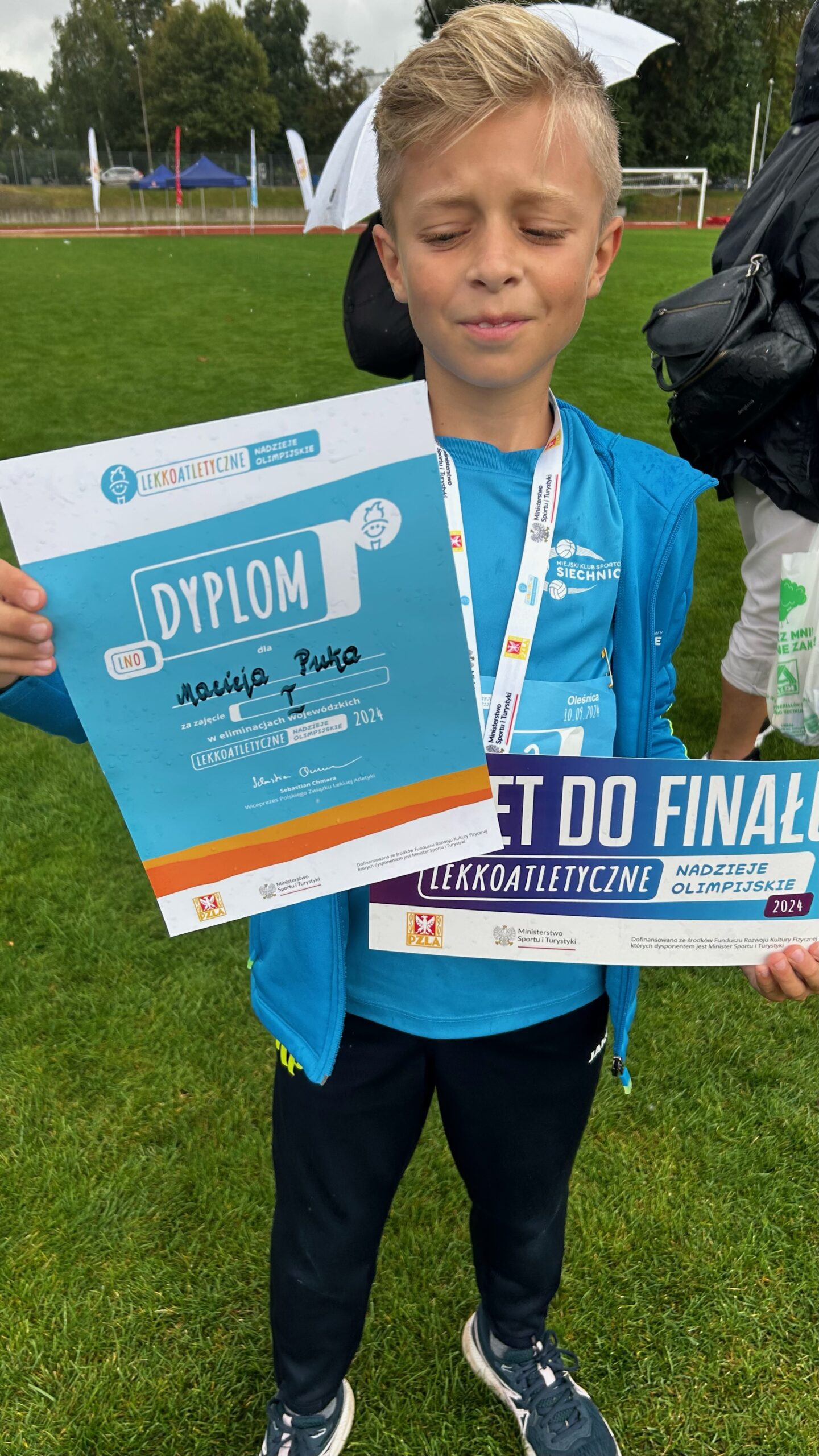 Miło nam poinformować, że Maciej Puk (uczeń klasy 5a) wygrał wojewódzkie zawody „Lekkoatletyczne Nadzieje Olimpijskie” w dwuboju nowoczesnym. Zawody zorganizowane przez Polski Związek Lekkiej Atletyki odbyły się 10 września w Oleśnicy. Maciek był najlepszym chłopcem w kategorii U12 spośród wszystkich uczestników (a było 738 dzieci z całego województwa!). Nasz ambitny uczeń skoczył wzwyż 120 cm oraz wygrał bieg na 600 m z czasem 1:55, osiągając swój rekord życiowy. Rewelacyjne wyniki sprawiły, że awansował do mistrzostw Polski, które odbędą się 10.11.2024 r. w Centralnym Ośrodku Sportu w Spale. Gratulacje!