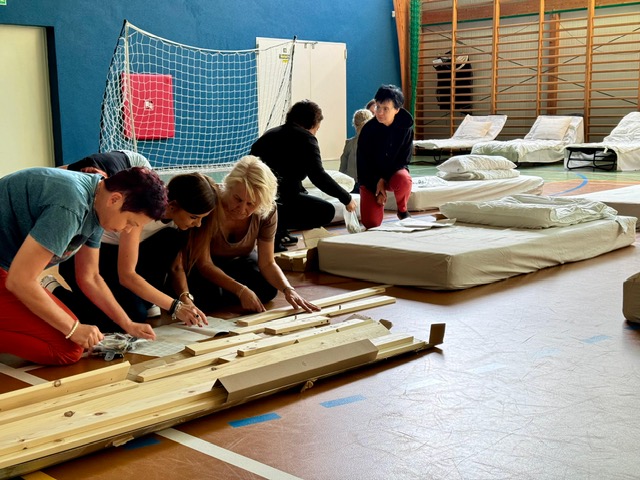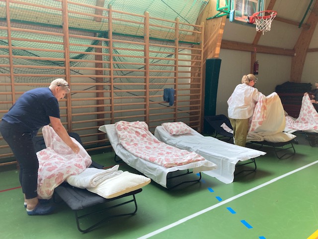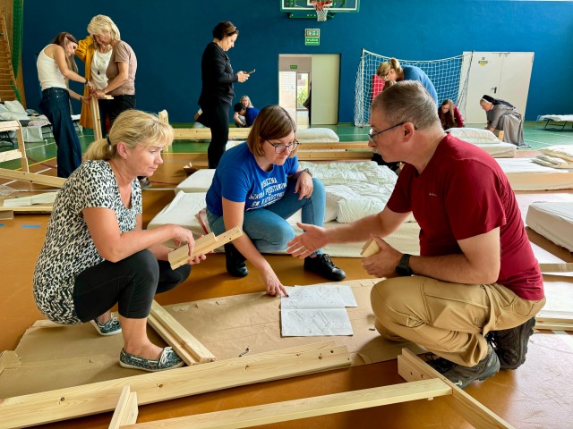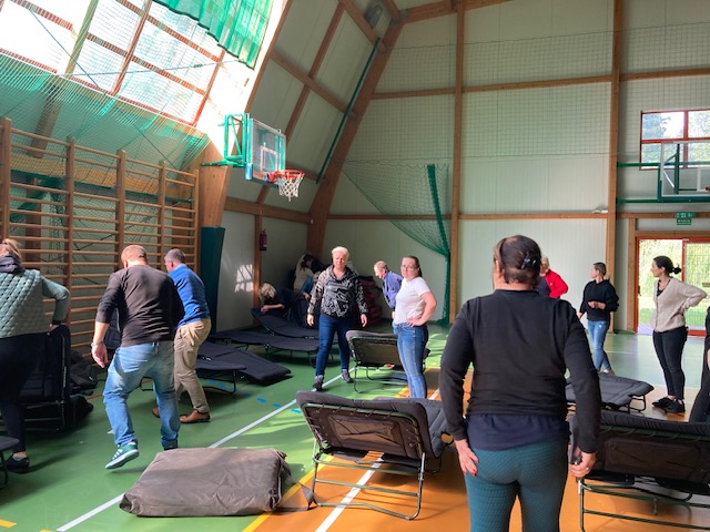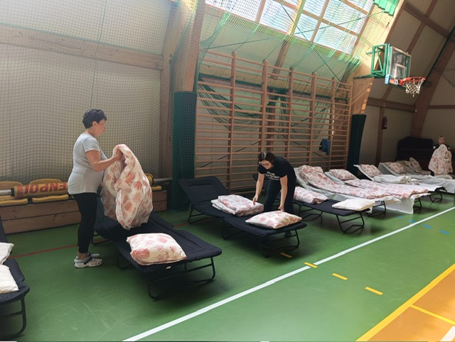 Nauczyciele, pracownicy administracji i obsługi przygotowali halę sportową oraz zaplecze socjalne. Wspólnie z pracownikami Urzędu Miejskiego oraz SISKu jesteśmy gotowi, aby pomóc tym, którzy będą potrzebowali schronienia.