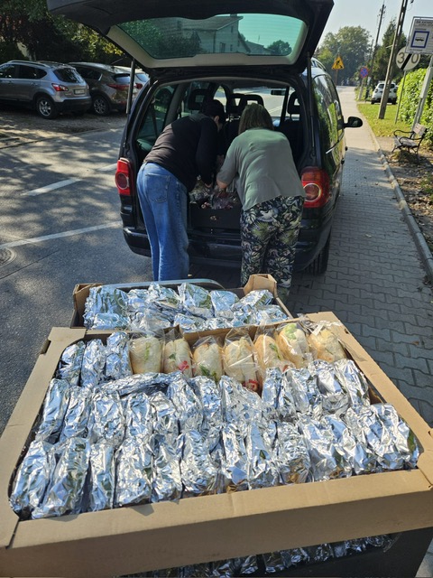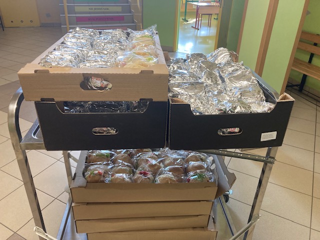 Dziś pracownicy obsługi wraz z nauczycielami naszej szkoły przygotowali kanapki dla osób, które pracują przy umacnianiu wałów. Panie pedagog zawiozły przygotowane jedzenie do Kotowic i Trestna. Chleb do zrobienia kanapek oraz gotowe bułki dostarczyła piekarnia Skaczewski z Siechnic.