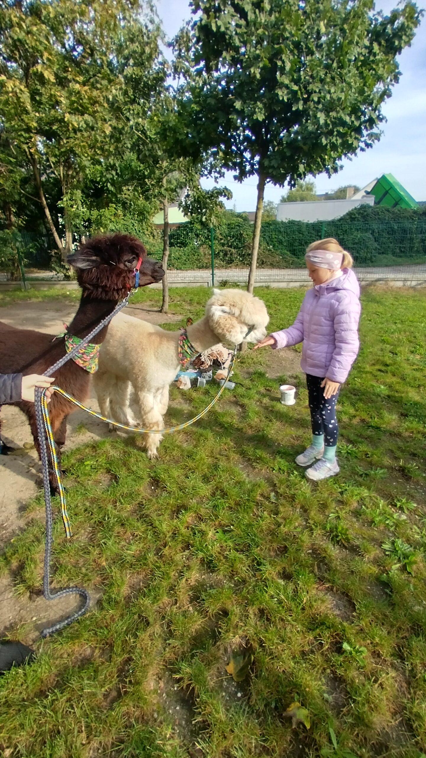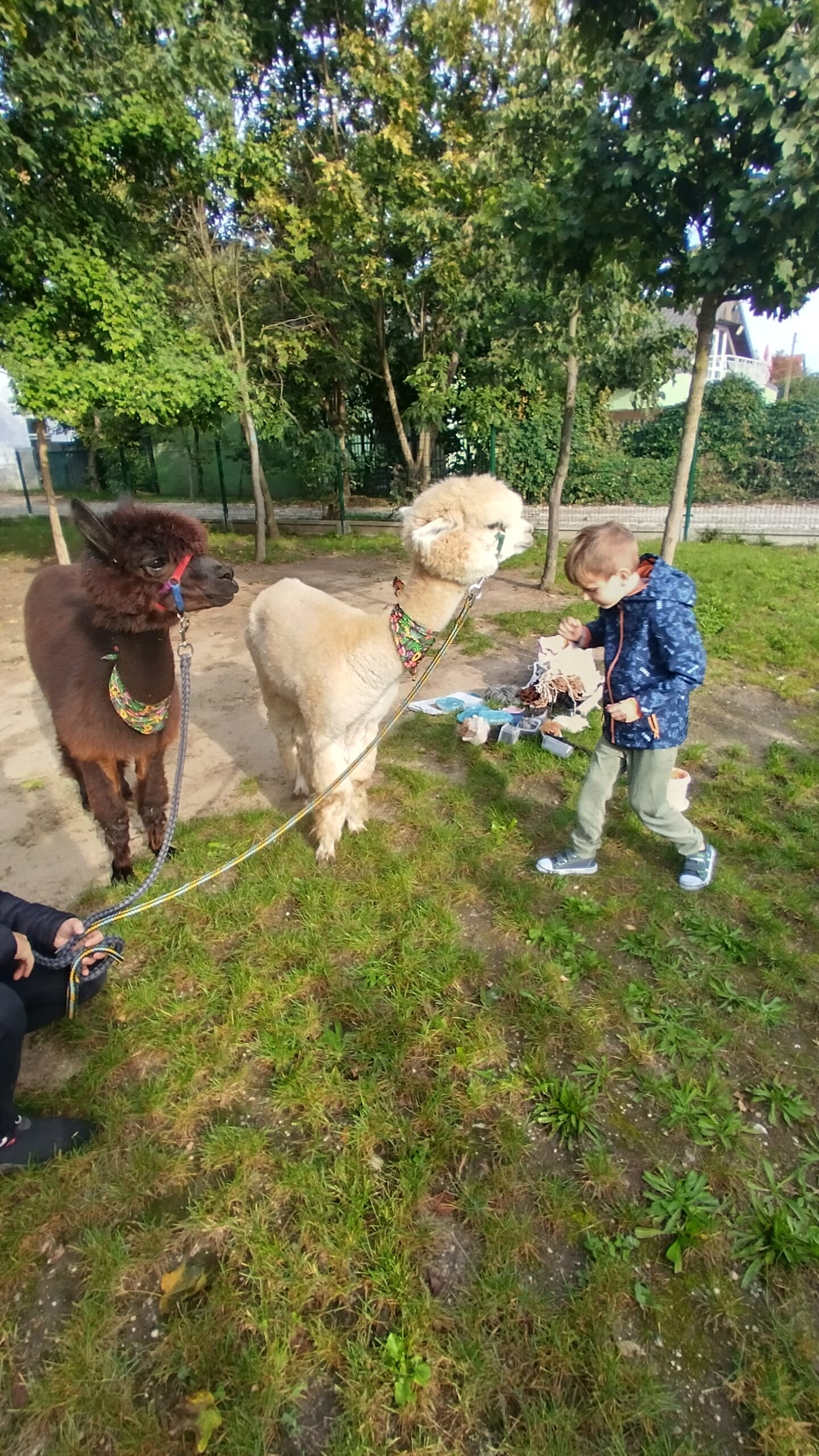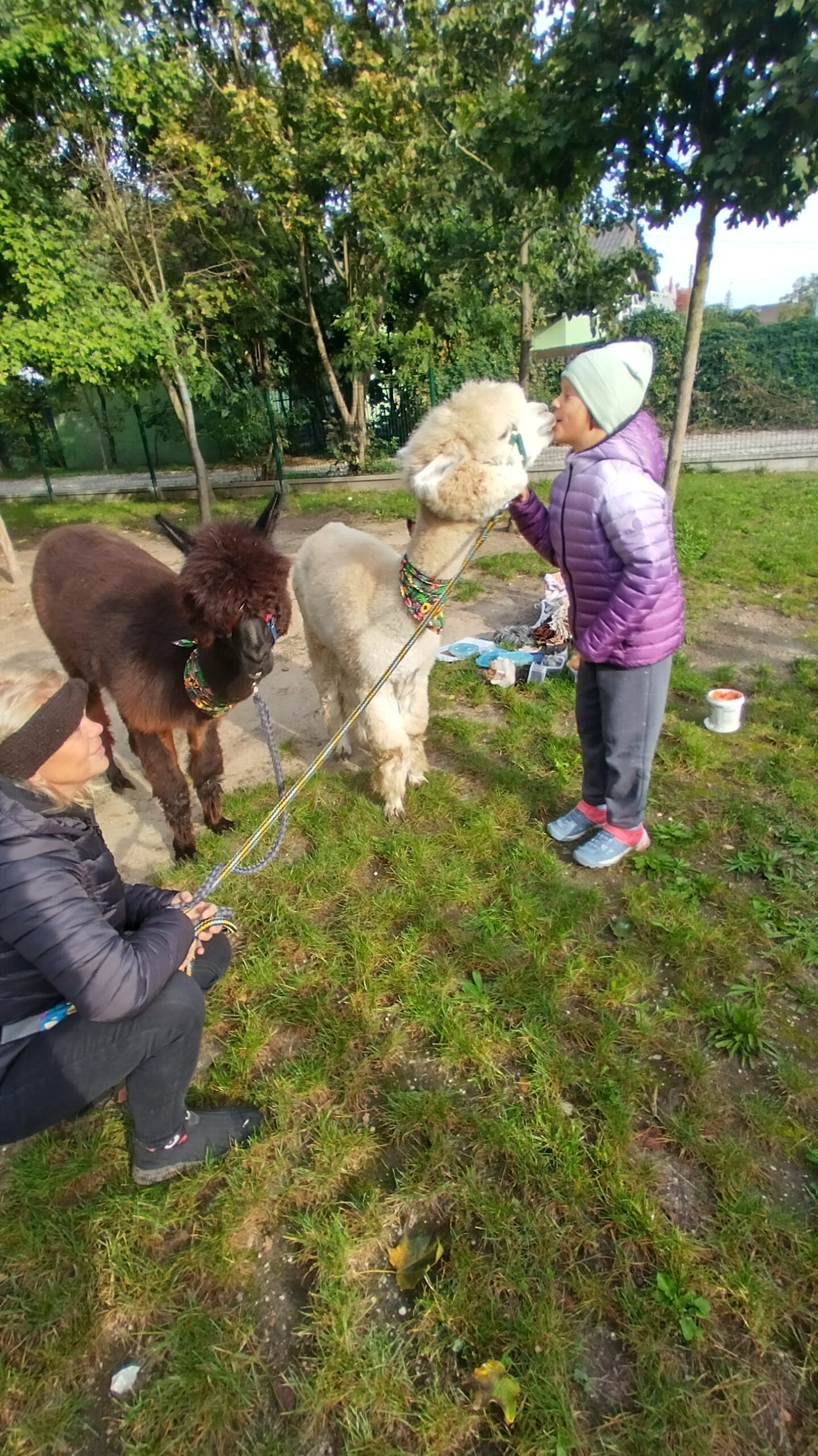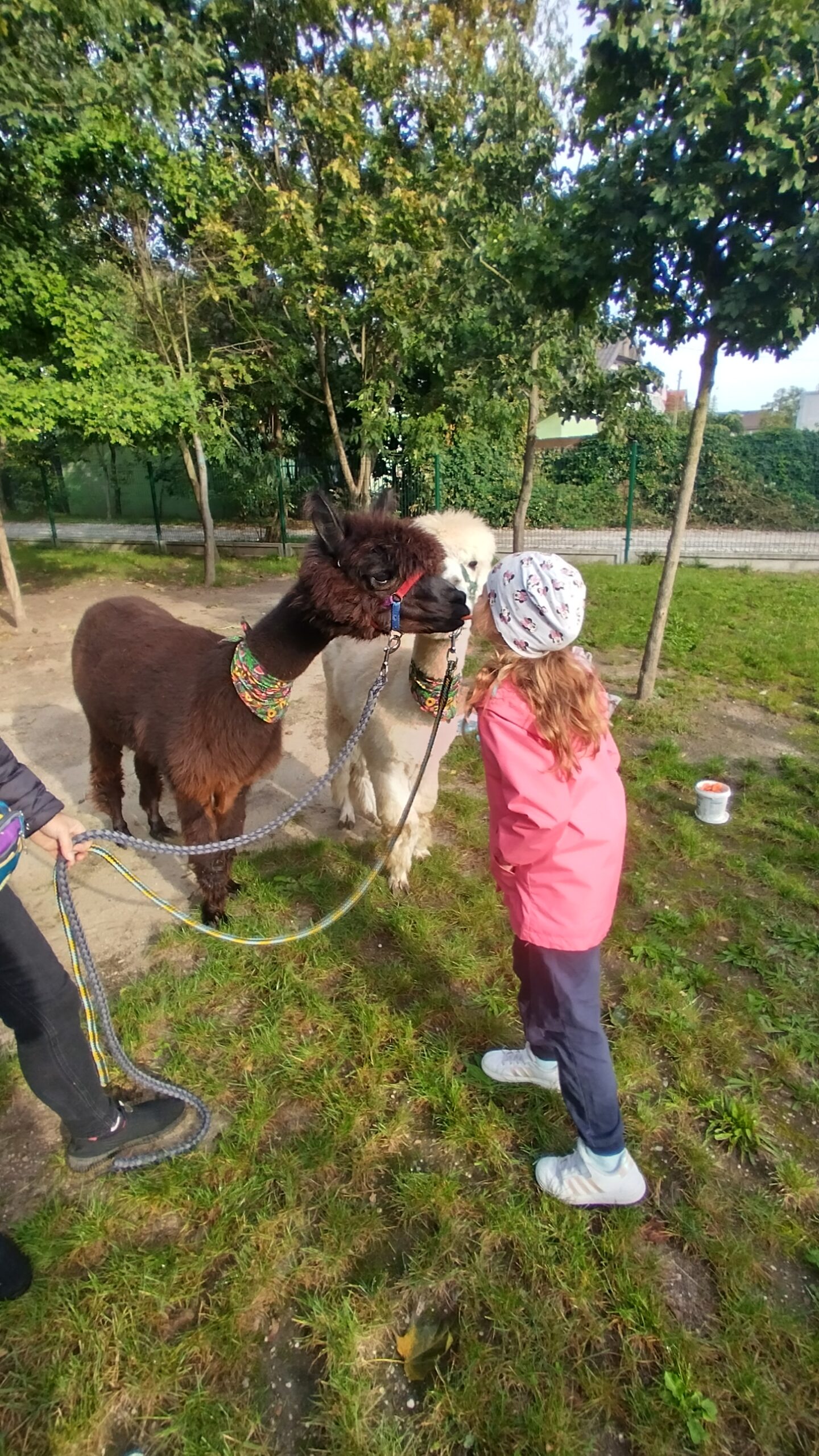 Na Dzień Chłopaka najlepsza jest alpaka”. Pod tym hasłem świętowała 30 września klasa 1b i 1c. Odwiedziny dwóch przesympatycznych zwierzątek z „PrzytulAlpaki” wywołały uśmiech na twarzach uczniów. Dzieci poznały życie i zwyczaje alpak, wysłuchały wielu ciekawostek na ich temat. Każdy miał możliwość nakarmienia zwierzątek ich przysmakiem- marchewką. I oczywiście można było pogłaskać i przytulić się do milutkiego futerka