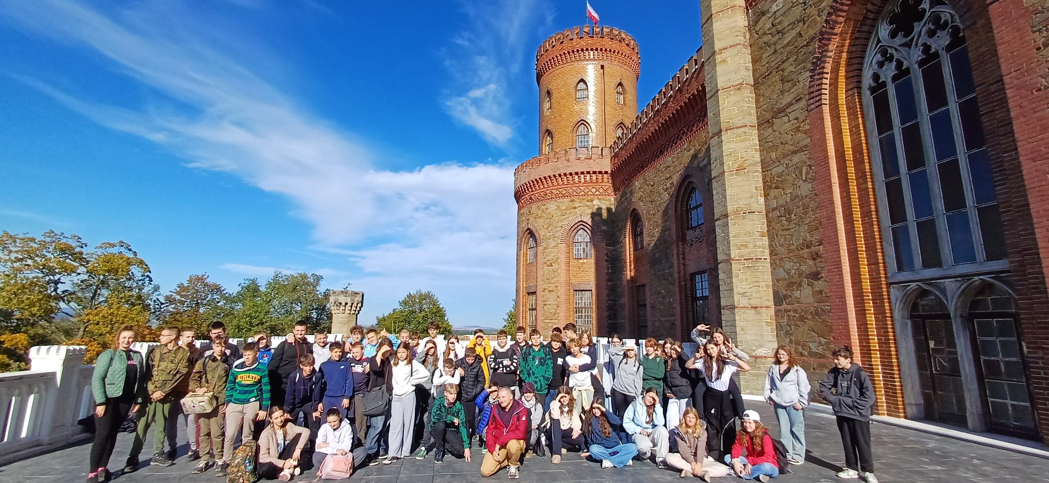 We wtorek 8 października klasy siódme wybrały się na zwiedzanie perły architektury dolnośląskiej – pałacu Marianny Orańskiej w Kamieńcu Ząbkowickim. Budowla zachwyciła nas wielkością i wyposażeniem. Z opowieści Pani przewodnik dowiedzieliśmy się dlaczego okoliczną ludność nazywała Mariannę dobrą panią. Po zwiedzaniu pałacu uczestniczyliśmy w pasjonującej grze terenowej – ,, Tajemnica folwarku szyfrów „. Tajemnice zostały odkryte, a pogoda nam sprzyjała.