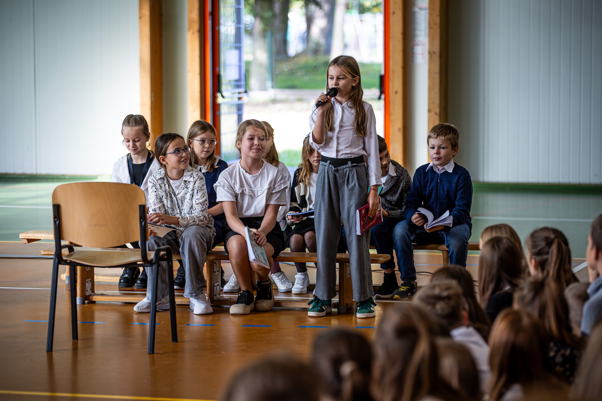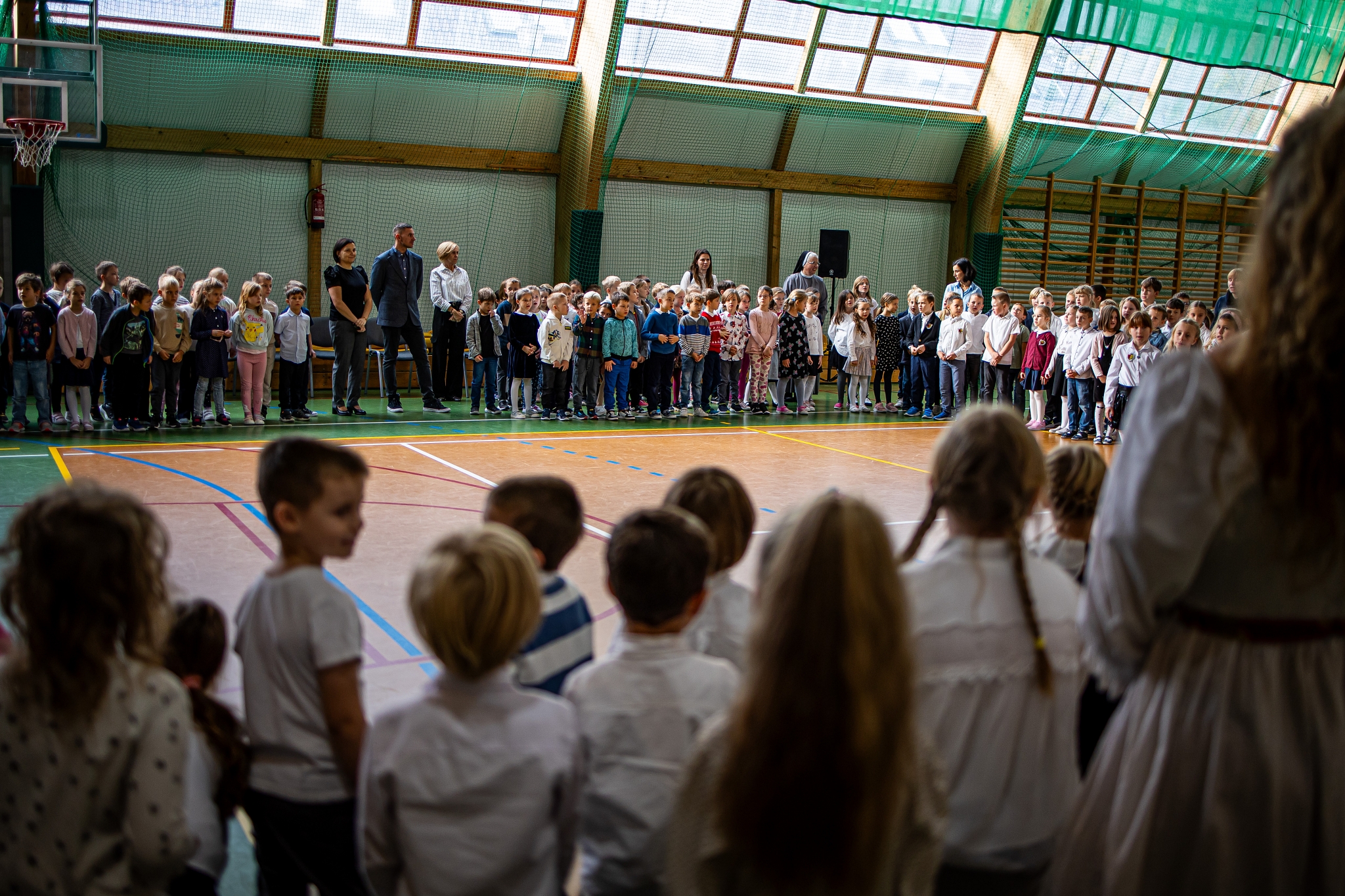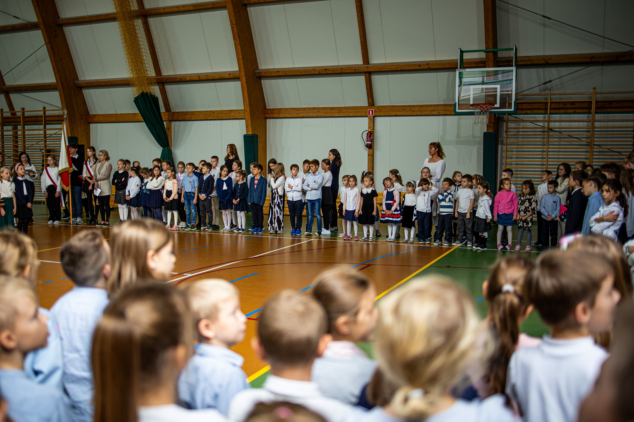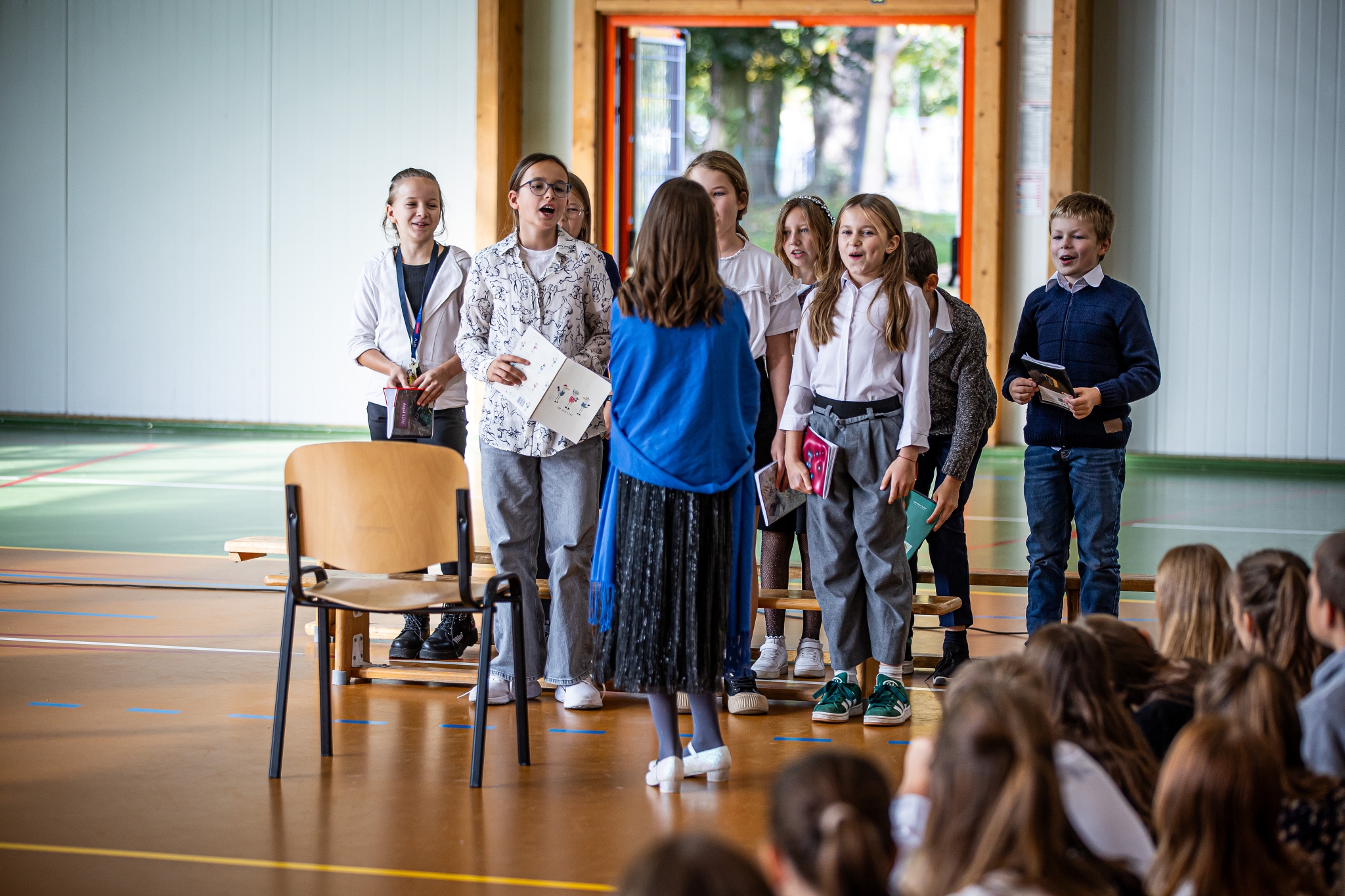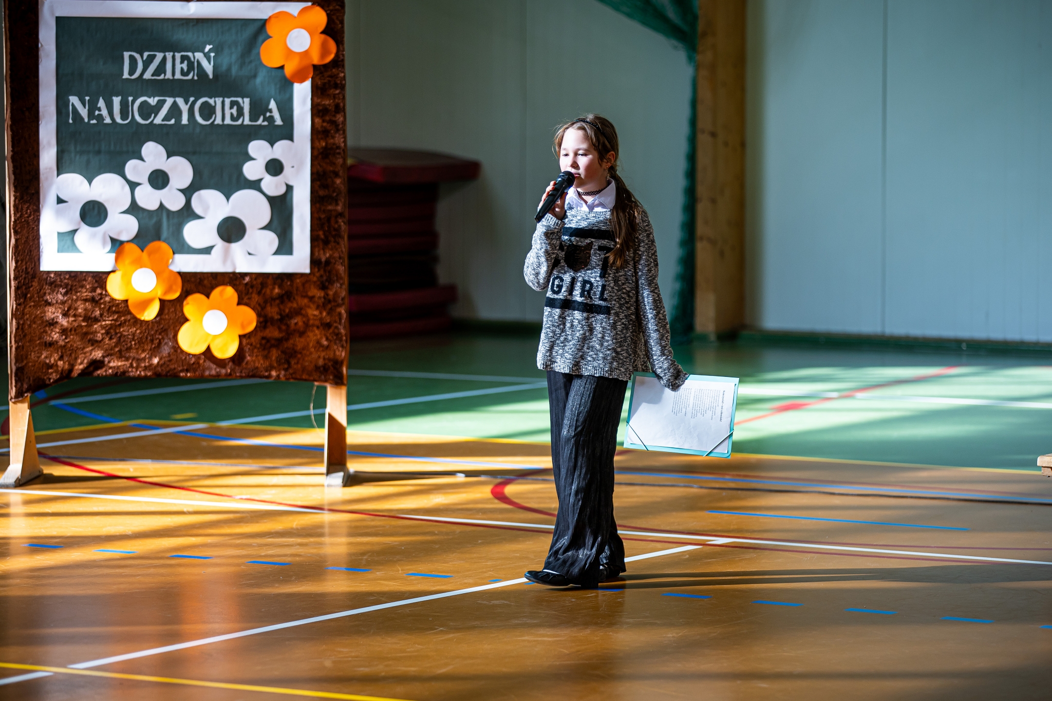 Apel klas 4-8 rozpoczął kabaret ,,Pani na opak’’ w wykonaniu kl.4d, następnie uroczystość uświetnił występ wokalny Zuzi Maszyńskiej ( kl.4d), która zachwyciła wszystkich interpretacją i wykonaniem utworu ,,Cisza’’. Dużą dawkę humoru wprowadzili uczniowie kl.4c (Natalia Chrząszcz i Leon Banaś), prezentując humor z zeszytów szkolnych. Na koniec, o tym, że ,,nauczyciel to też człowiek’’ przekonywała Wiktoria Jancyk z kl. 4b, a całość imprezy poprowadził Jakub Herbuś z kl.6b, niedawno wybrany przewodniczący Samorządu Uczniowskiego w naszej szkole.