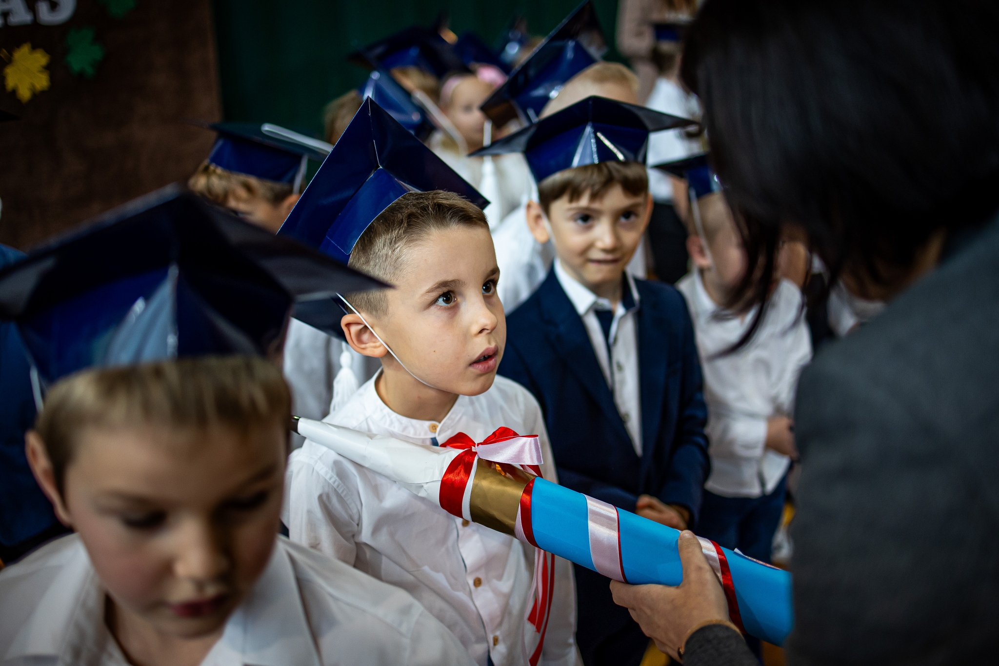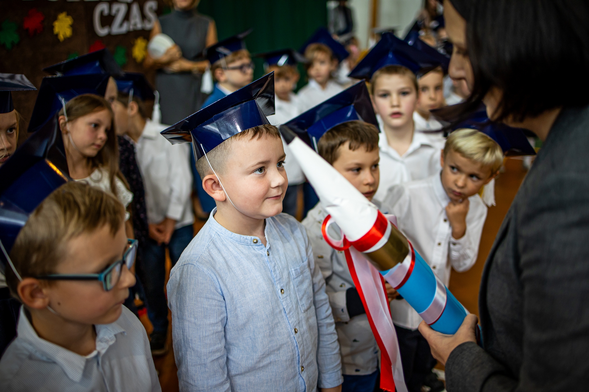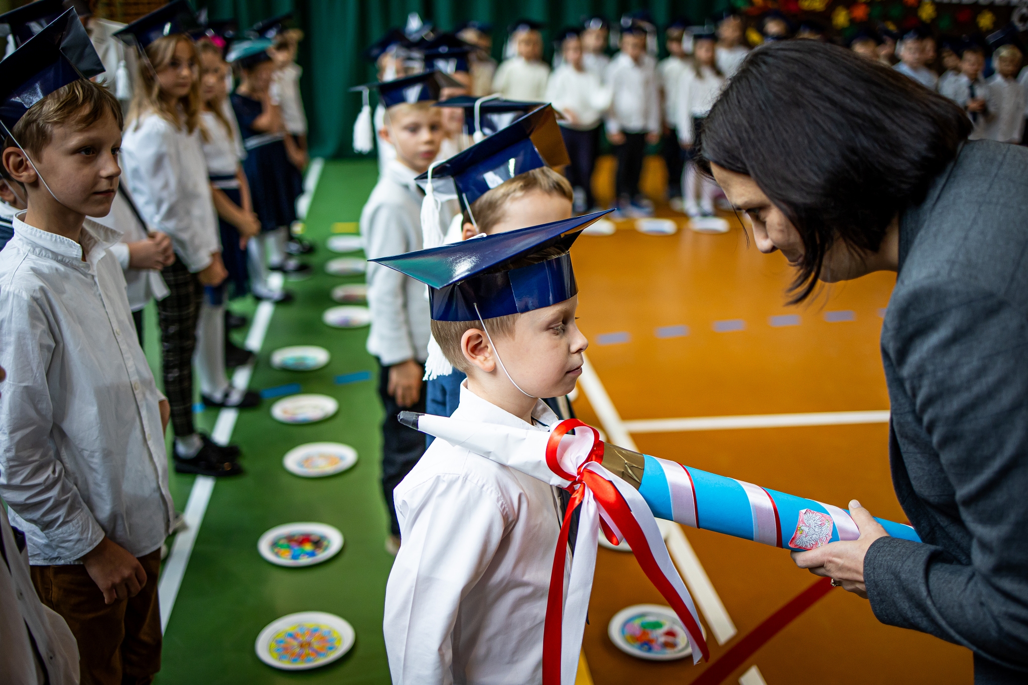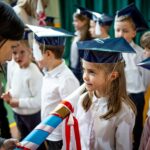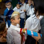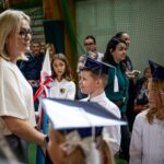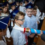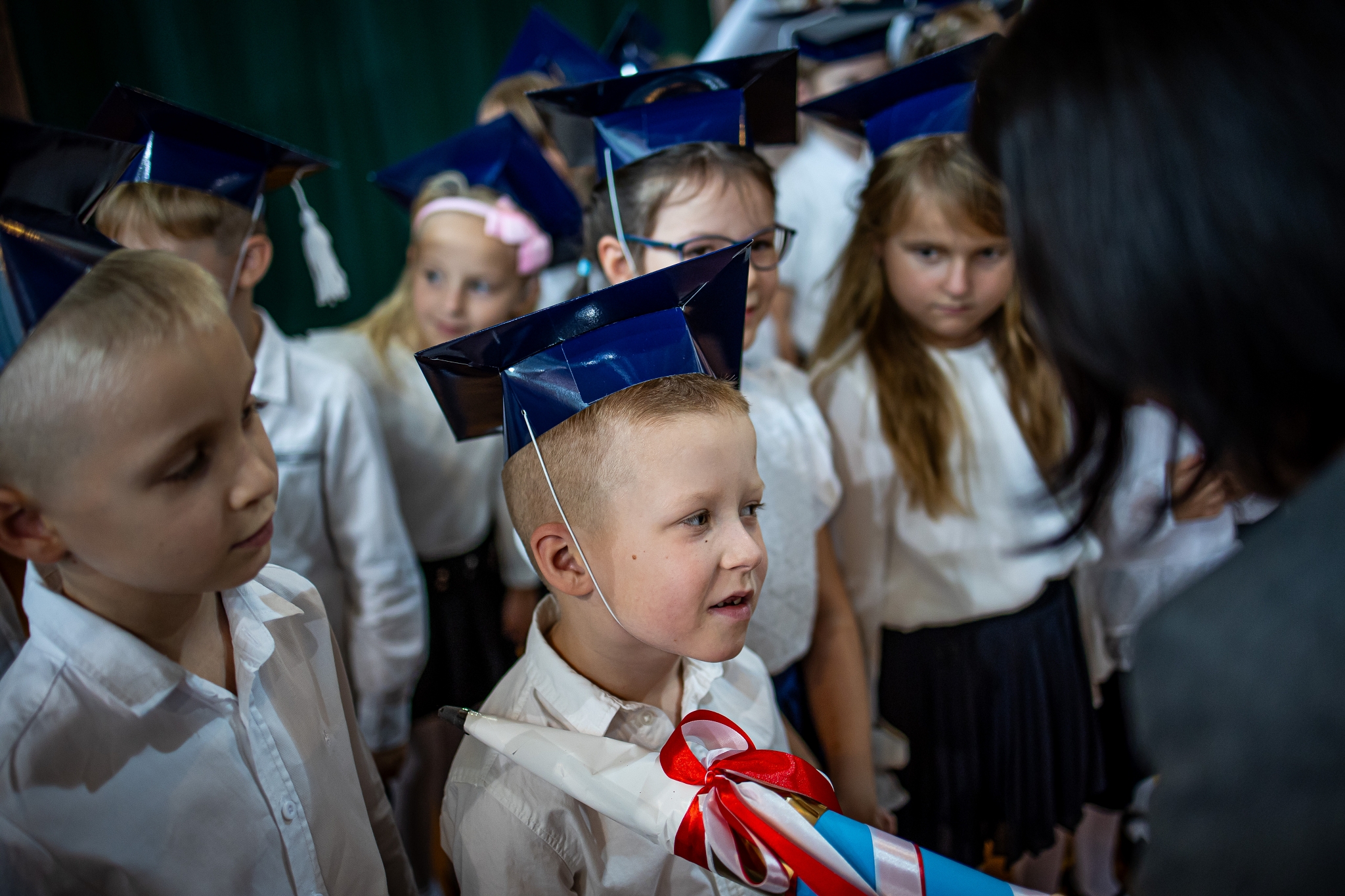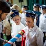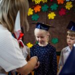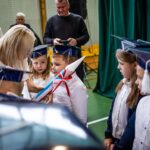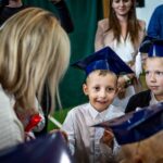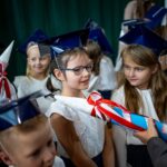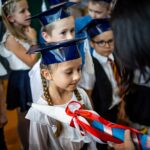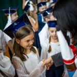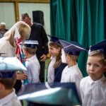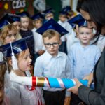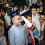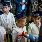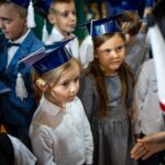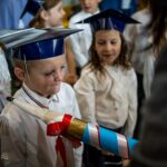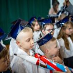 Wszystkie dzieci były skupione i wspaniale prezentowały się w stroju galowym oraz uczniowskich biretach.