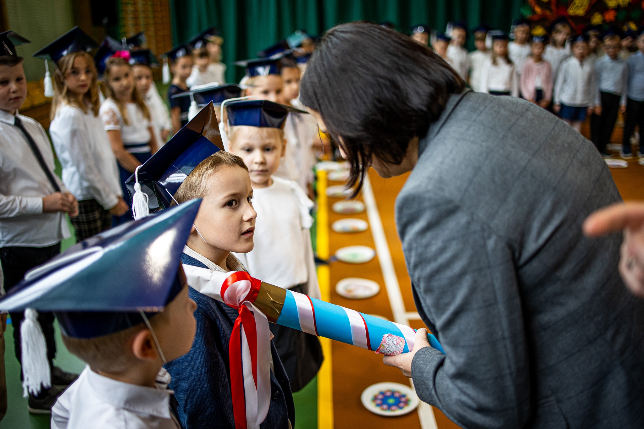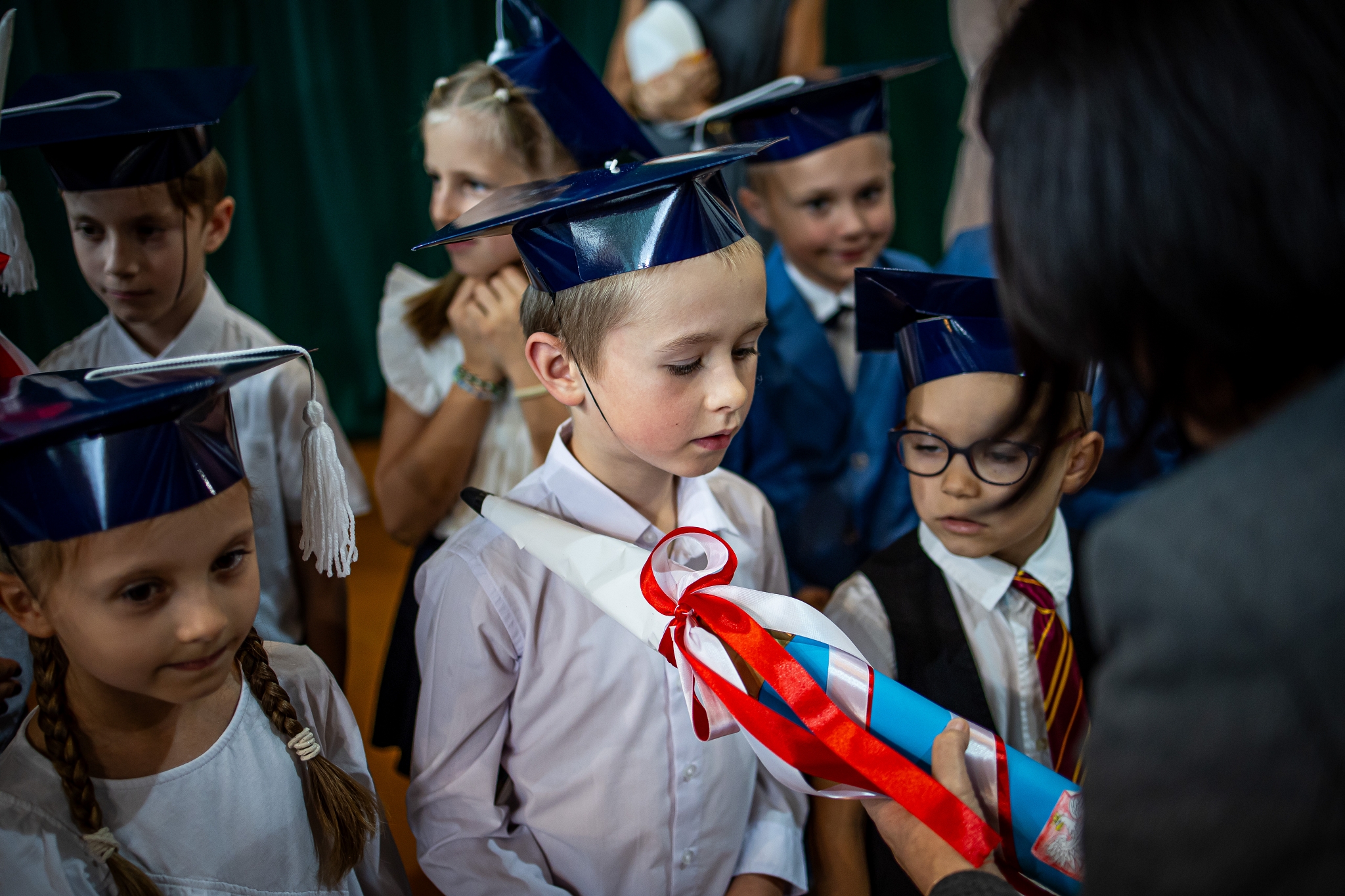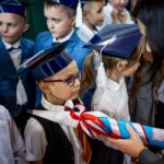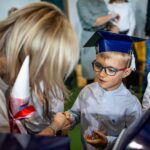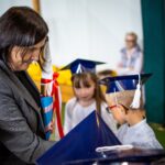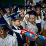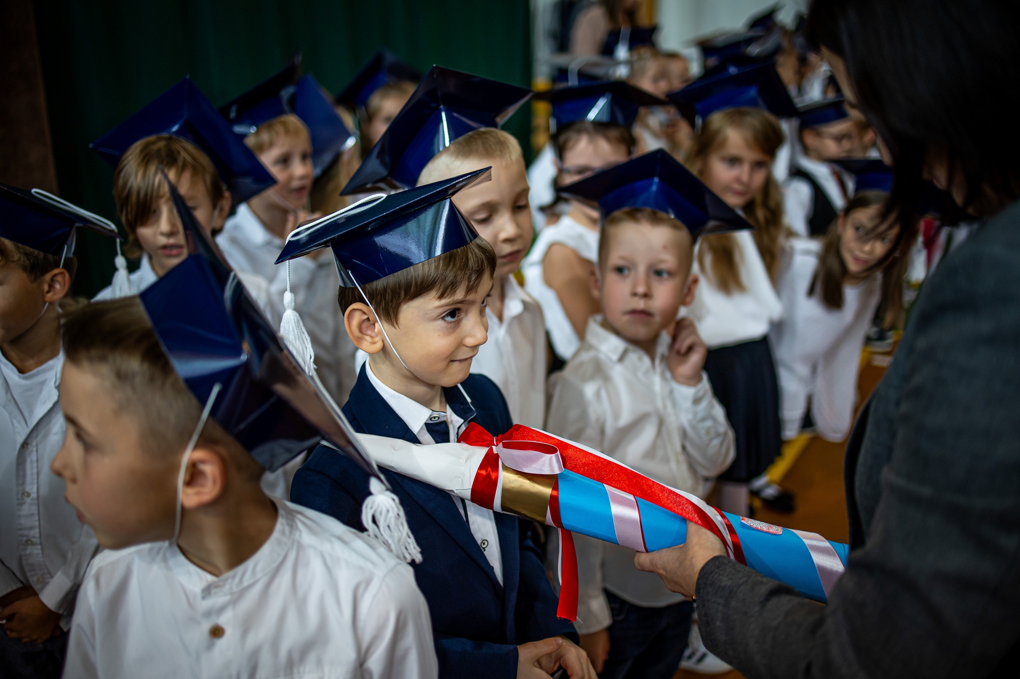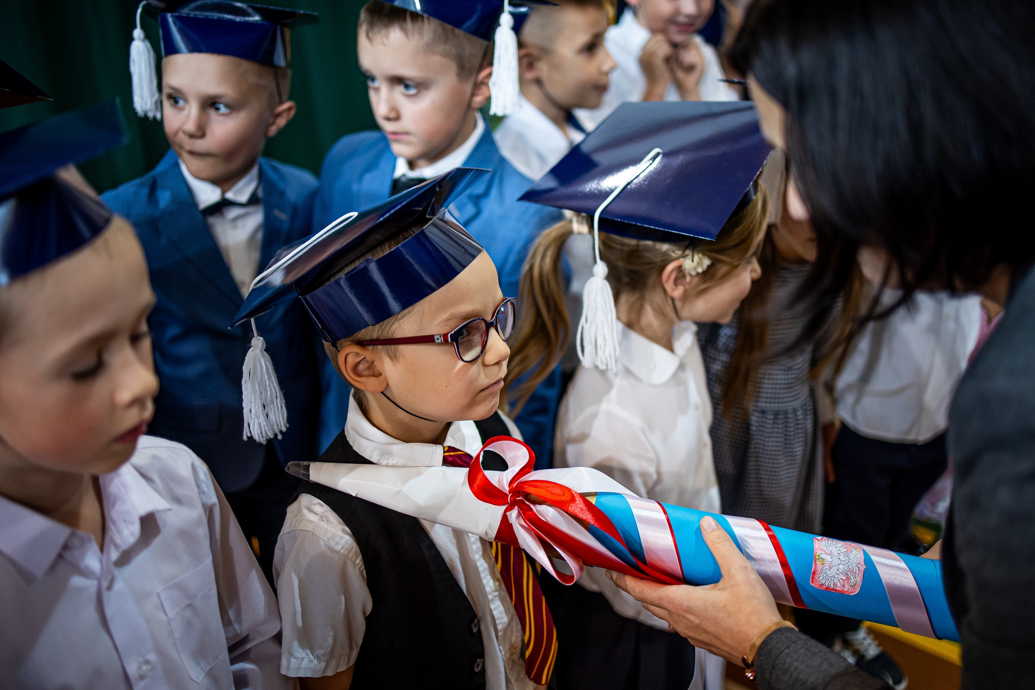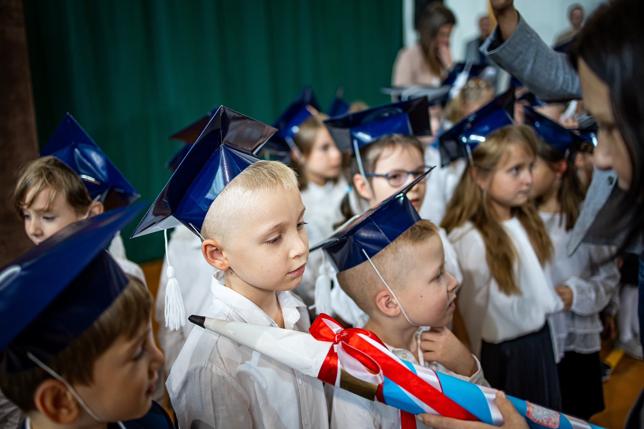 Wszystkie dzieci były skupione i wspaniale prezentowały się w stroju galowym oraz uczniowskich biretach.