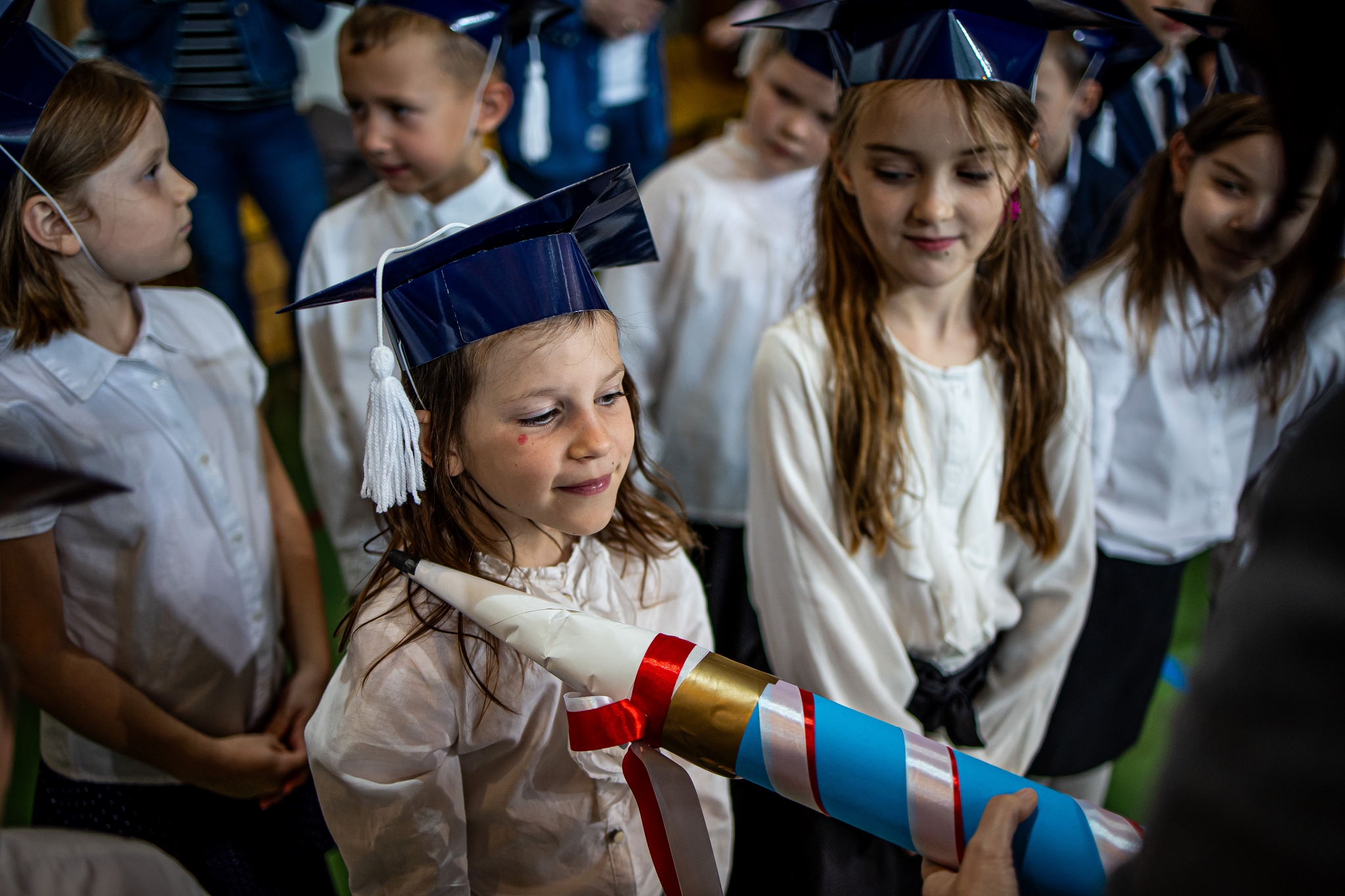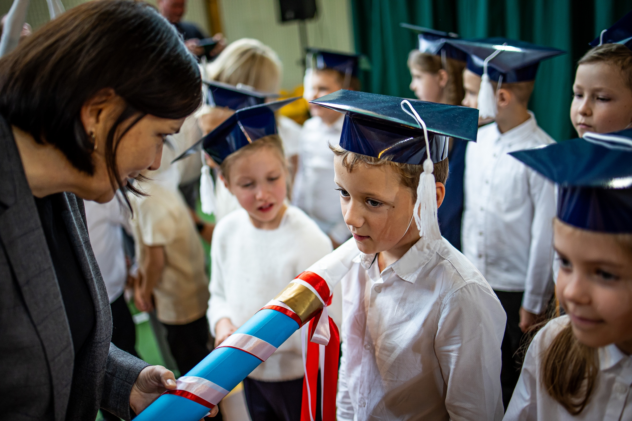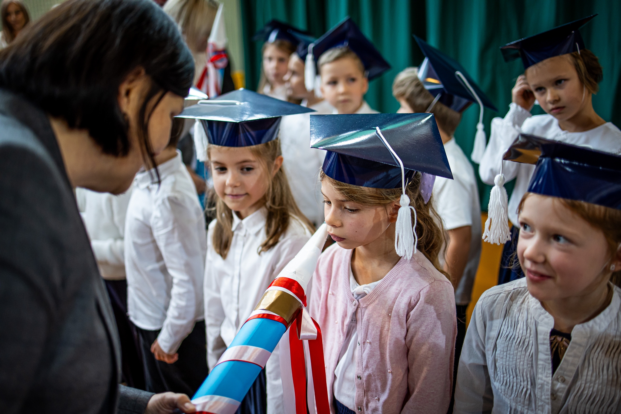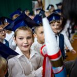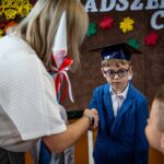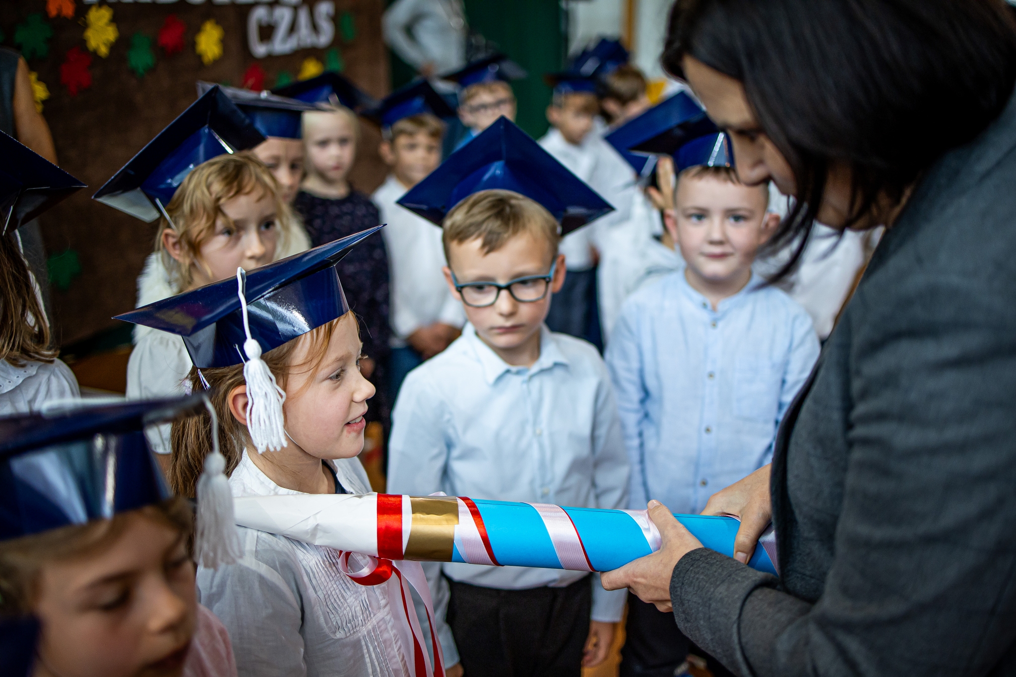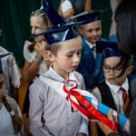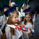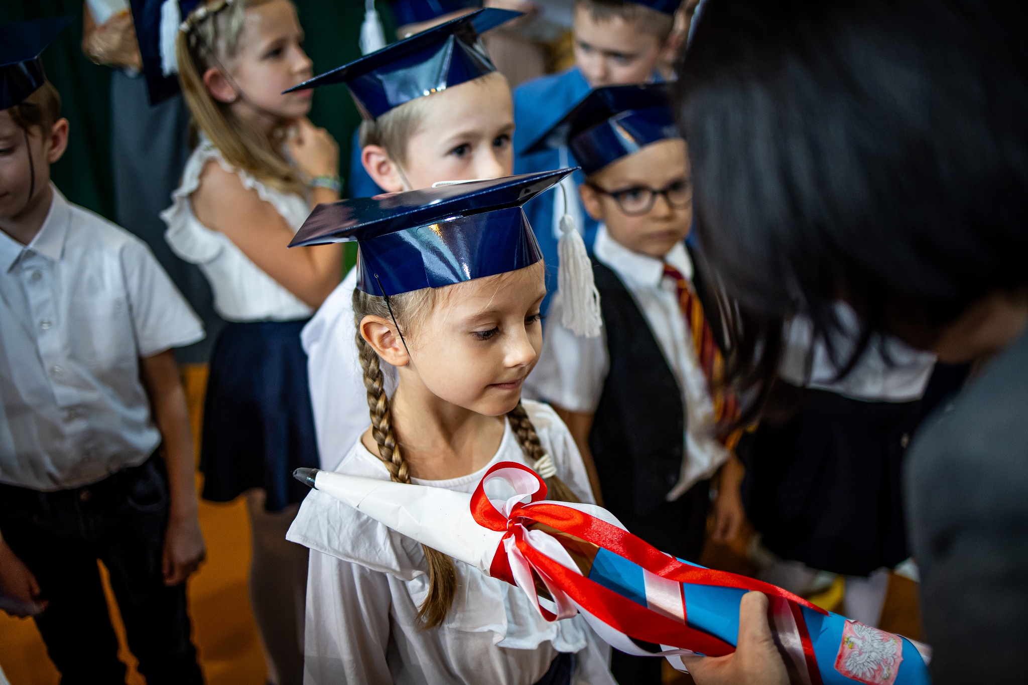 Wszystkie dzieci były skupione i wspaniale prezentowały się w stroju galowym oraz uczniowskich biretach.