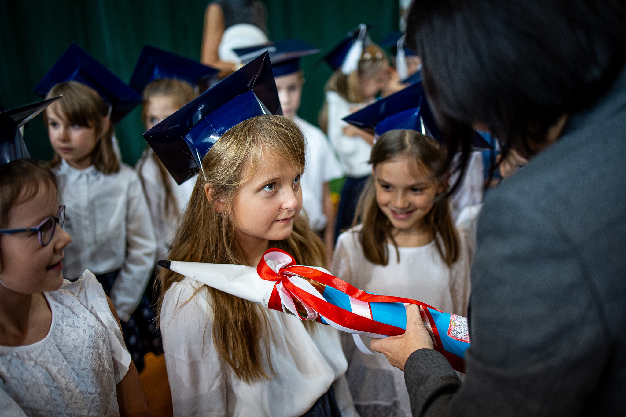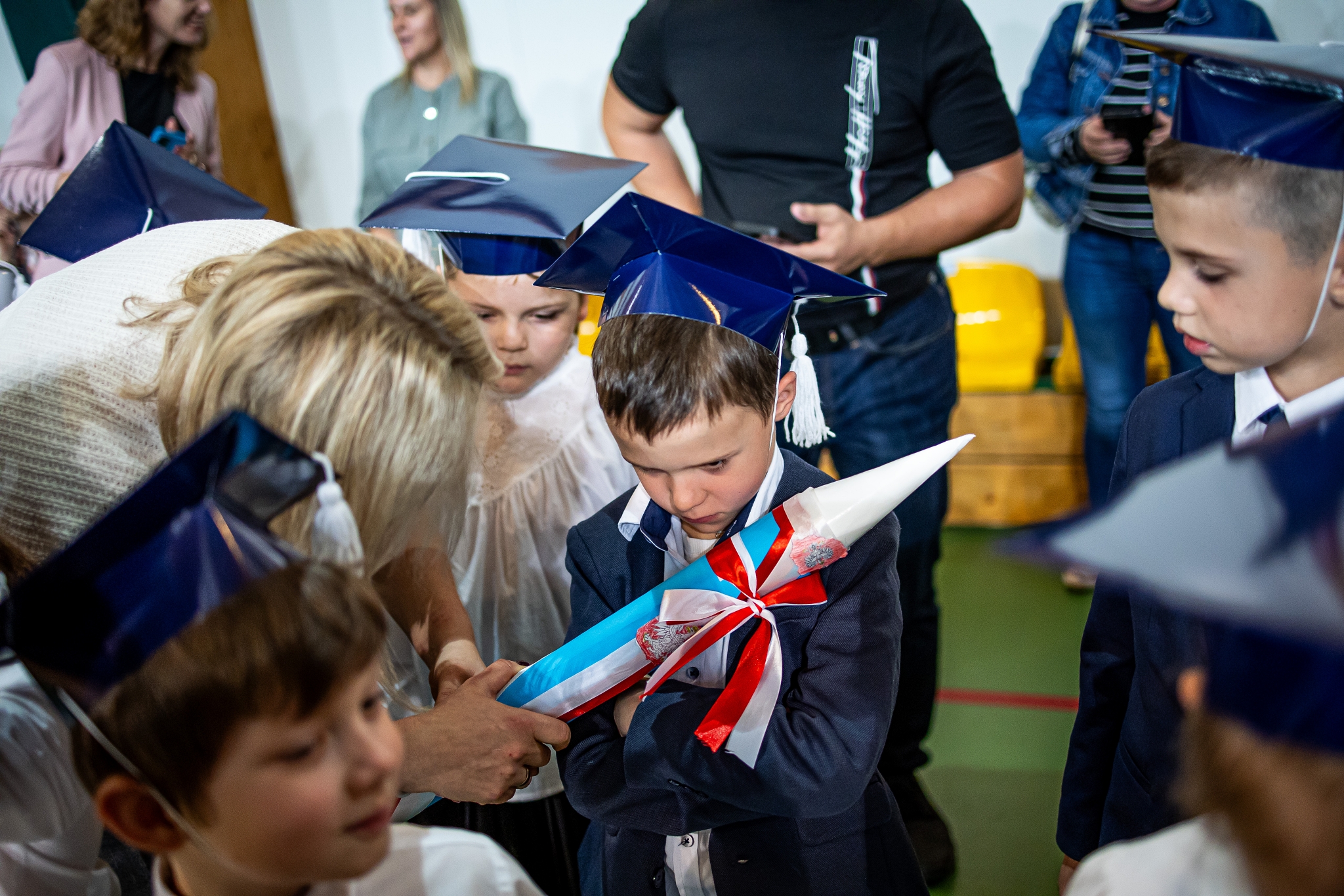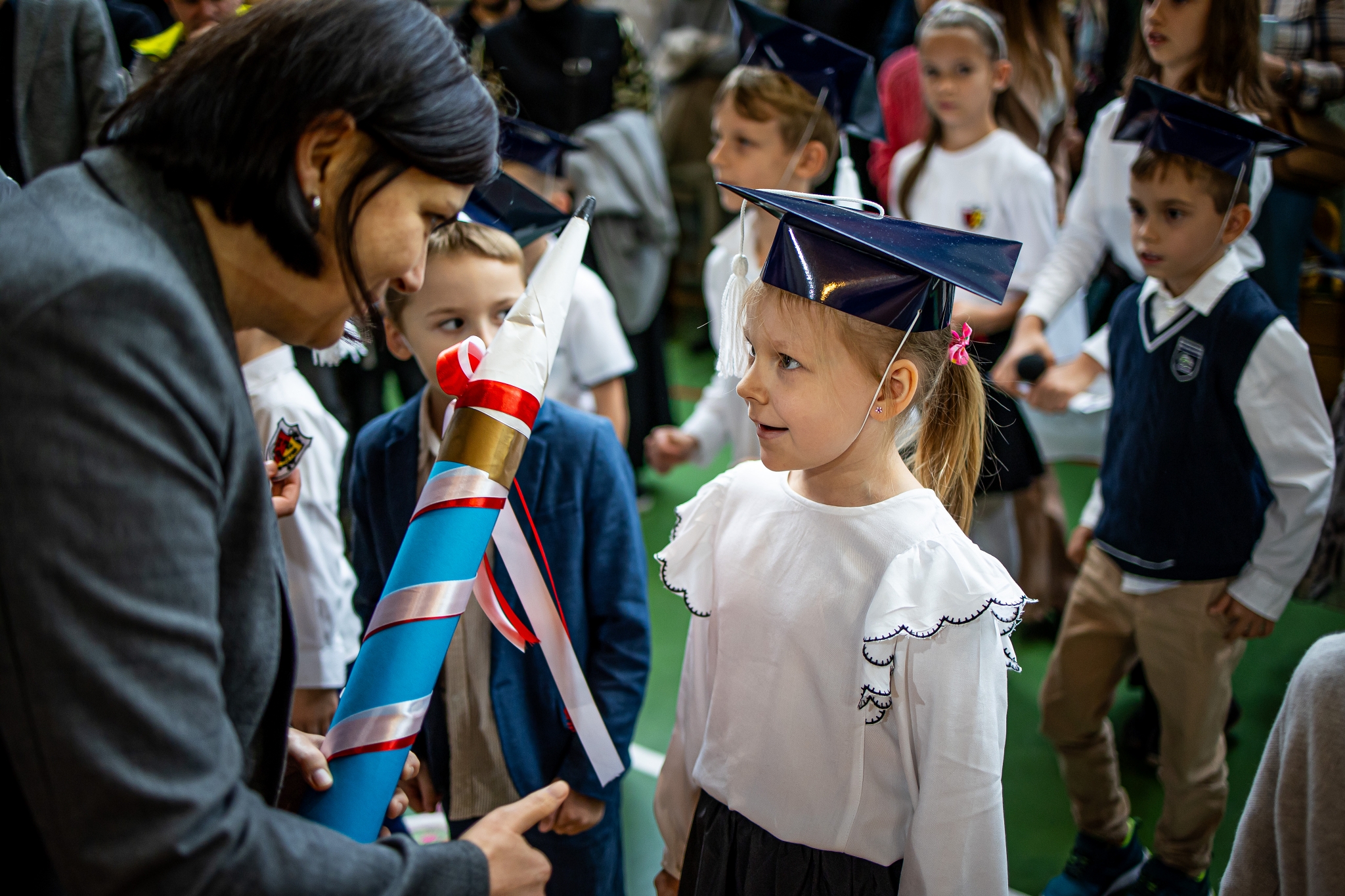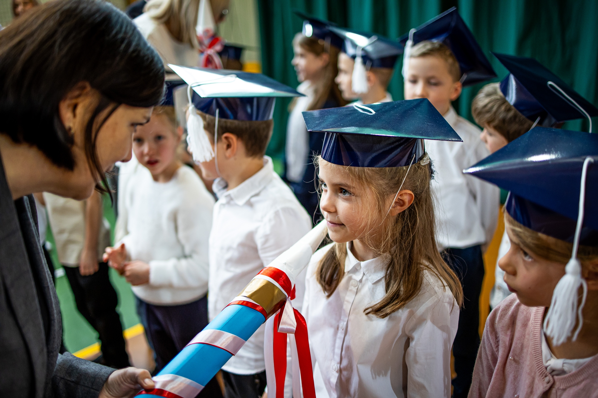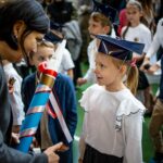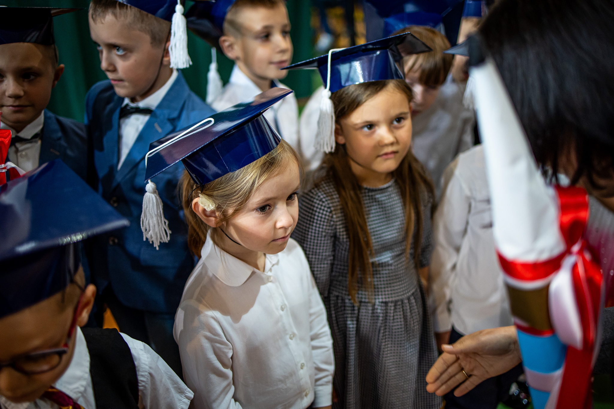 Wszystkie dzieci były skupione i wspaniale prezentowały się w stroju galowym oraz uczniowskich biretach.