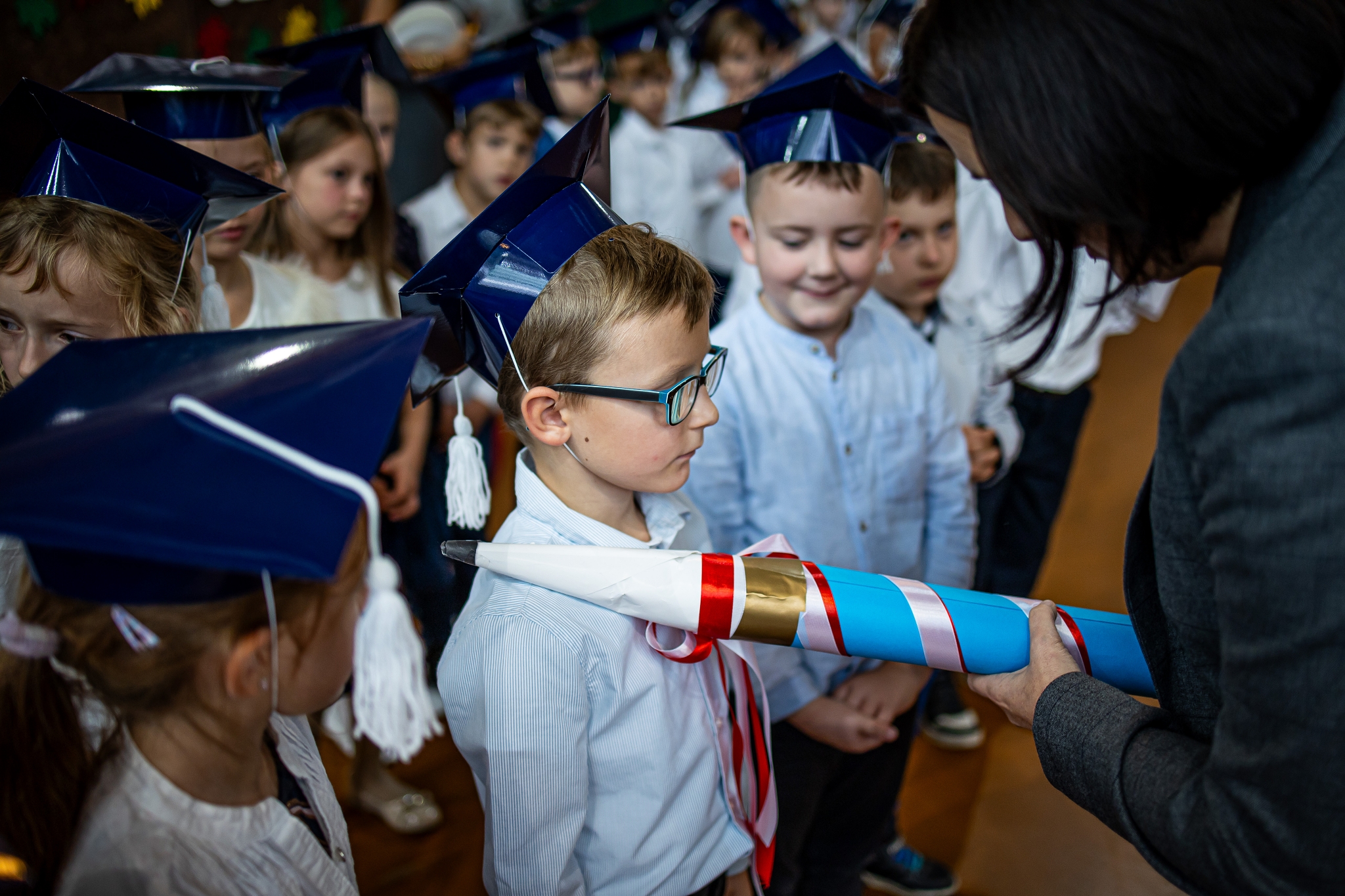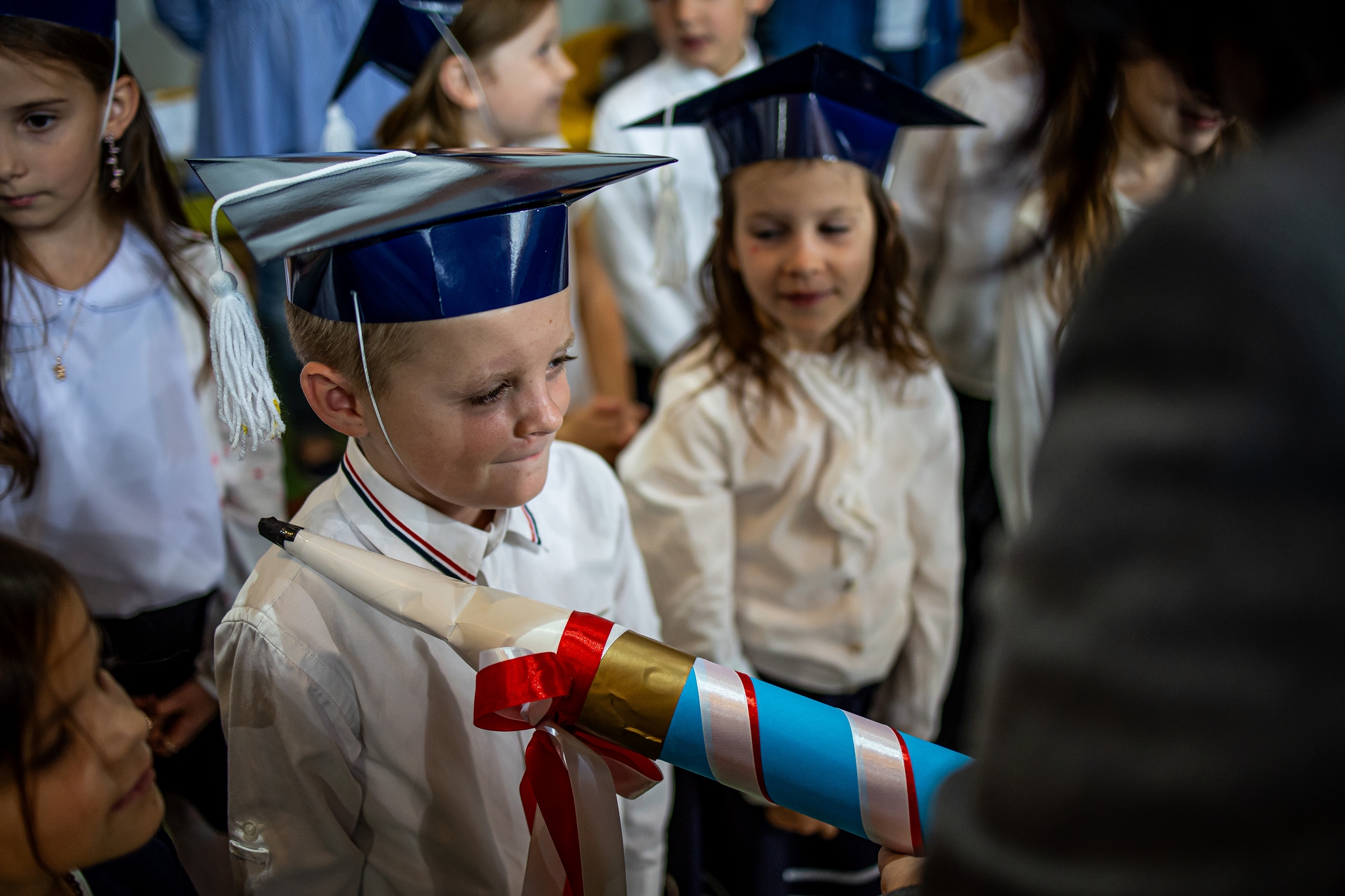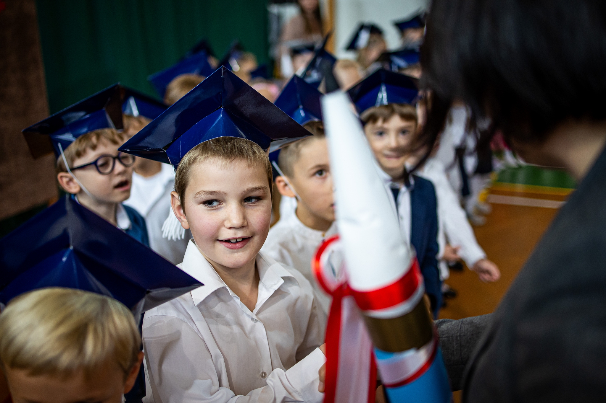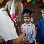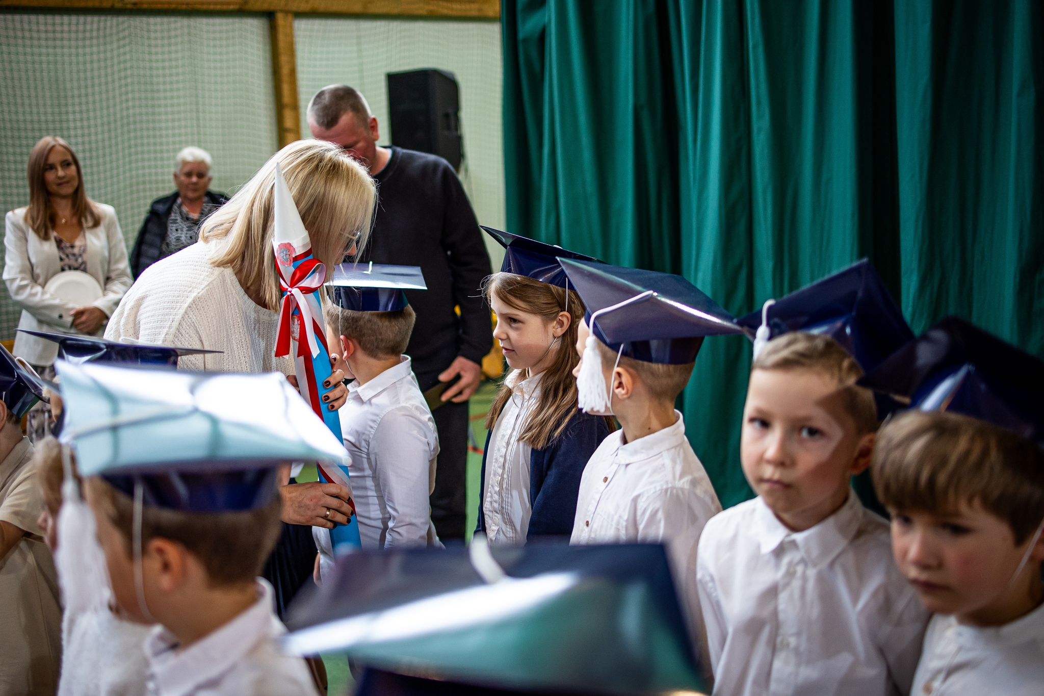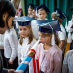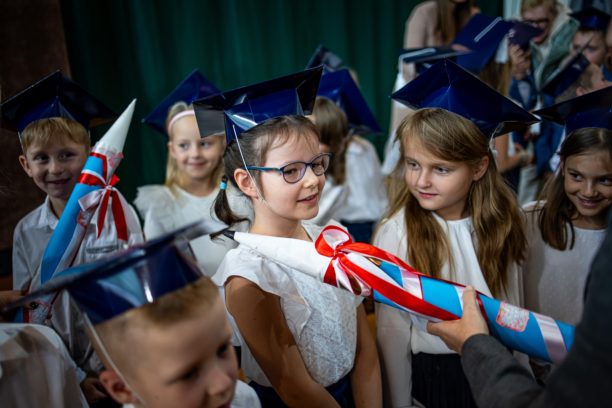 Wszystkie dzieci były skupione i wspaniale prezentowały się w stroju galowym oraz uczniowskich biretach.