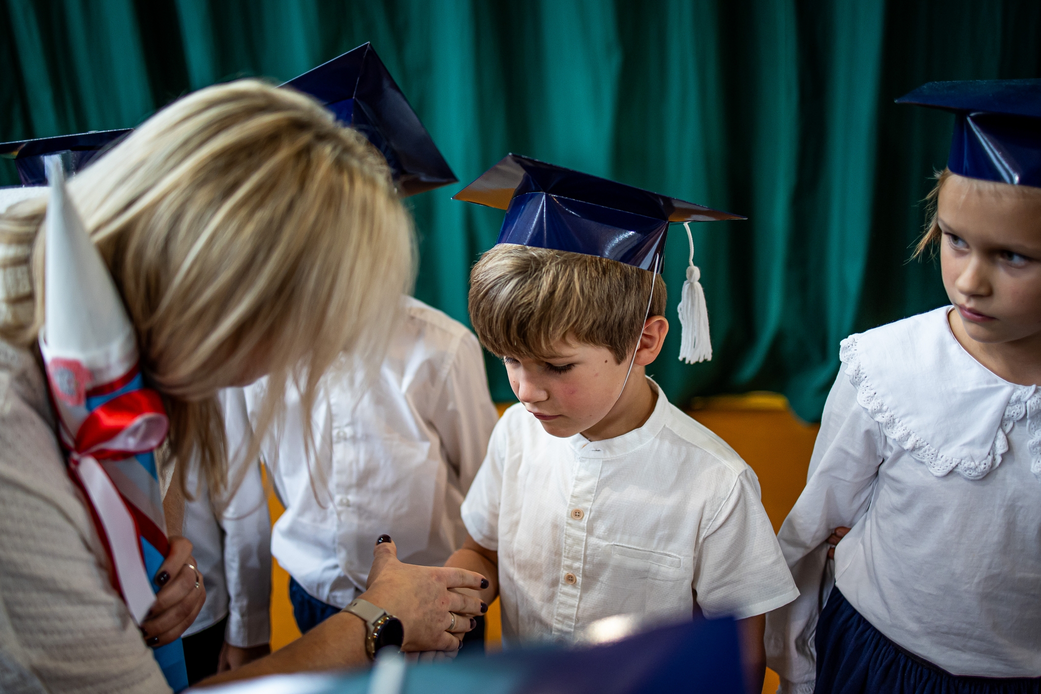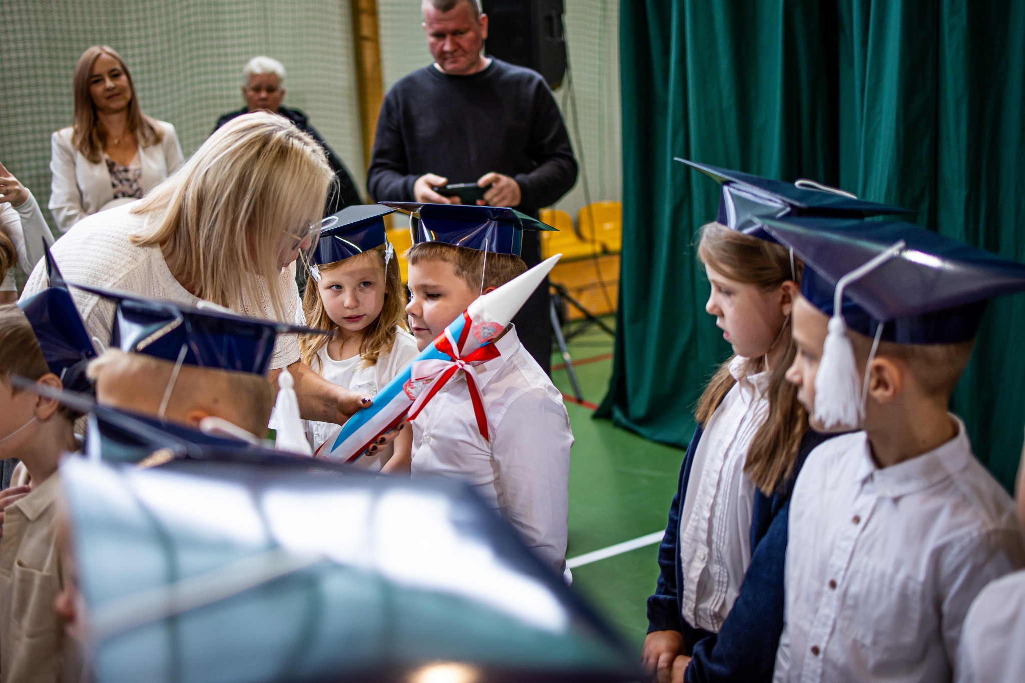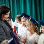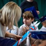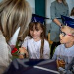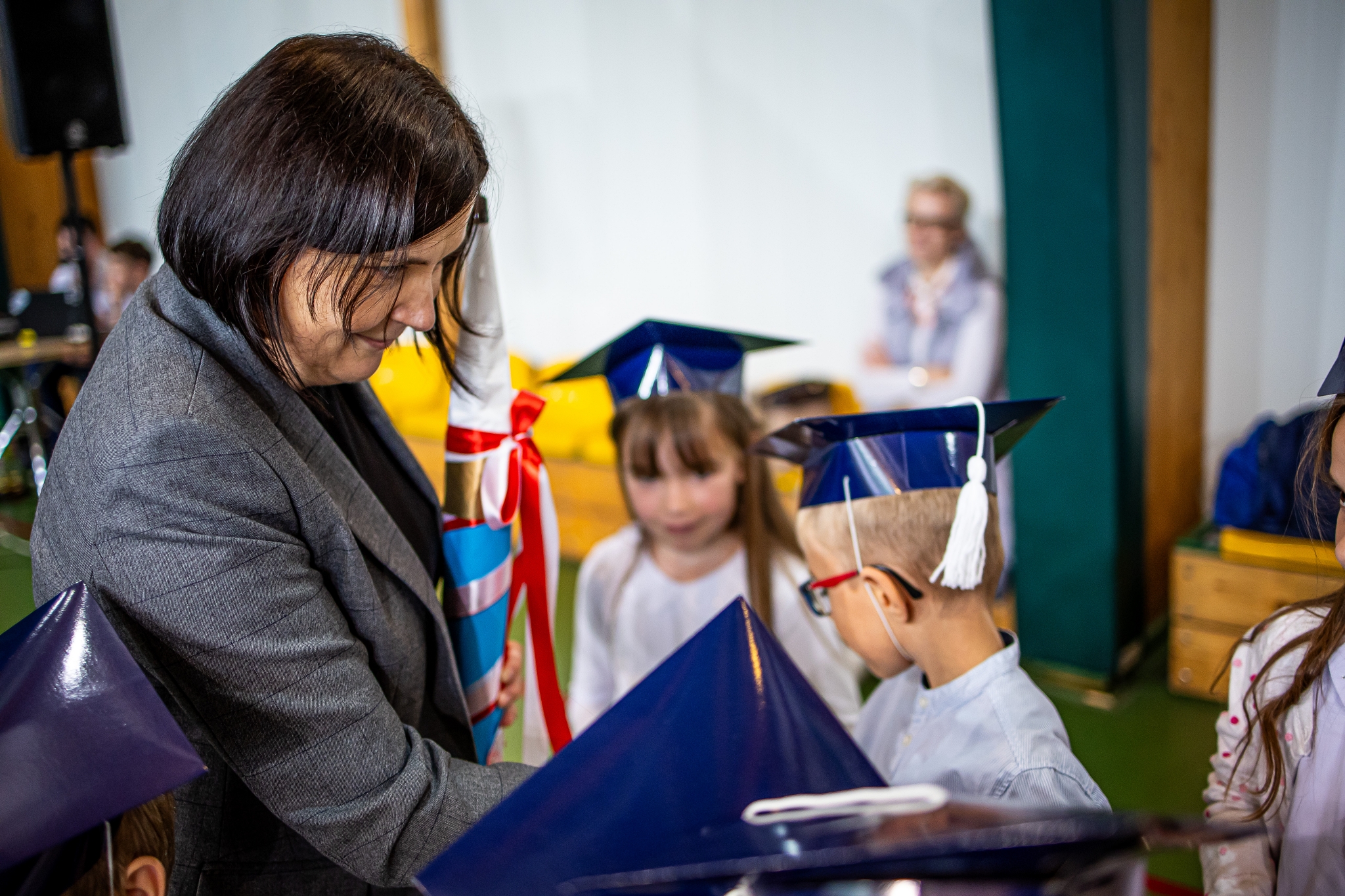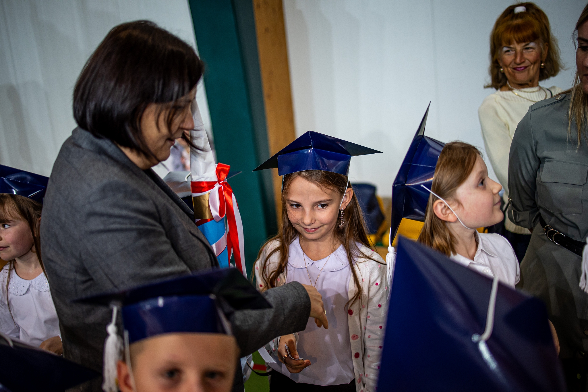 Wszystkie dzieci były skupione i wspaniale prezentowały się w stroju galowym oraz uczniowskich biretach.