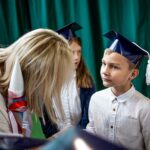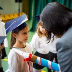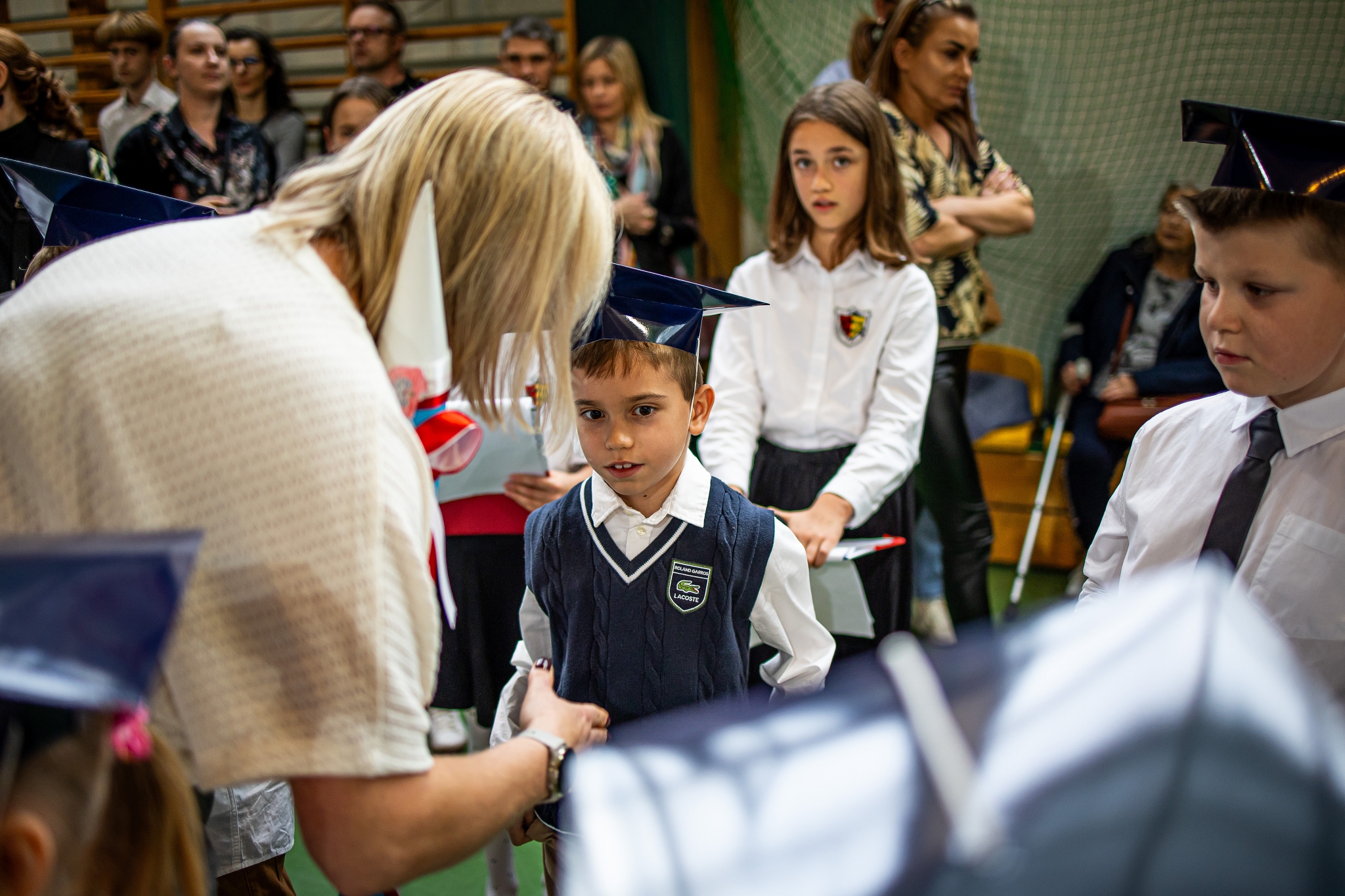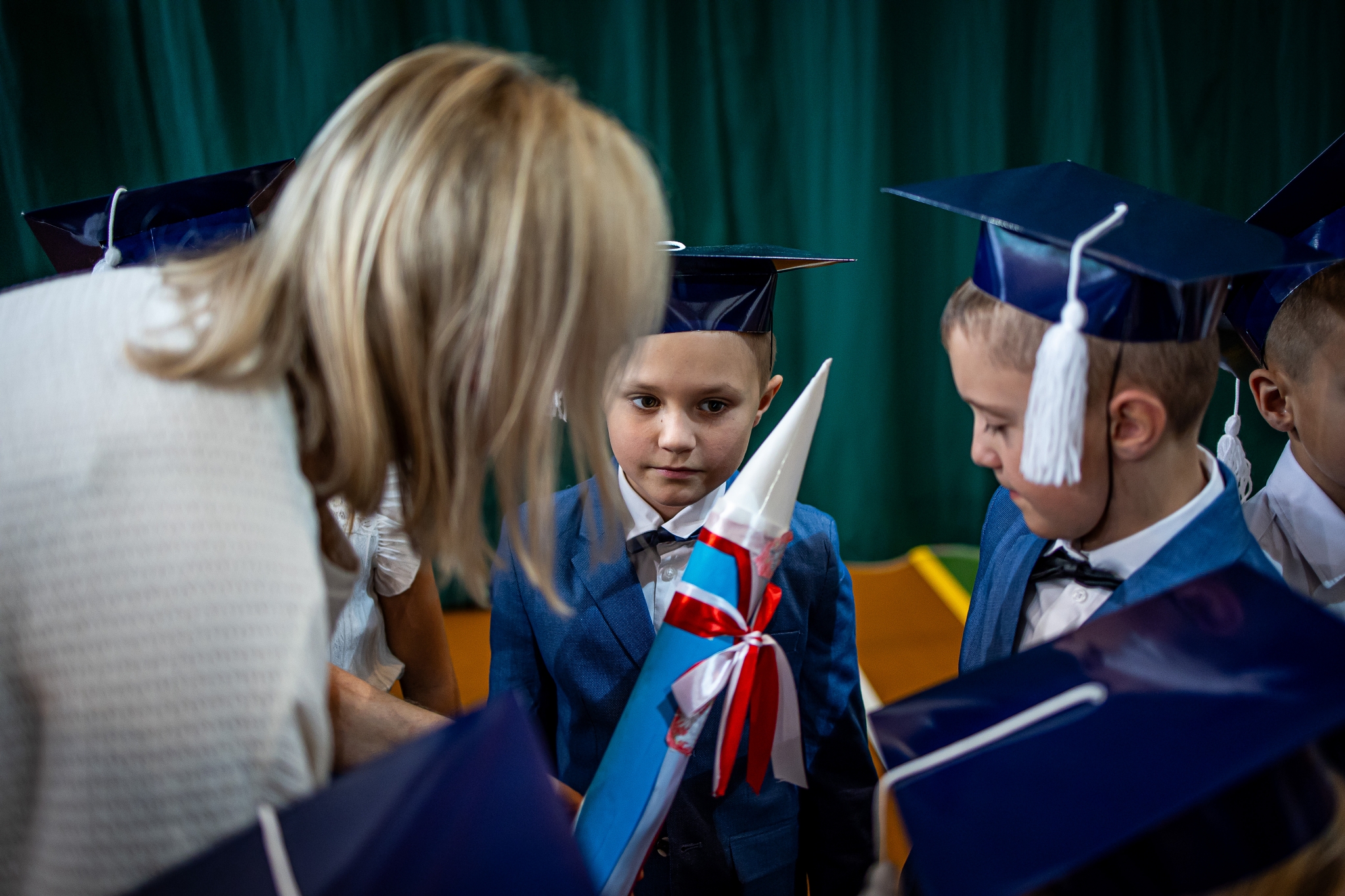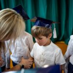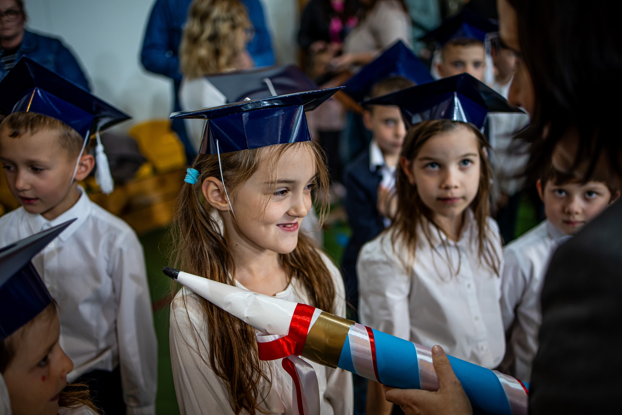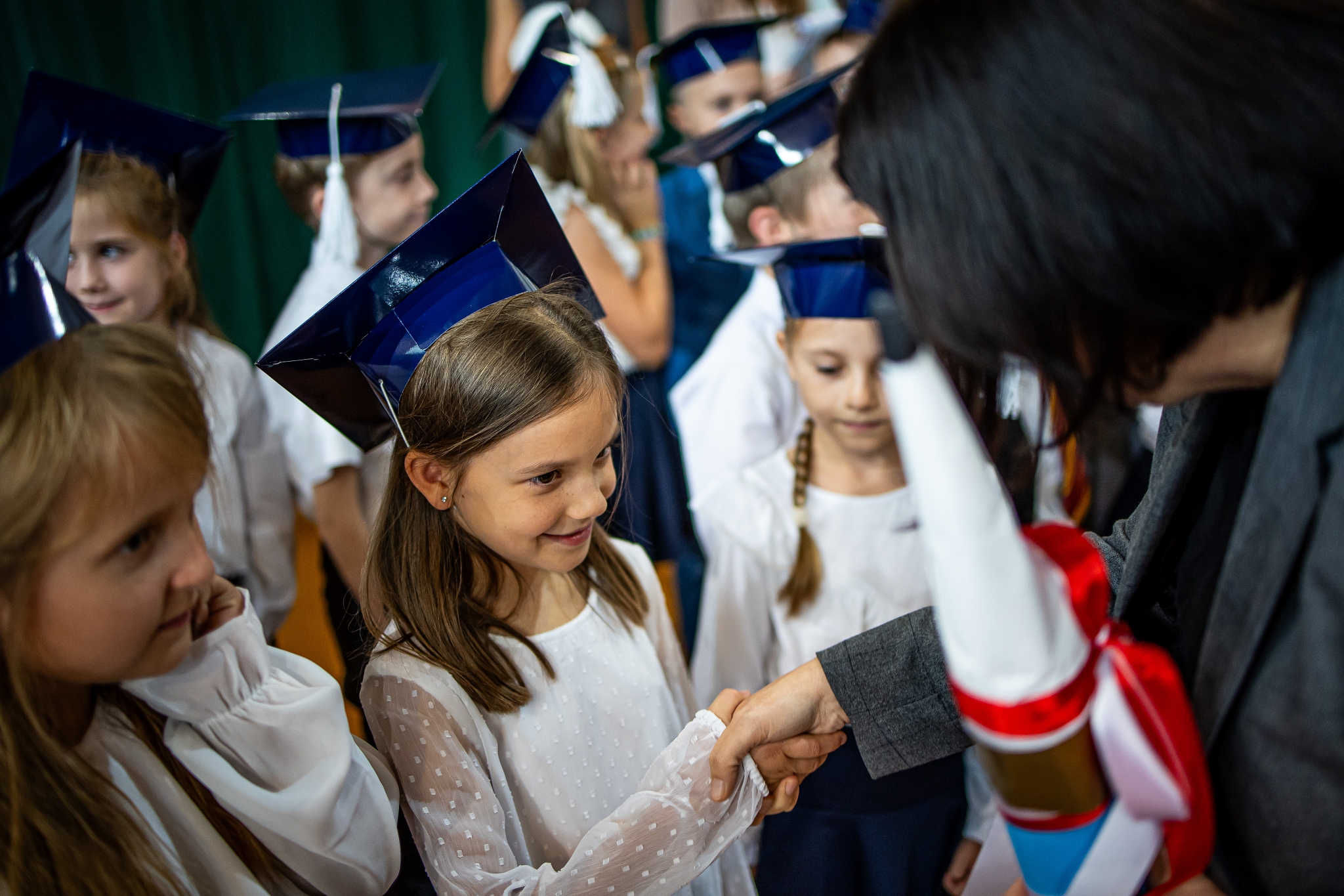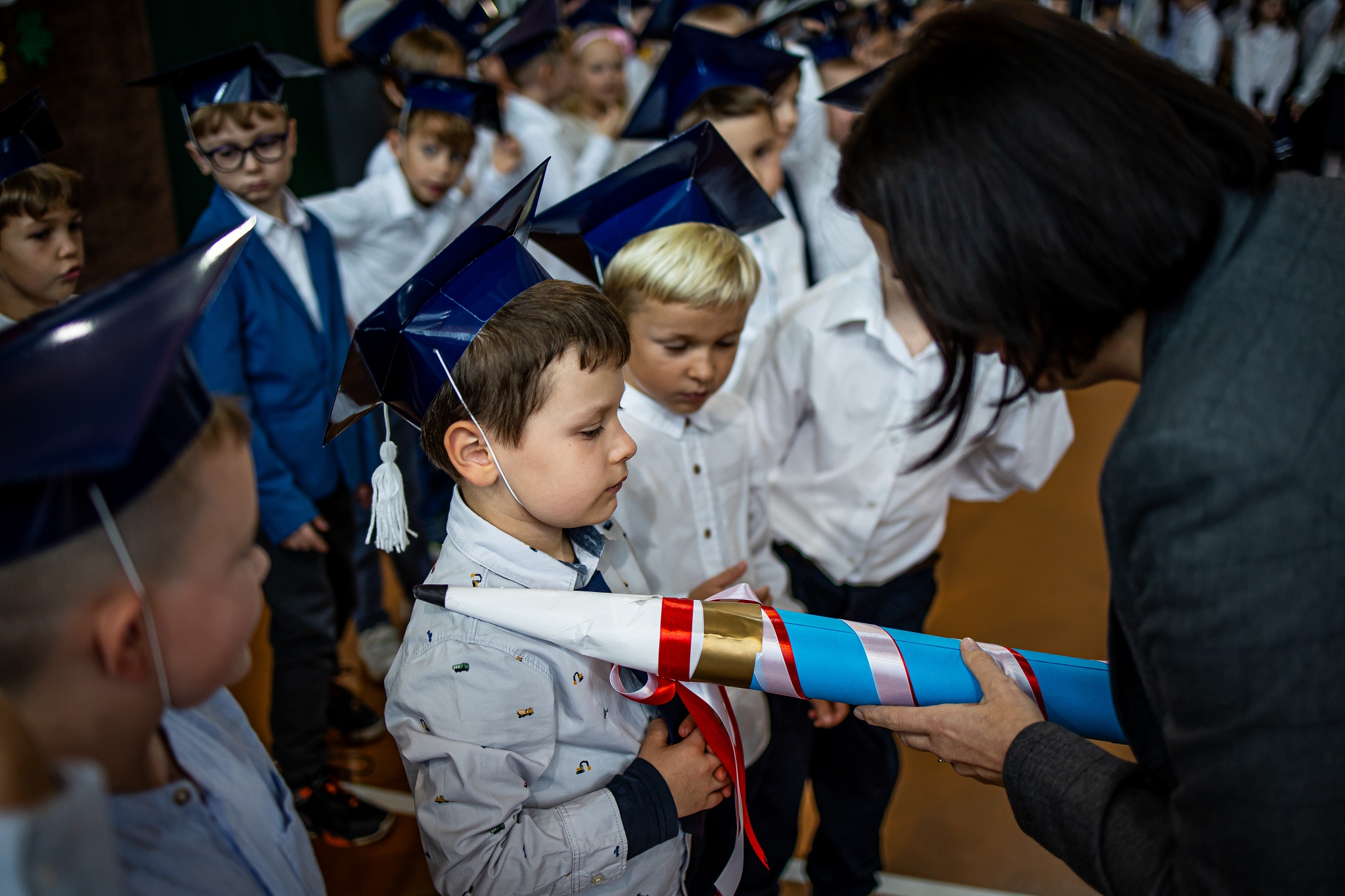 Wszystkie dzieci były skupione i wspaniale prezentowały się w stroju galowym oraz uczniowskich biretach.