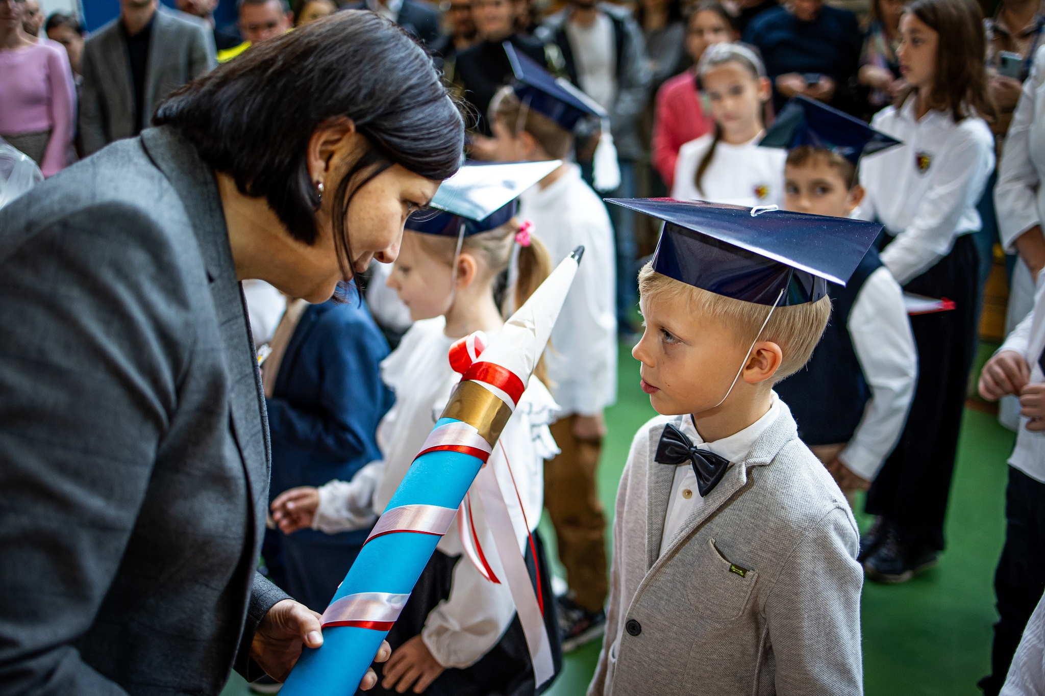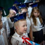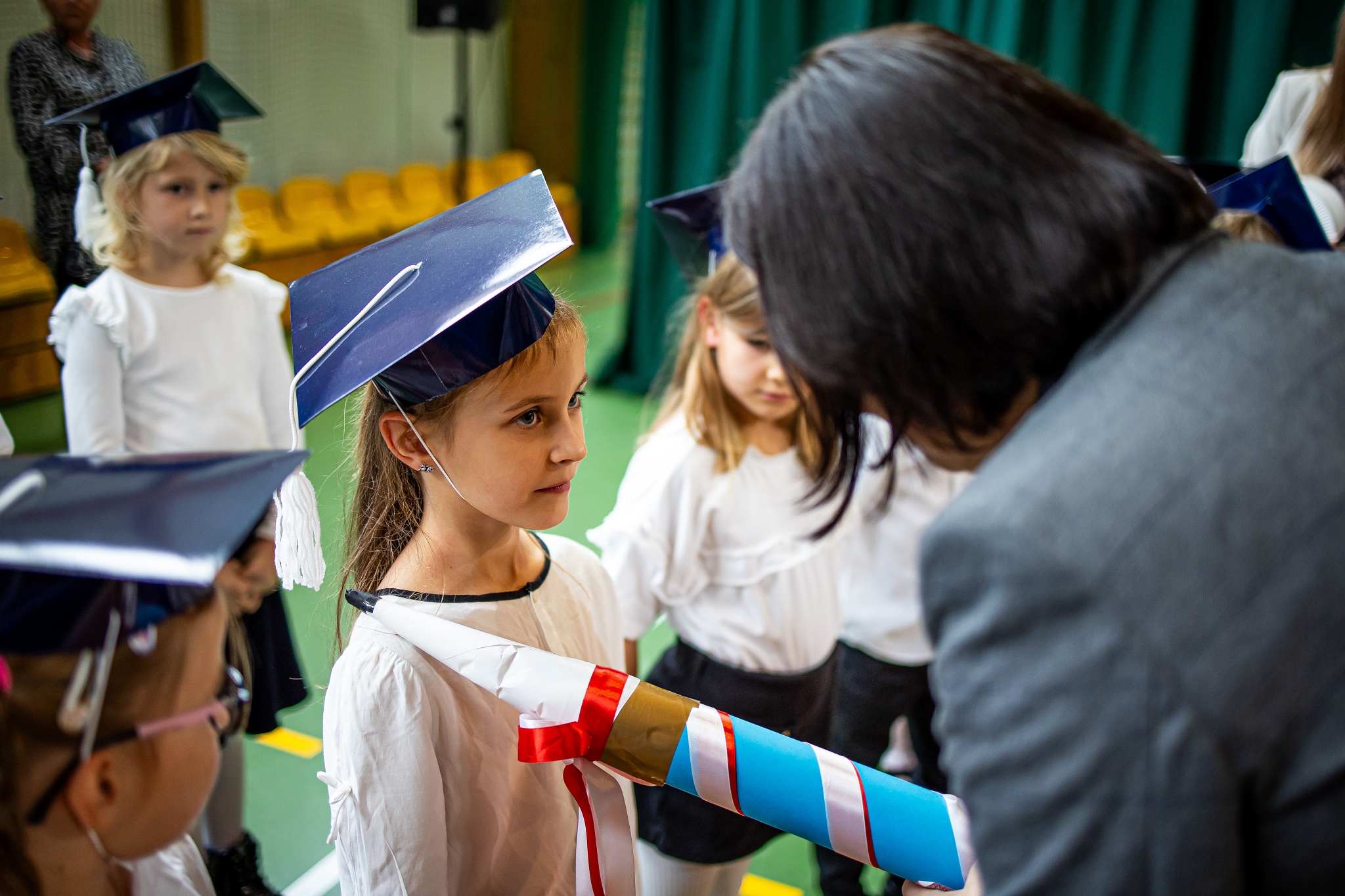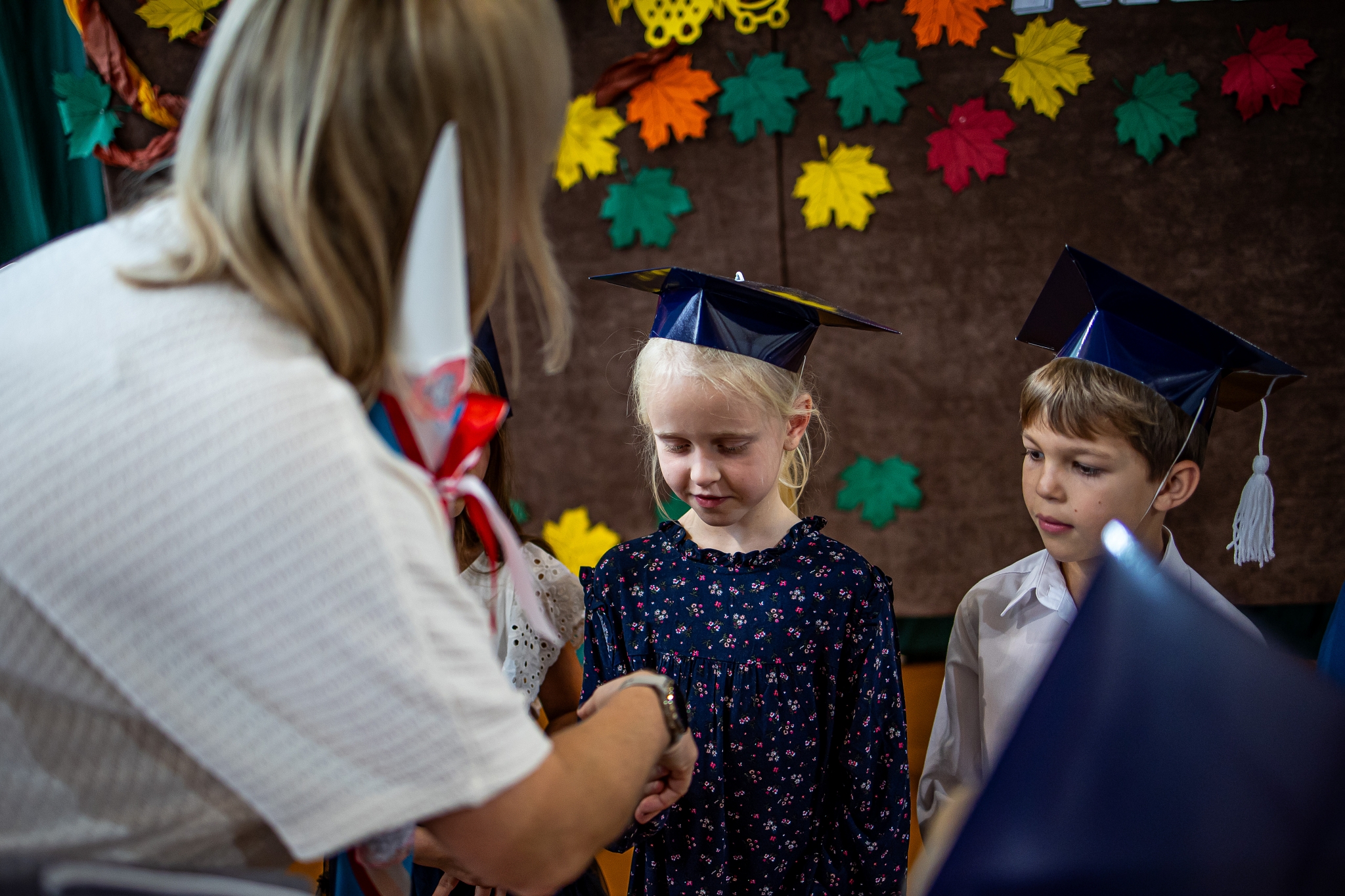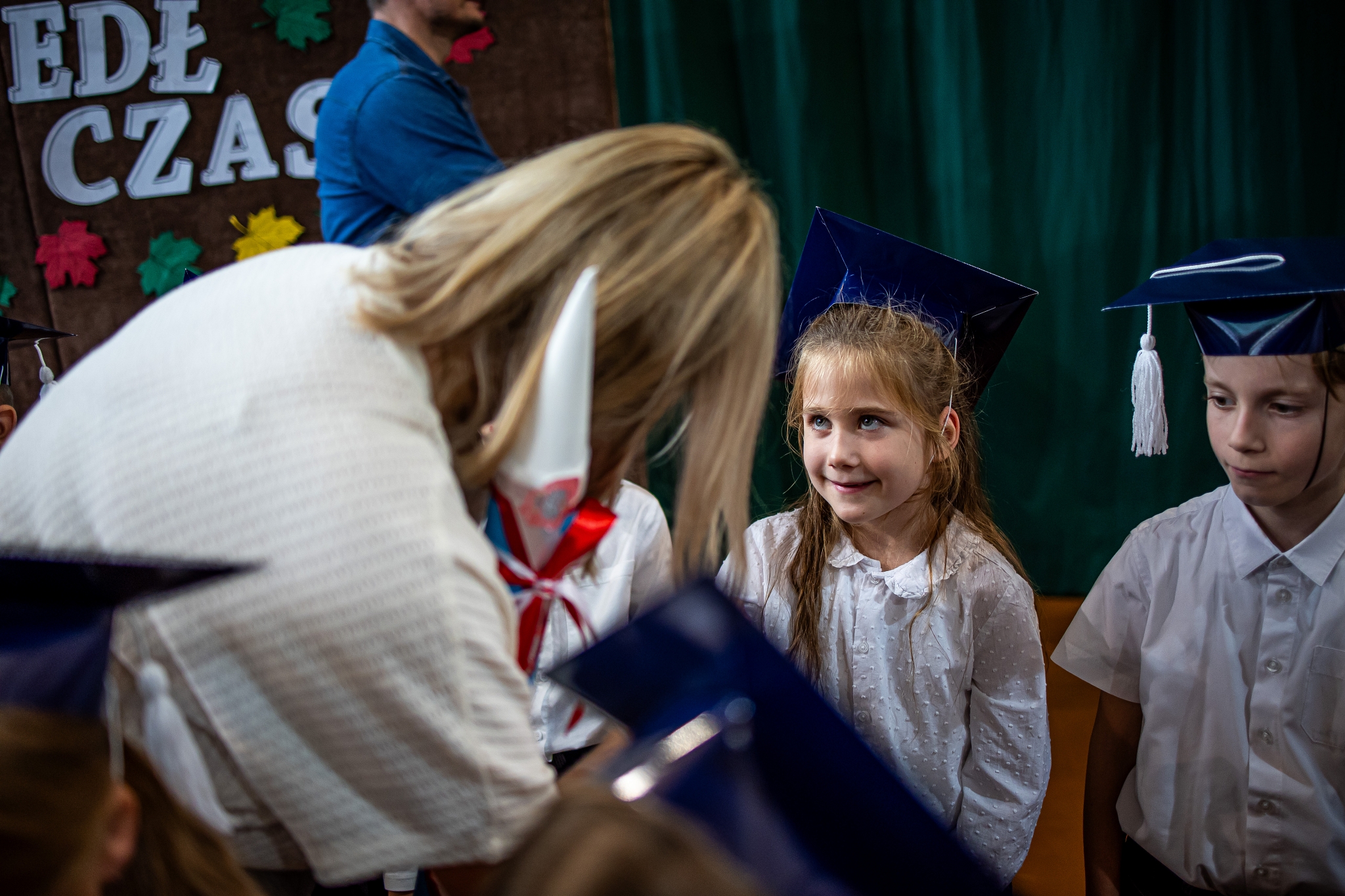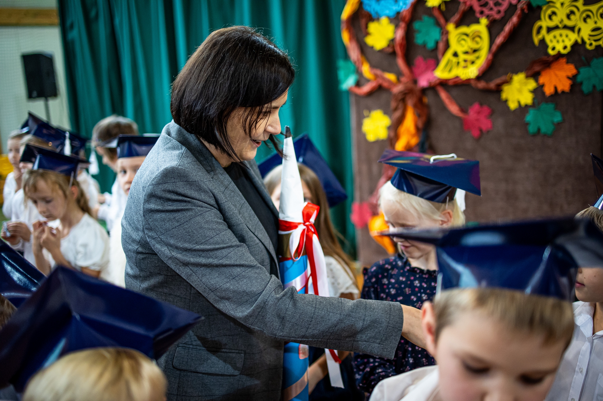 Wszystkie dzieci były skupione i wspaniale prezentowały się w stroju galowym oraz uczniowskich biretach.