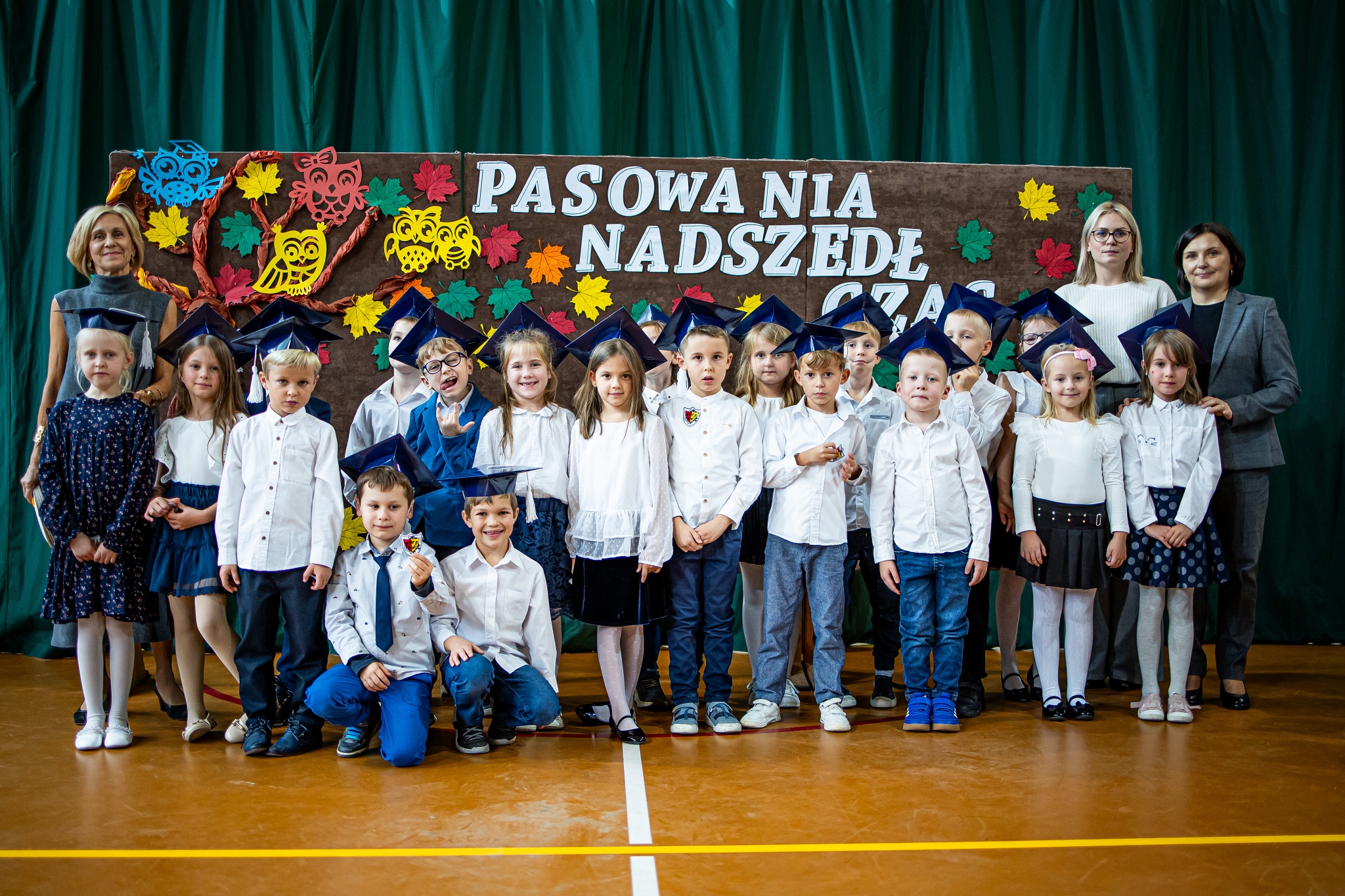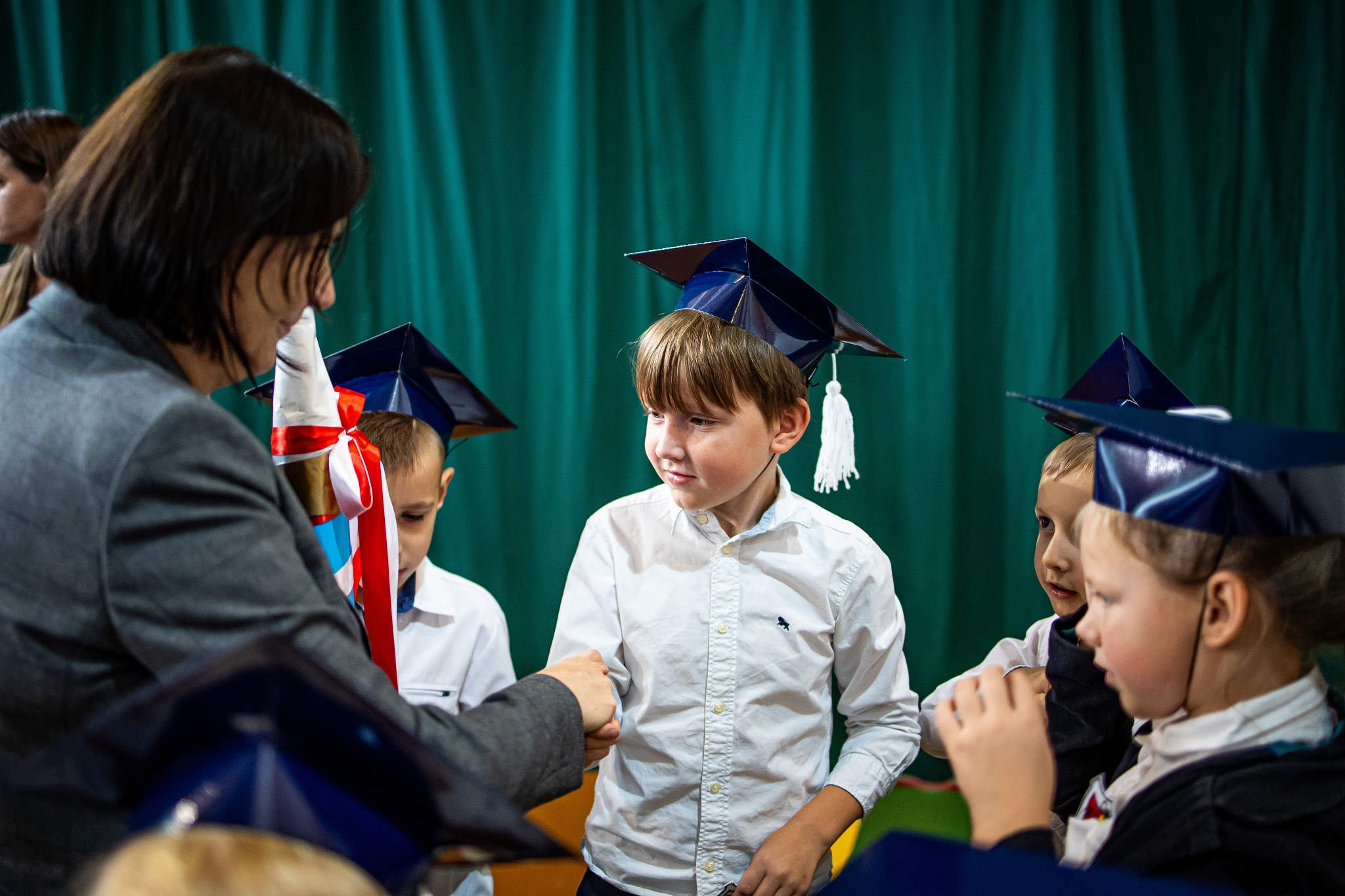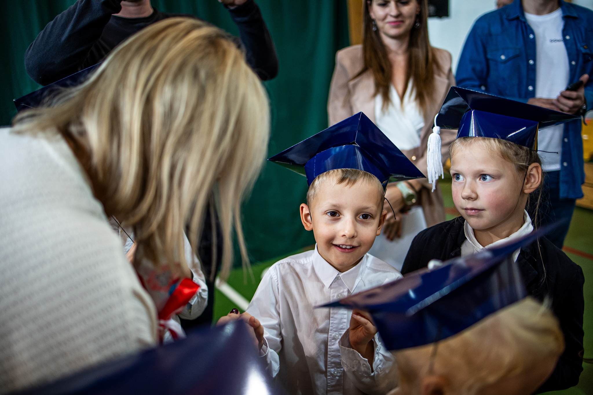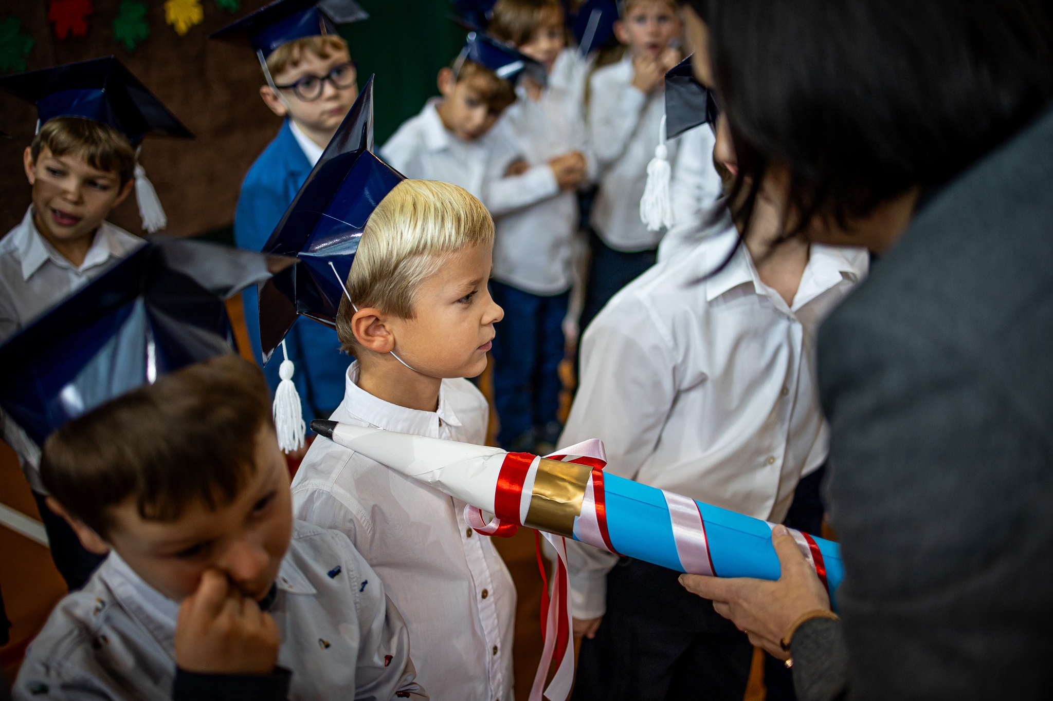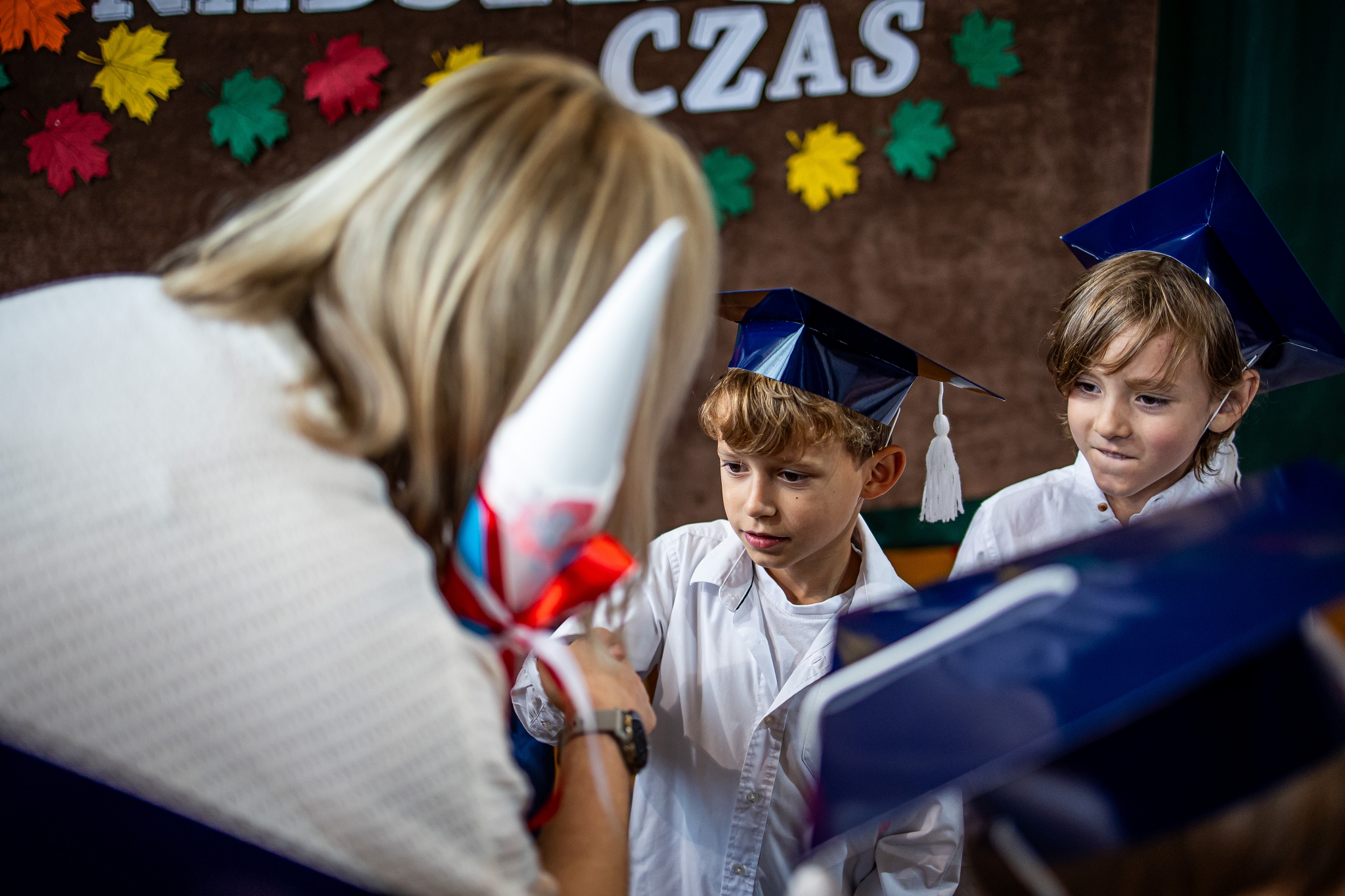 Wszystkie dzieci były skupione i wspaniale prezentowały się w stroju galowym oraz uczniowskich biretach.