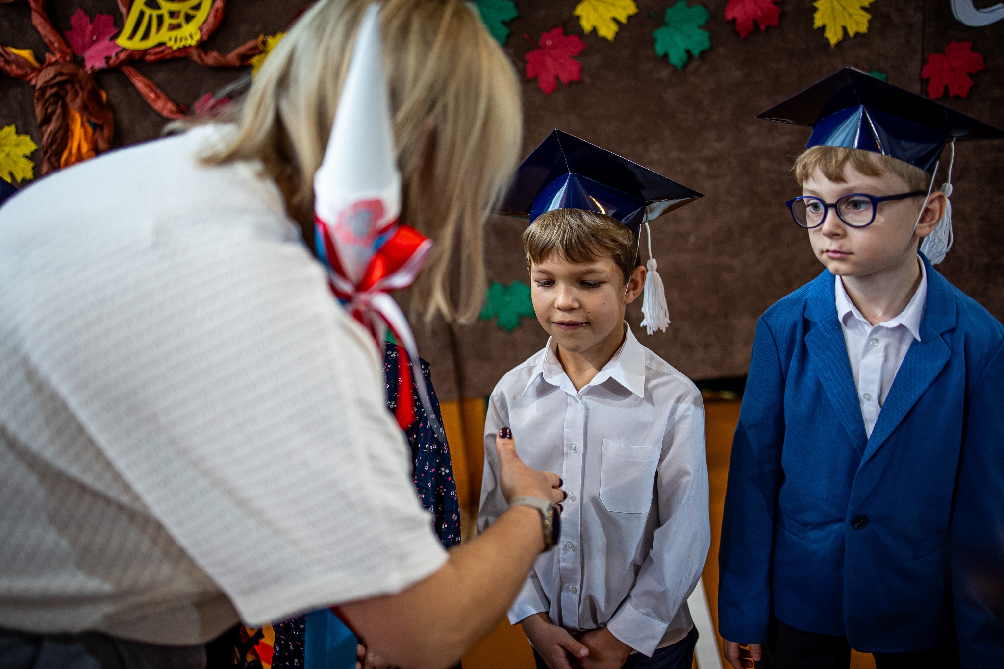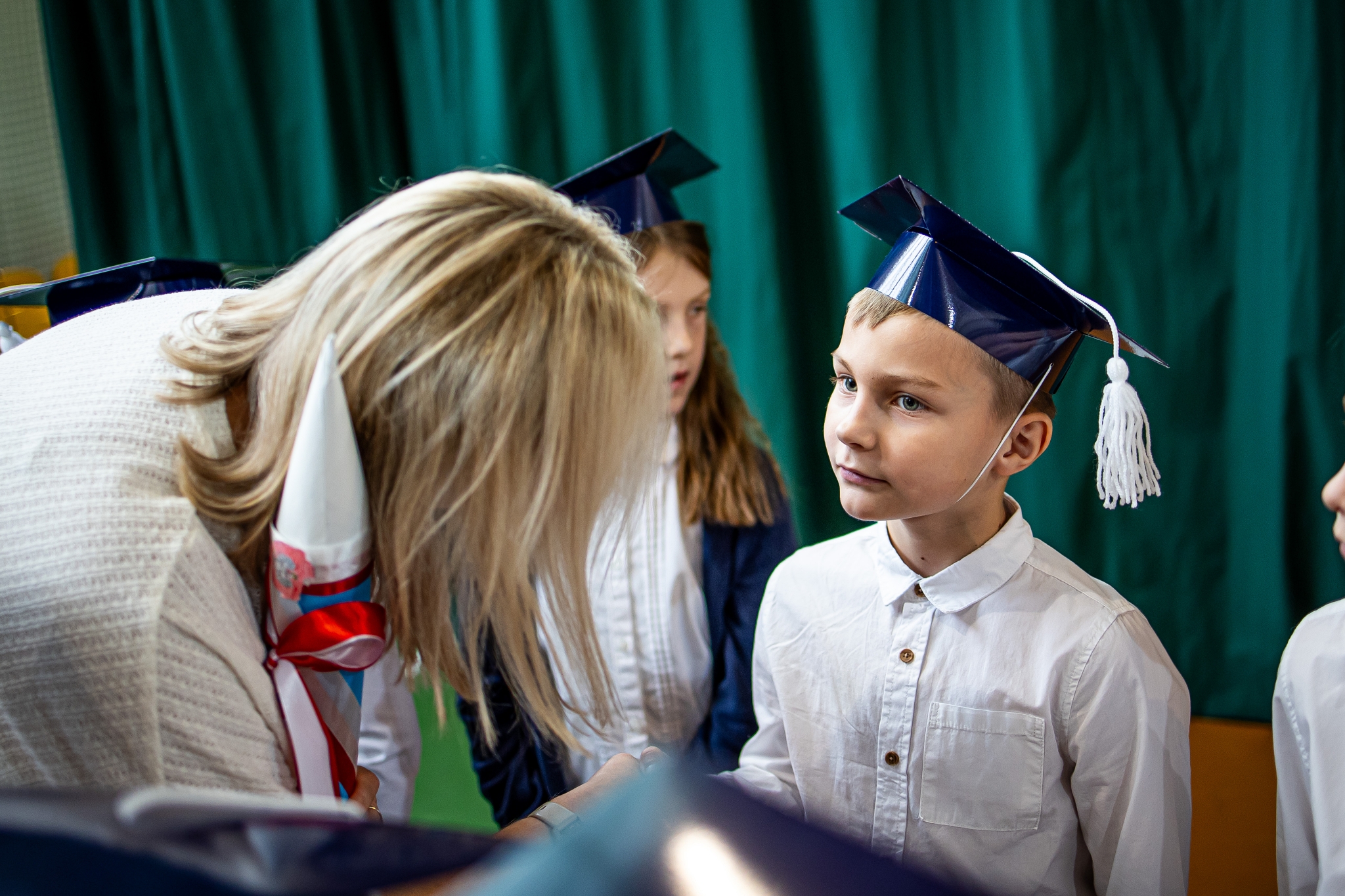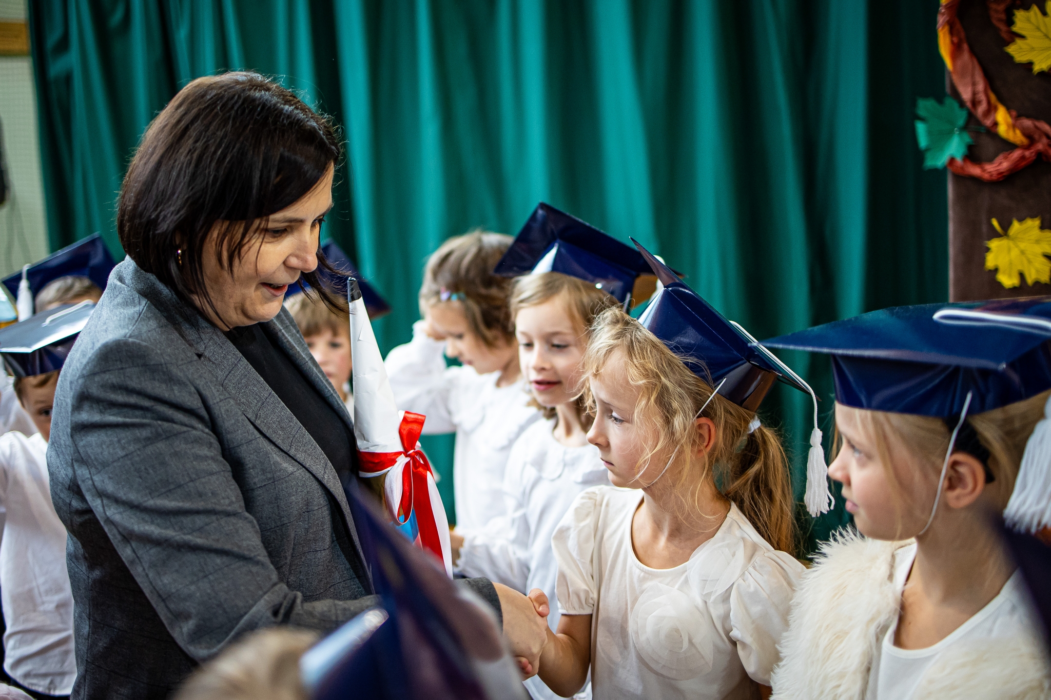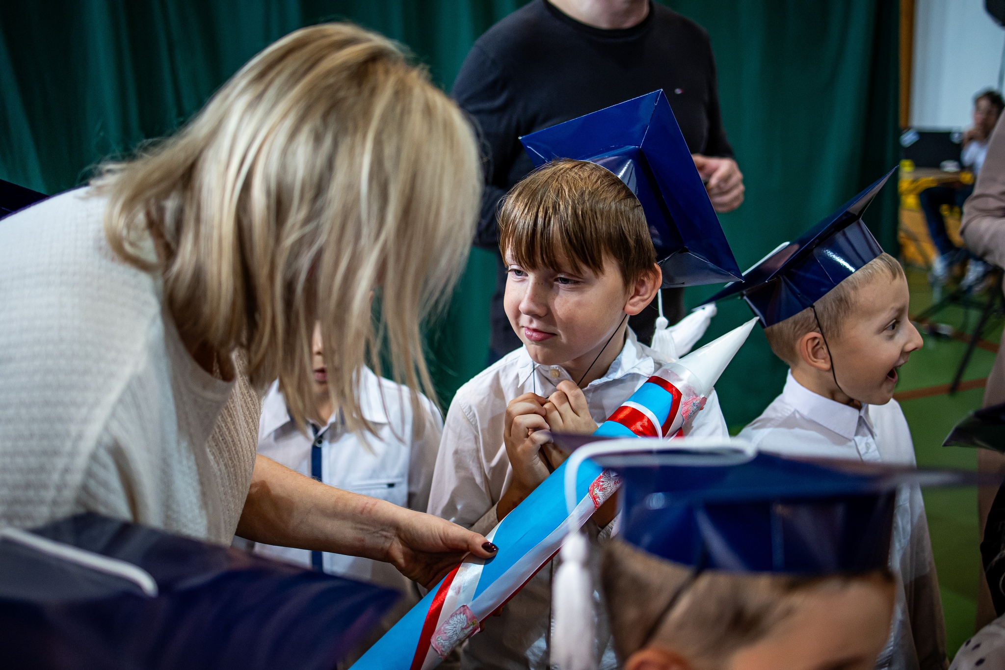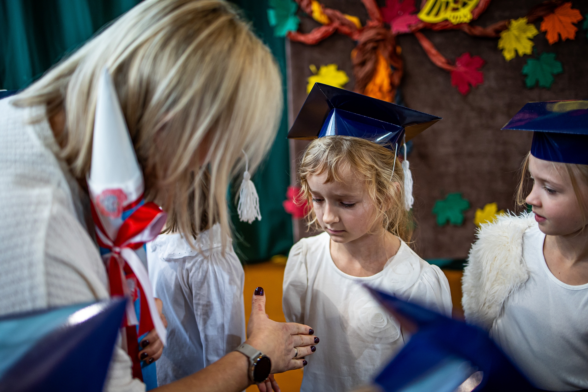 Wszystkie dzieci były skupione i wspaniale prezentowały się w stroju galowym oraz uczniowskich biretach.