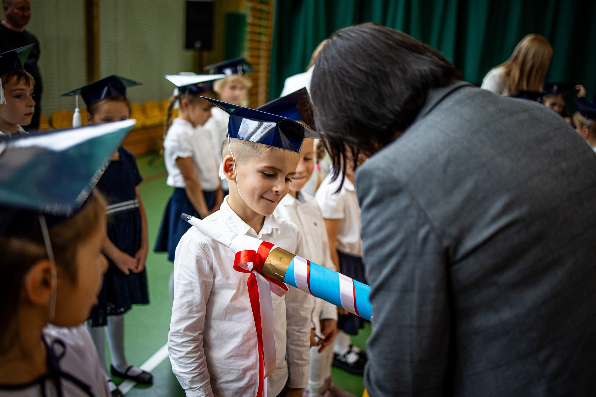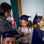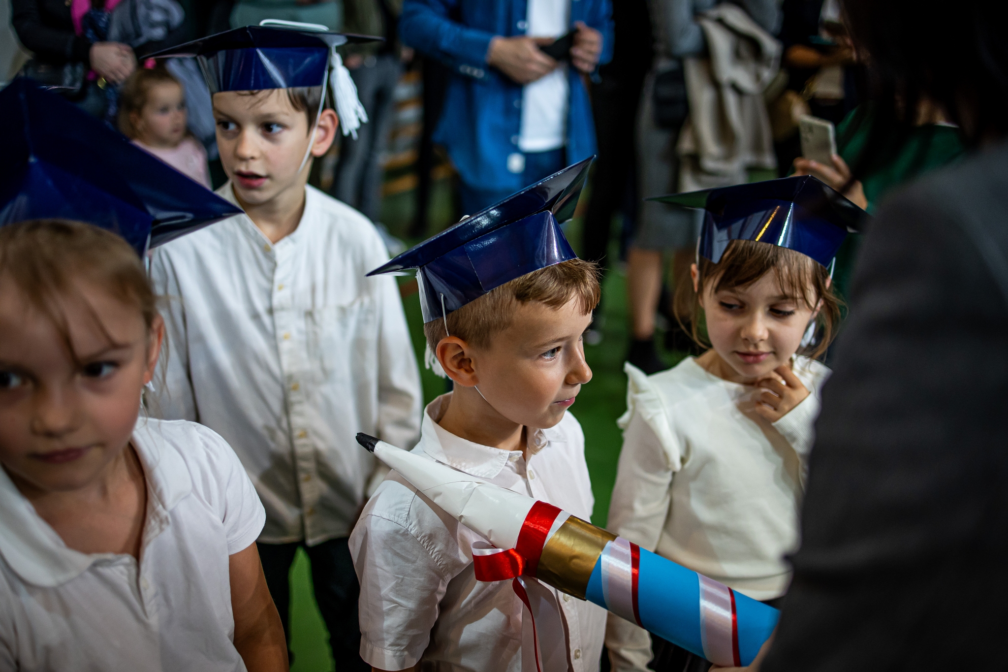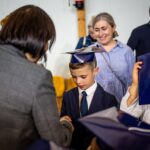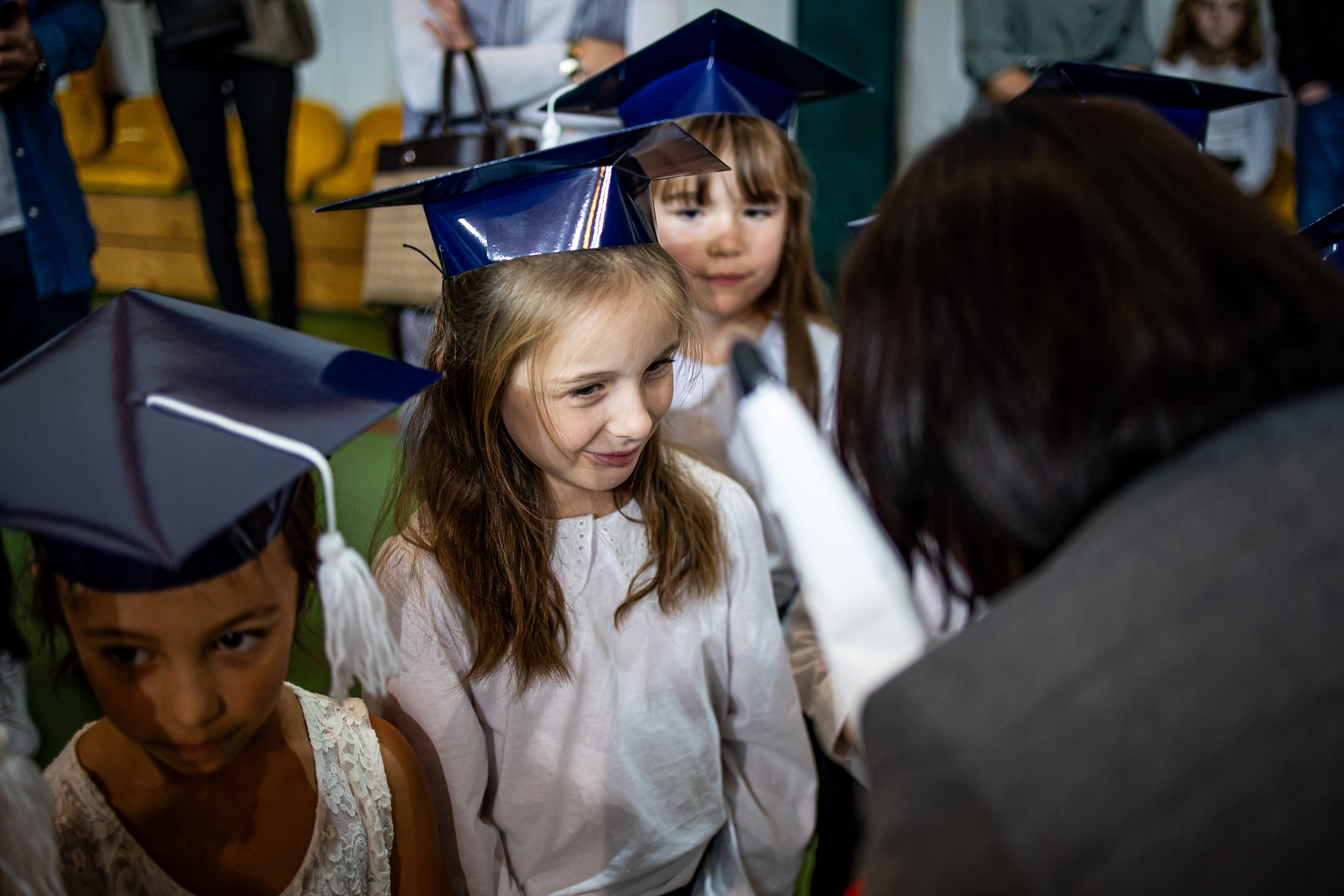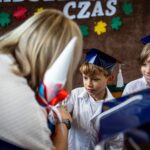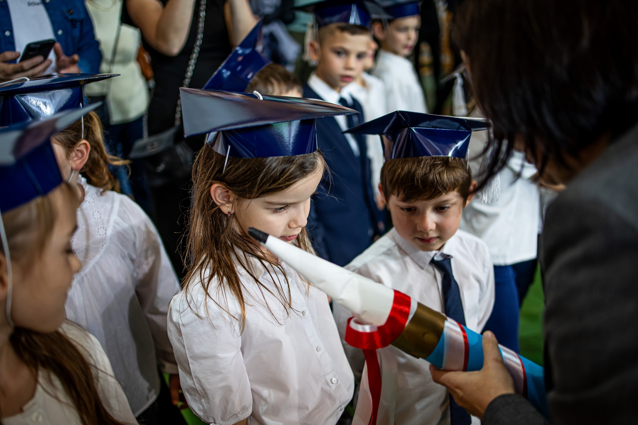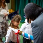 Wszystkie dzieci były skupione i wspaniale prezentowały się w stroju galowym oraz uczniowskich biretach.