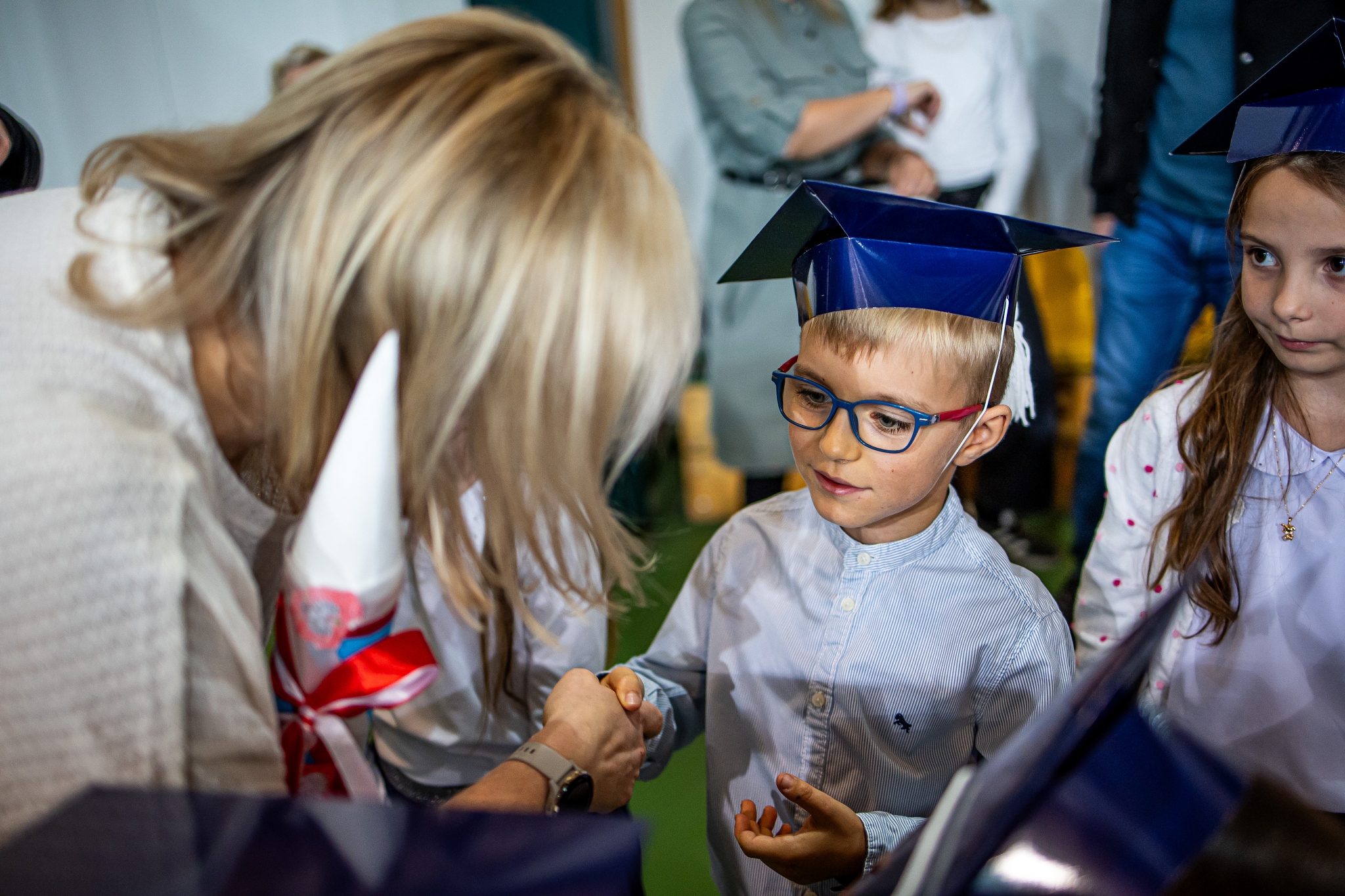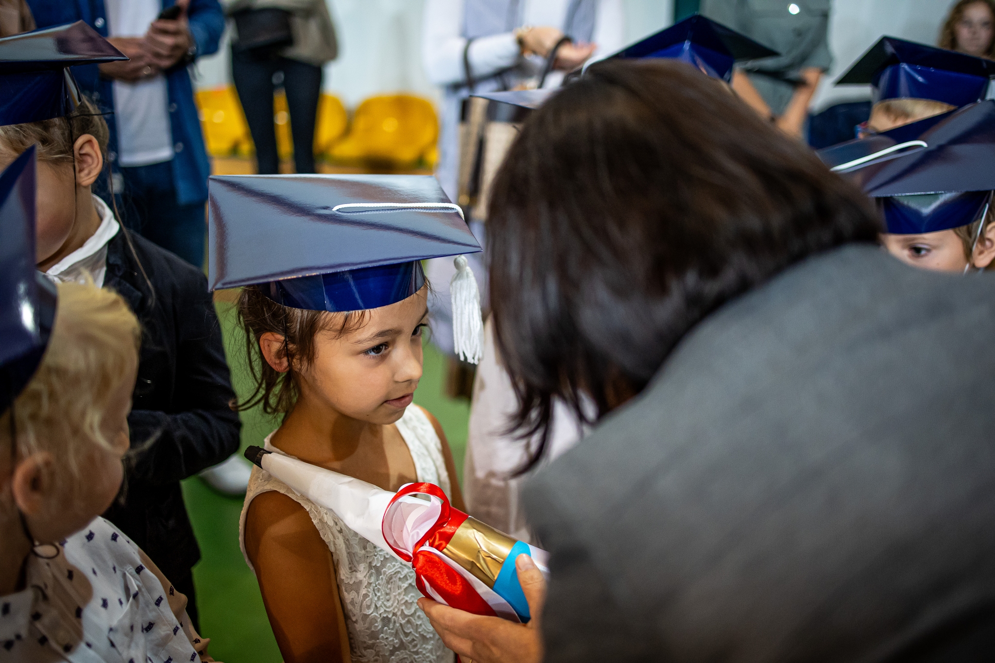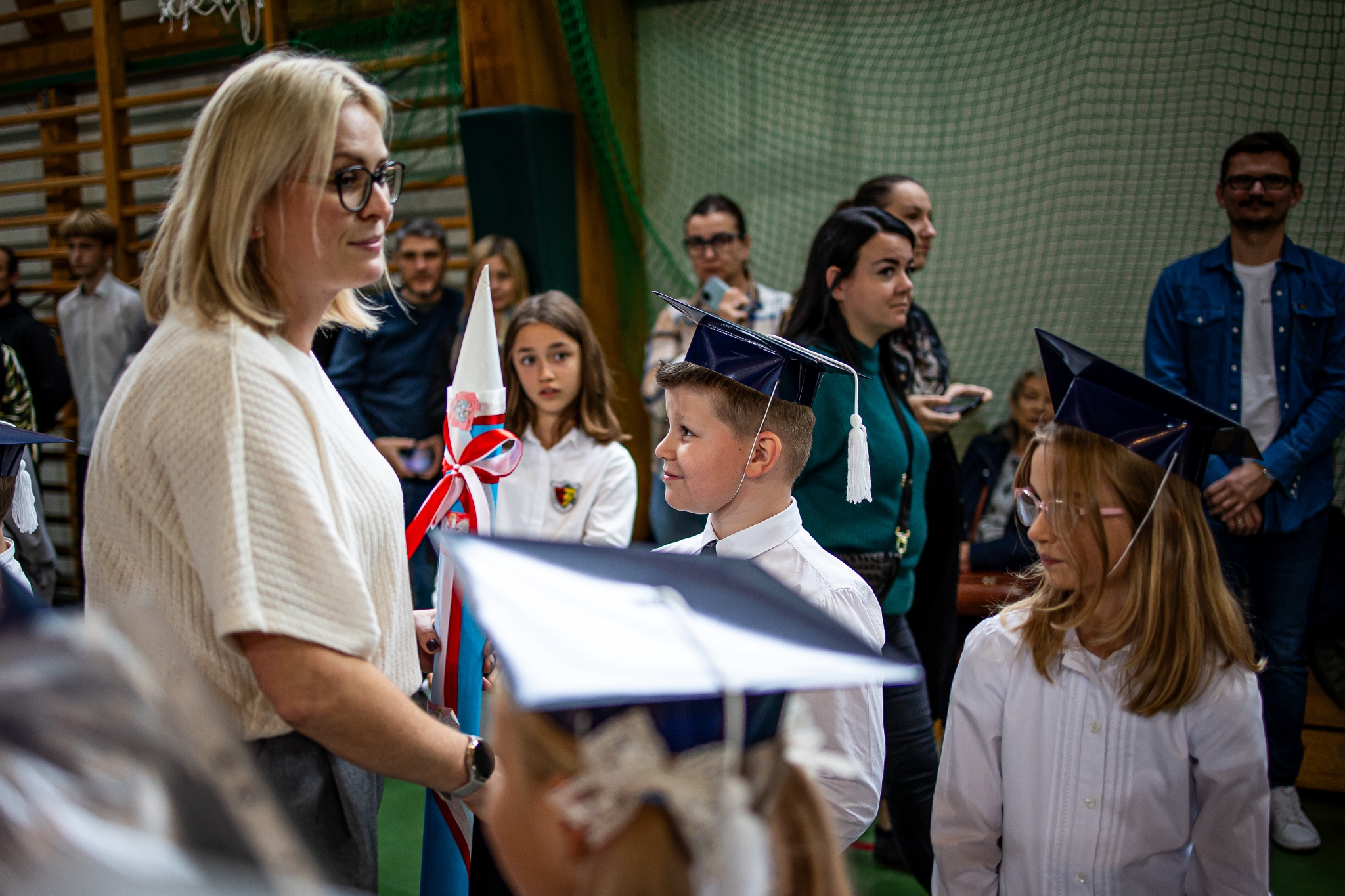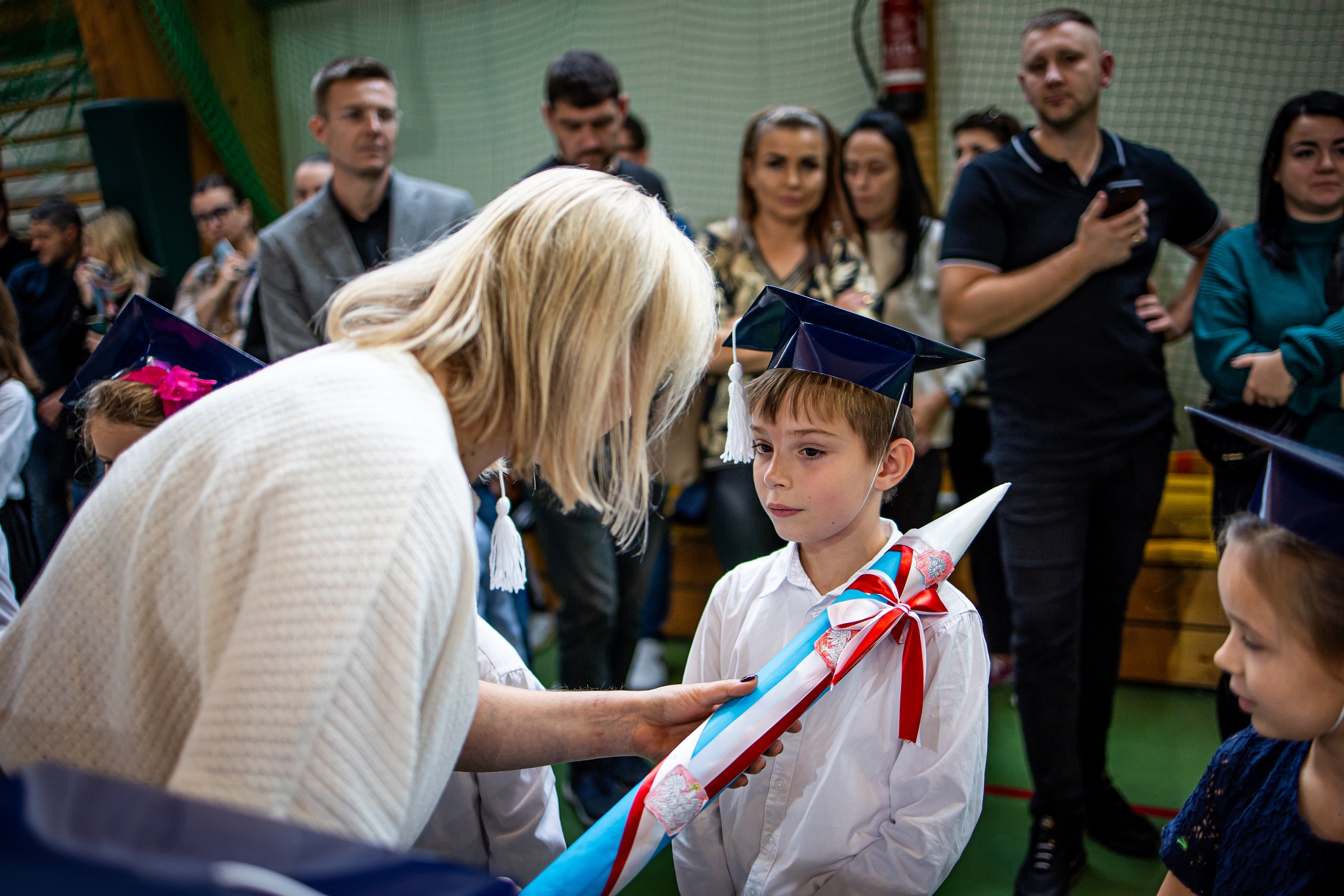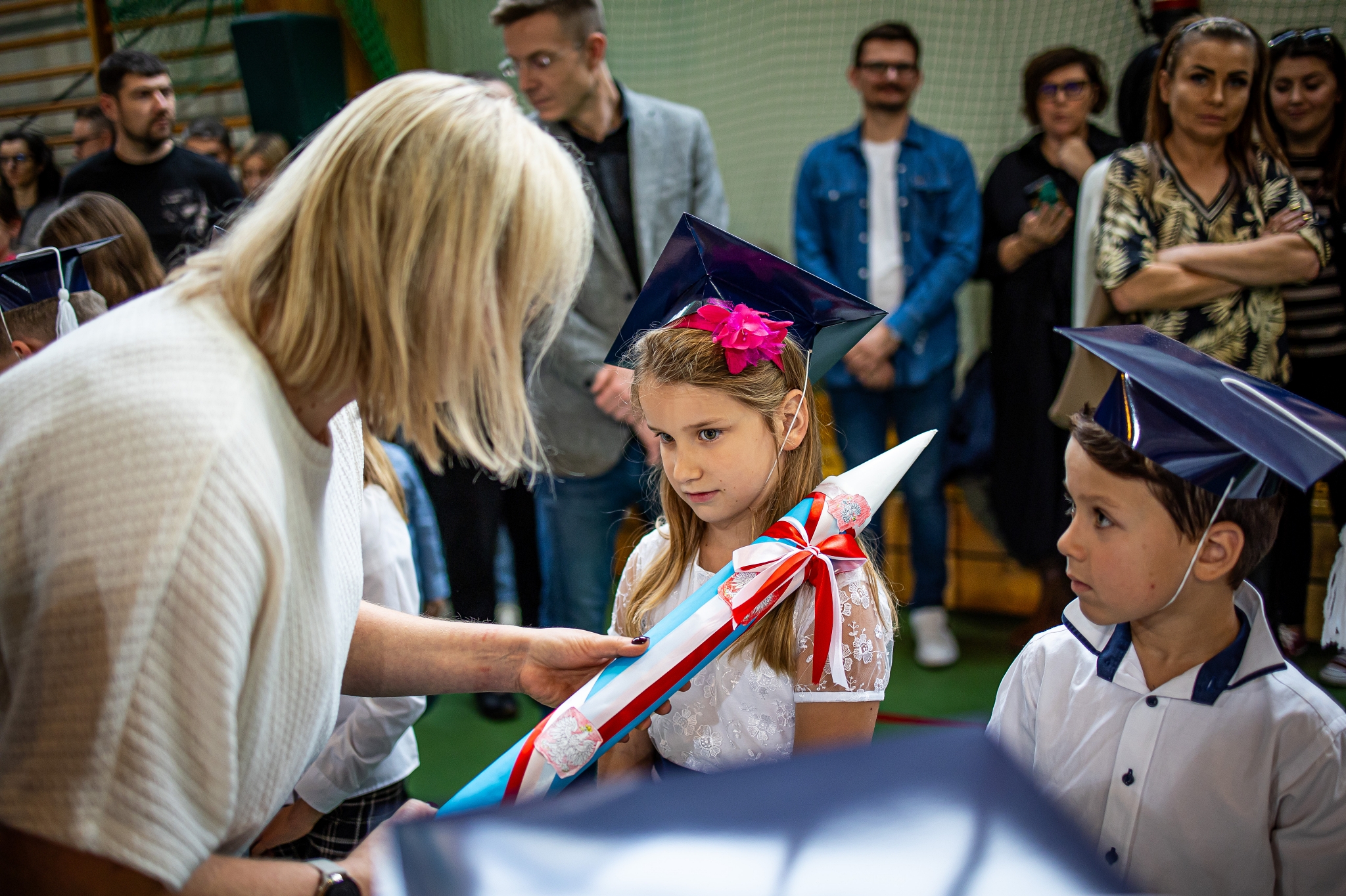 Wszystkie dzieci były skupione i wspaniale prezentowały się w stroju galowym oraz uczniowskich biretach.