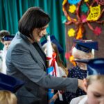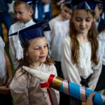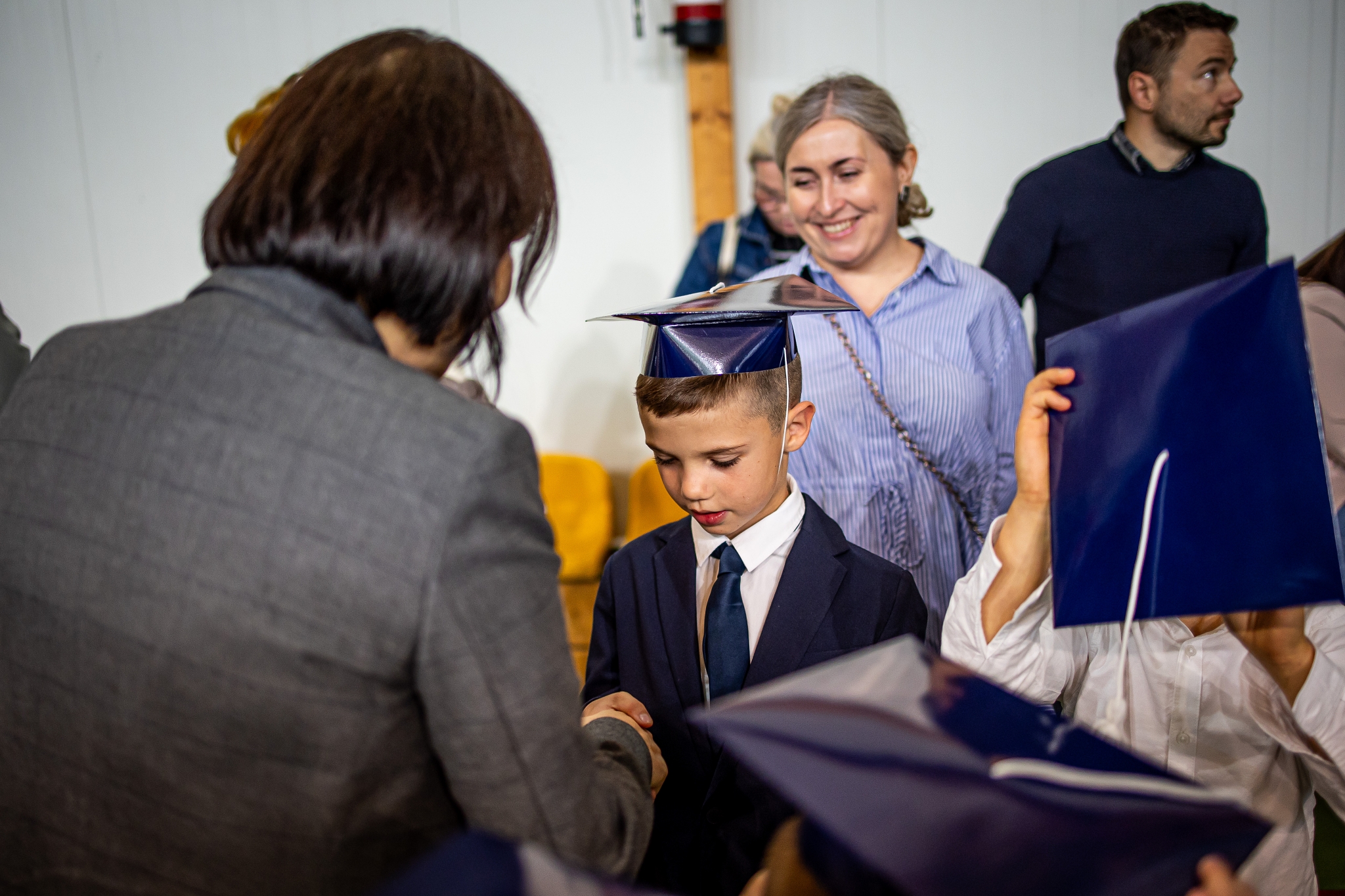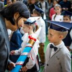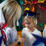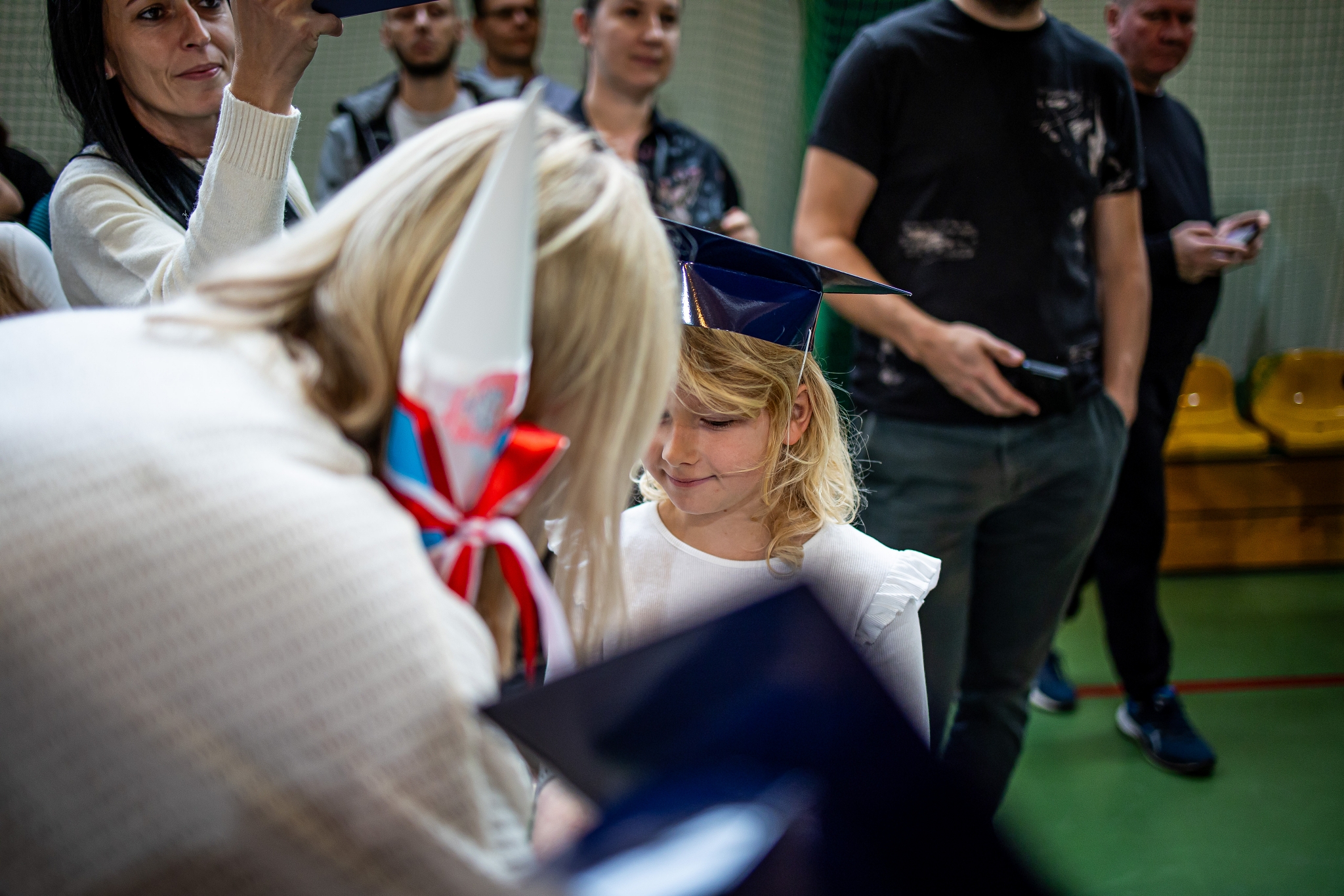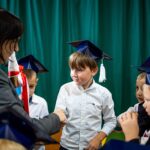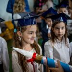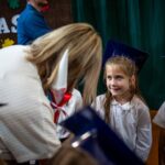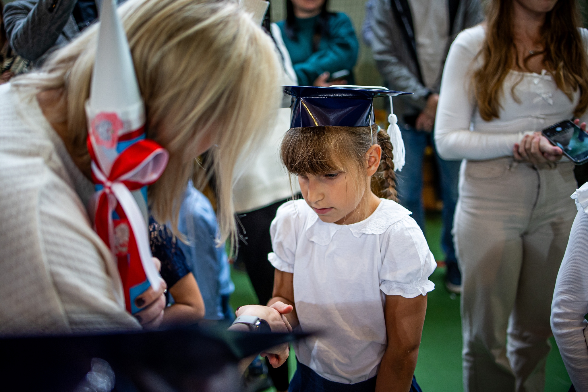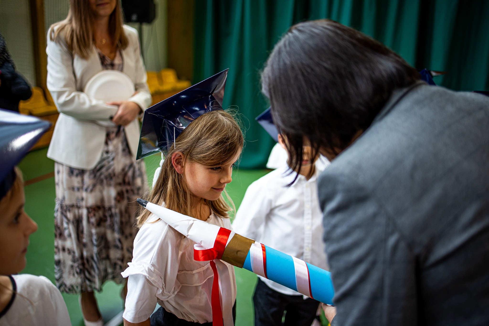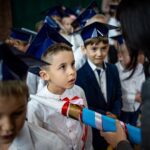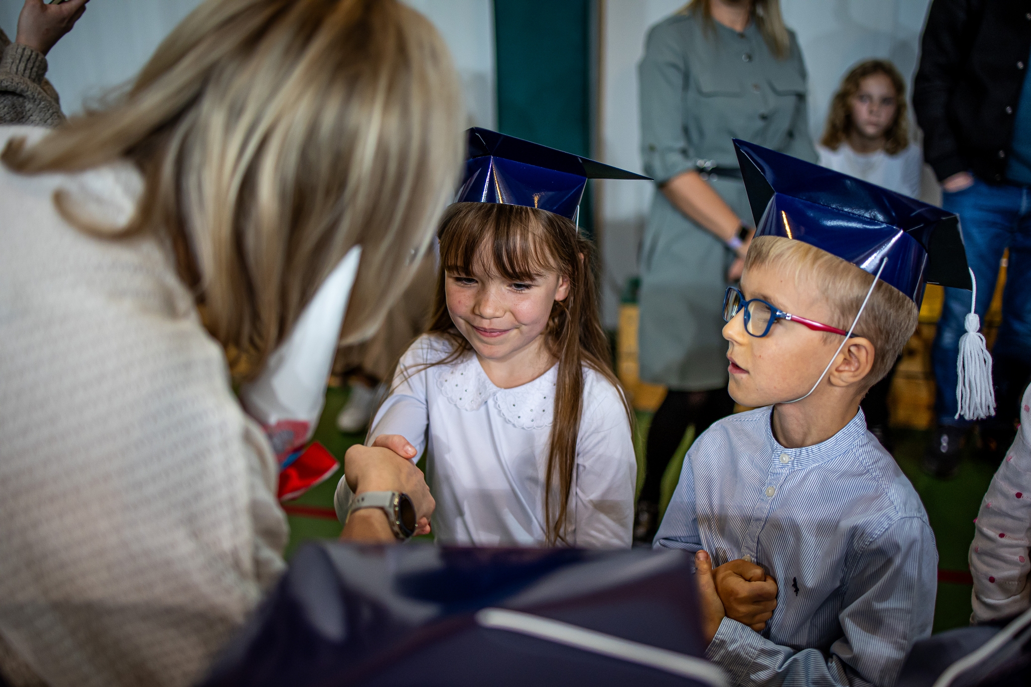 Wszystkie dzieci były skupione i wspaniale prezentowały się w stroju galowym oraz uczniowskich biretach.