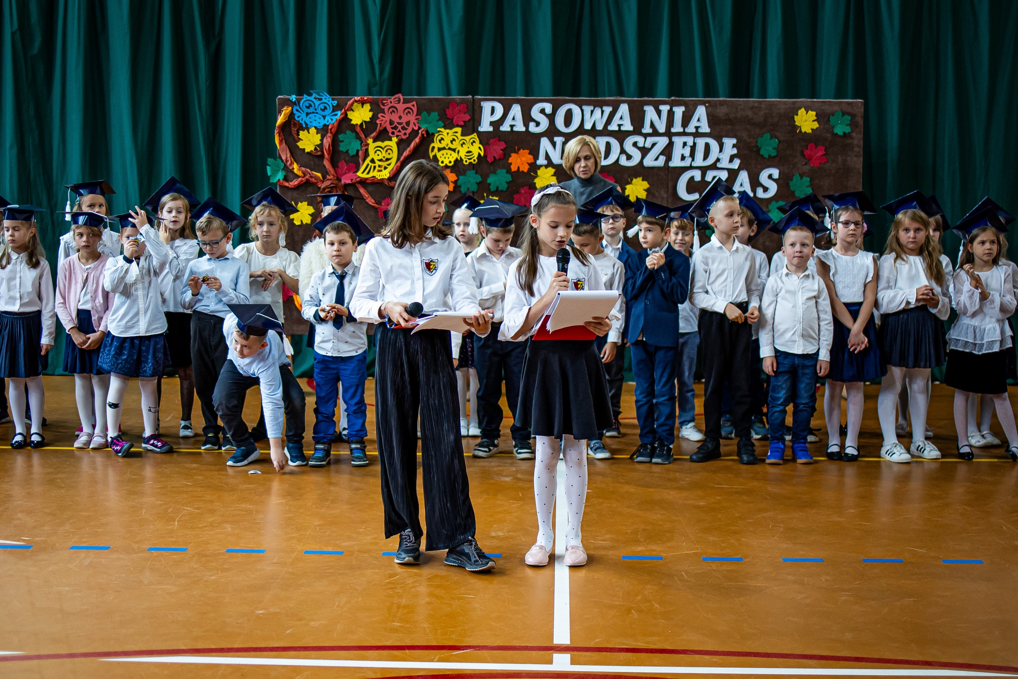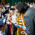 11 października 2024r odbyła się w naszej szkole uroczystość pasowania na ucznia. Jest to szczególny dzień, który na bardzo długo pozostanie w pamięci każdego ucznia klasy pierwszej. W tym dniu dzieci oficjalne zostały przyjęte do grona uczniów szkoły. Podczas uroczystości pierwszoklasiści pokazali, że potrafią pięknie śpiewać, recytować wiersze oraz tańczyć. Po części artystycznej nastąpił długo oczekiwany moment, uczniowie złożyli ślubowanie. Pierwszaki głośno i z przekonaniem przyrzekały być dobrymi i pilnymi uczniami oraz rzetelnie wypełniać swoje obowiązki. Po ślubowaniu każdy z pierwszoklasistów dostąpił zaszczytu pasowania na ucznia dokonanego symbolicznym ołówkiem przez Panią dyrektor Magdalenę Kochan- Nowik oraz wicedyrektor Magdalenę Zatoń.