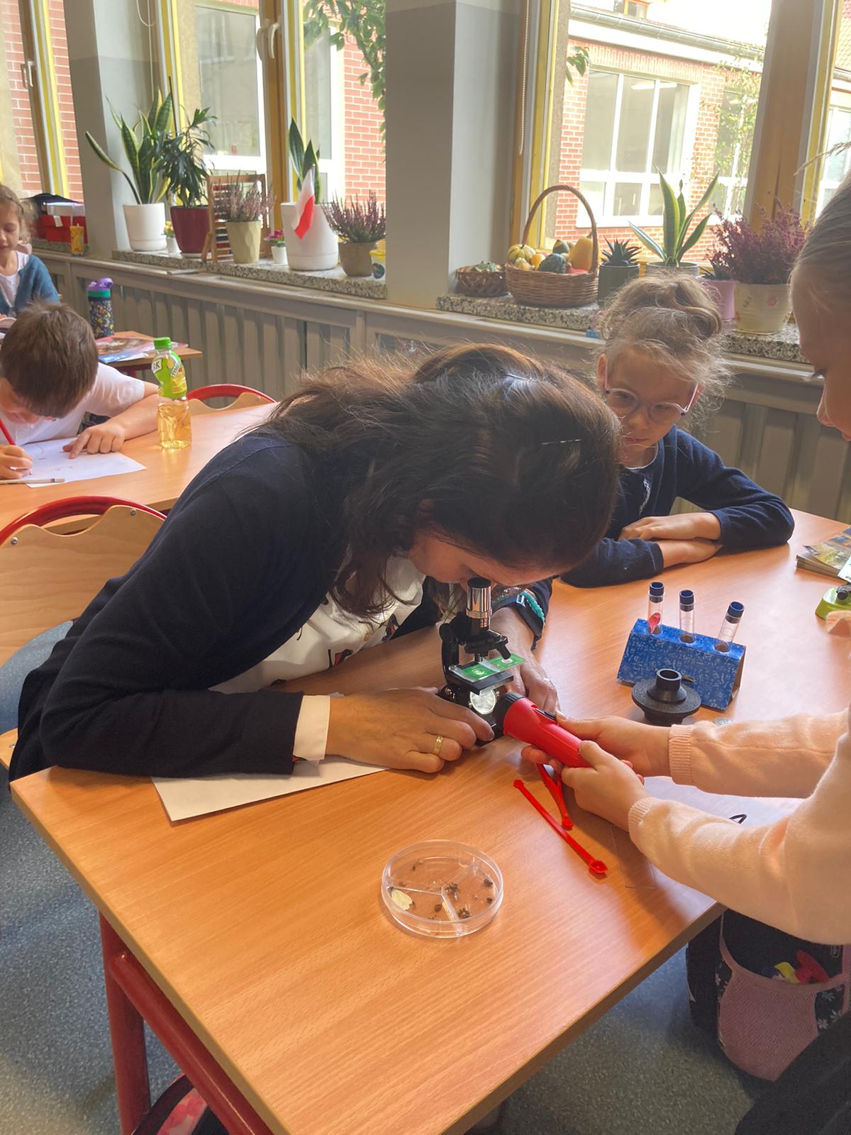 11 października w klasie 3a uczniowie prowadzili lekcje. Była lekcja matematyki razem z kartkówką:), przyroda – obserwacja owadów pod mikroskopem, historia ,,II wojna światowa” oraz biologia – budowa krowy. Zajęcia były bardzo twórcze i ciekawe, a zaangażowanie uczniów zadowalające. Będziemy te lekcje powtarzać. Kto wie, może za parę lat ktoś już naprawdę będzie nauczycielem.