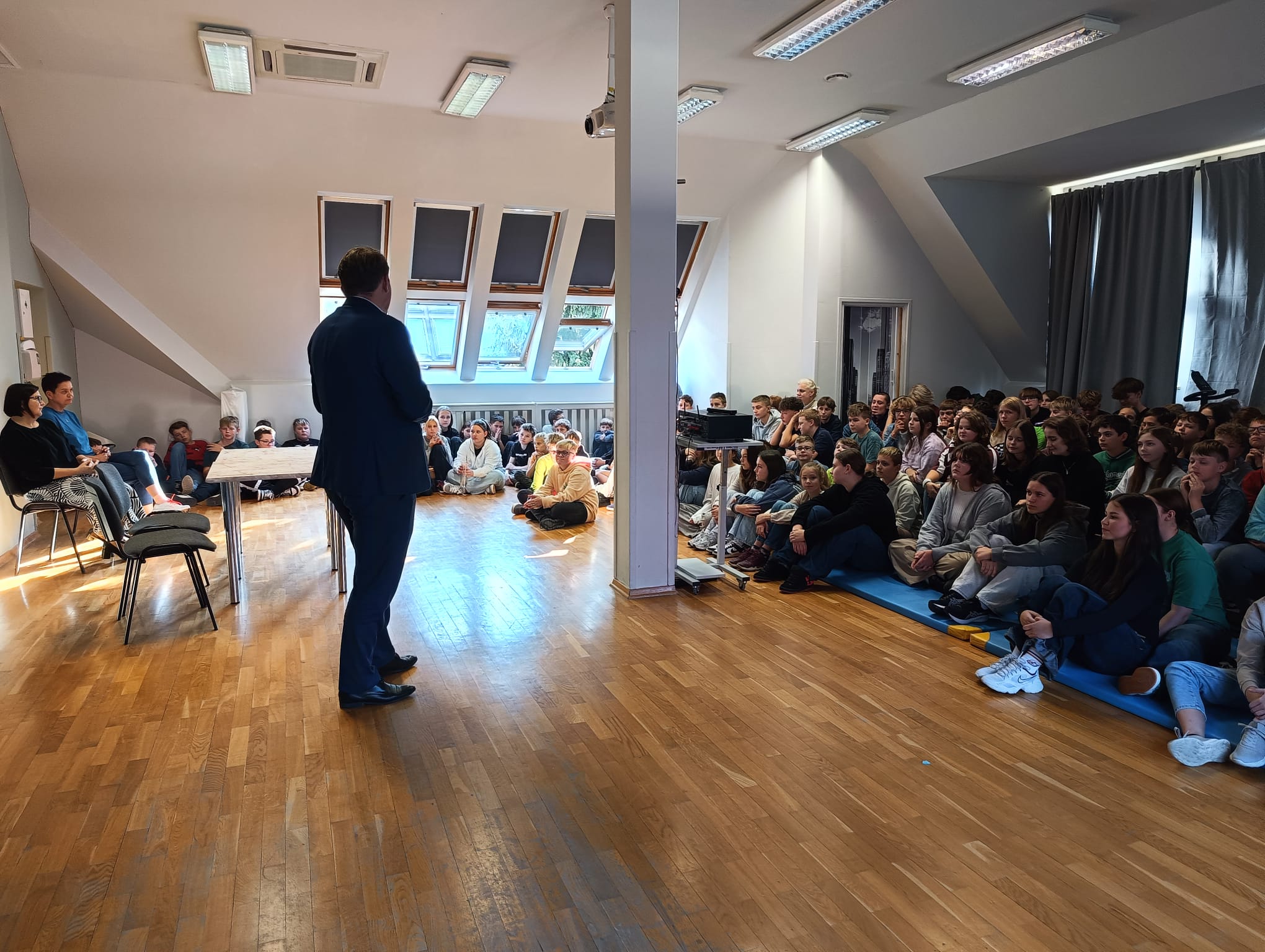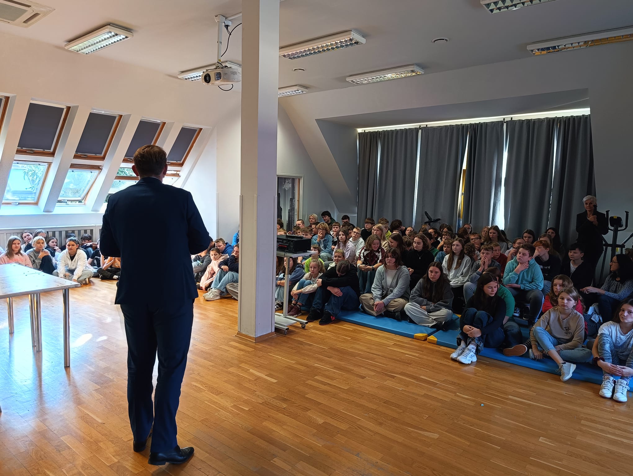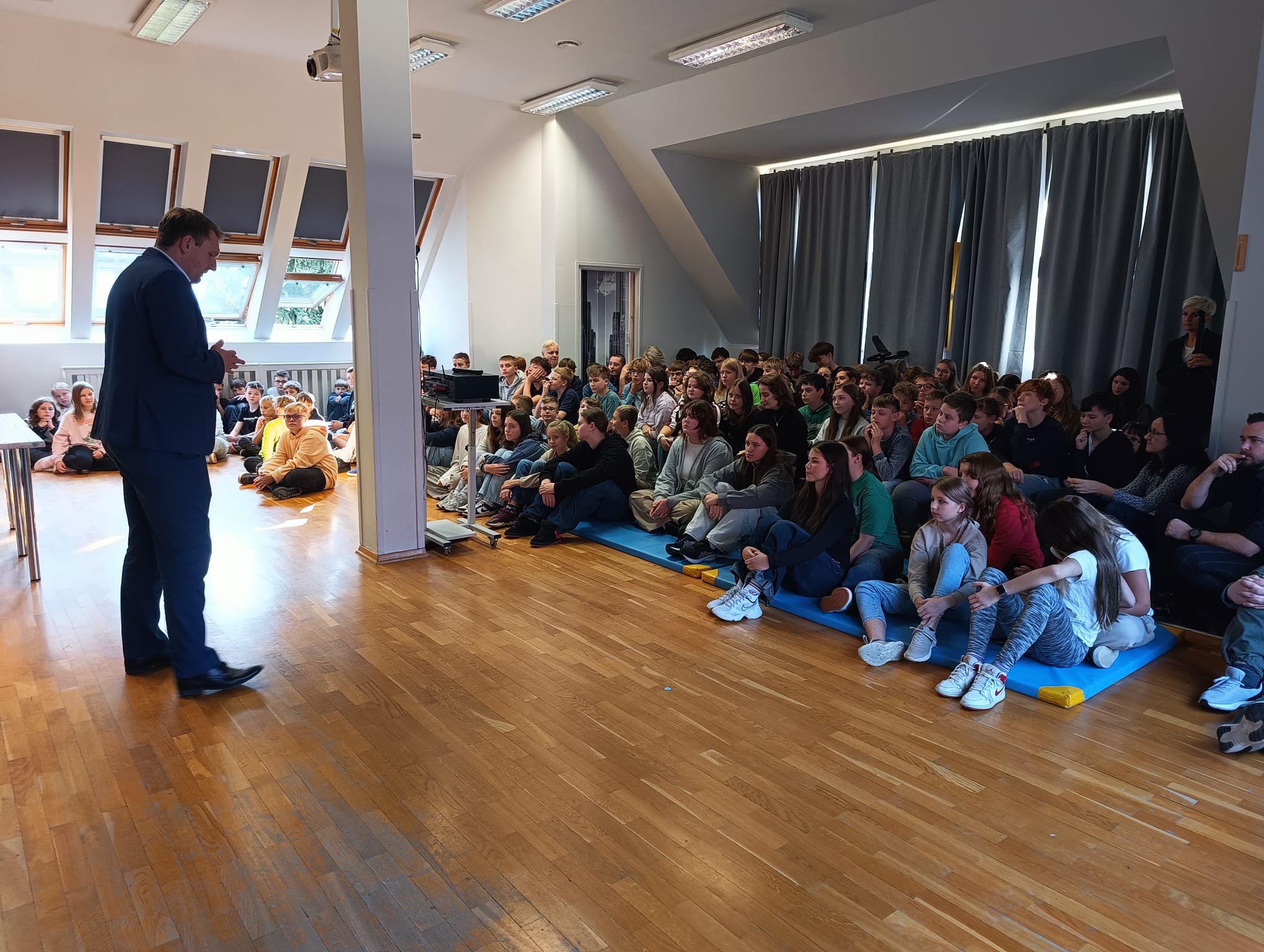 W dniu dzisiejszym (16.10.2024r.) naszą szkołę odwiedził Burmistrz Siechnic, Pan Łukasz Kropski. Celem spotkania było zachęcenie uczniów do aktywnego udziału w życiu lokalnej społeczności poprzez kandydowanie do Młodzieżowej Rady Gminy.