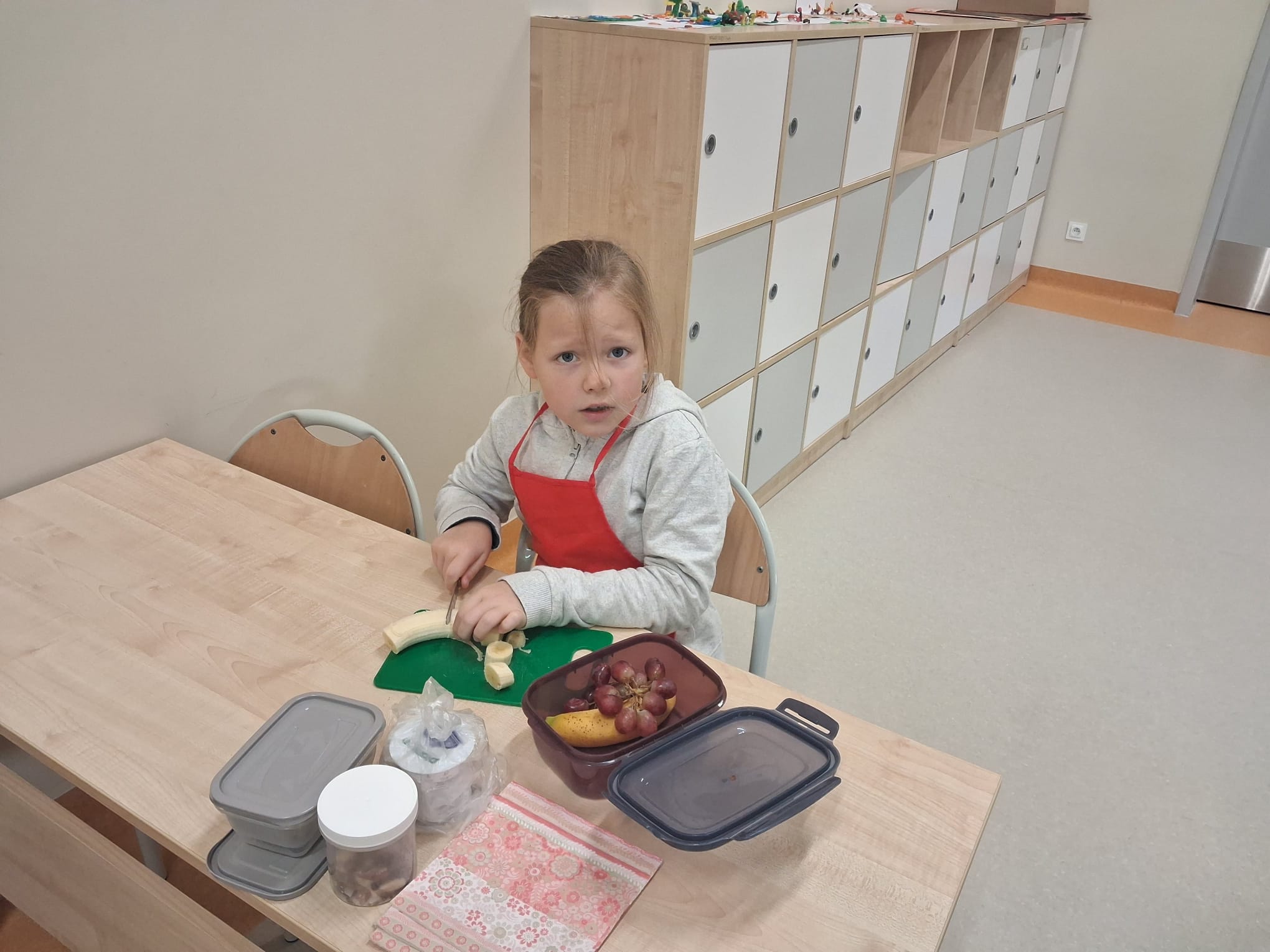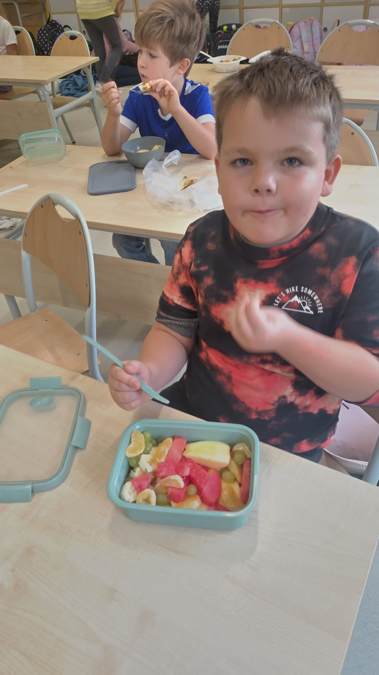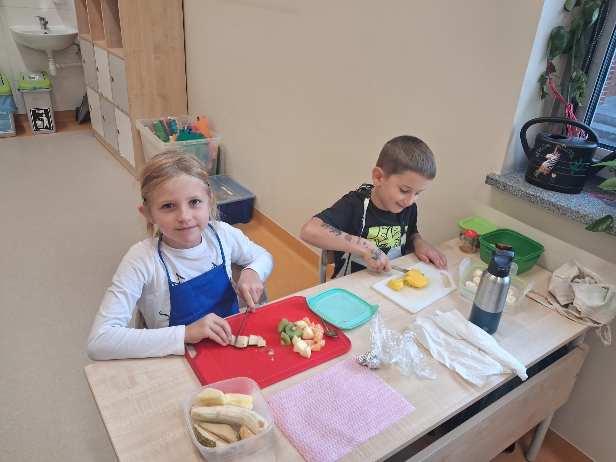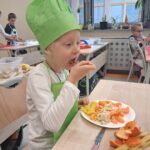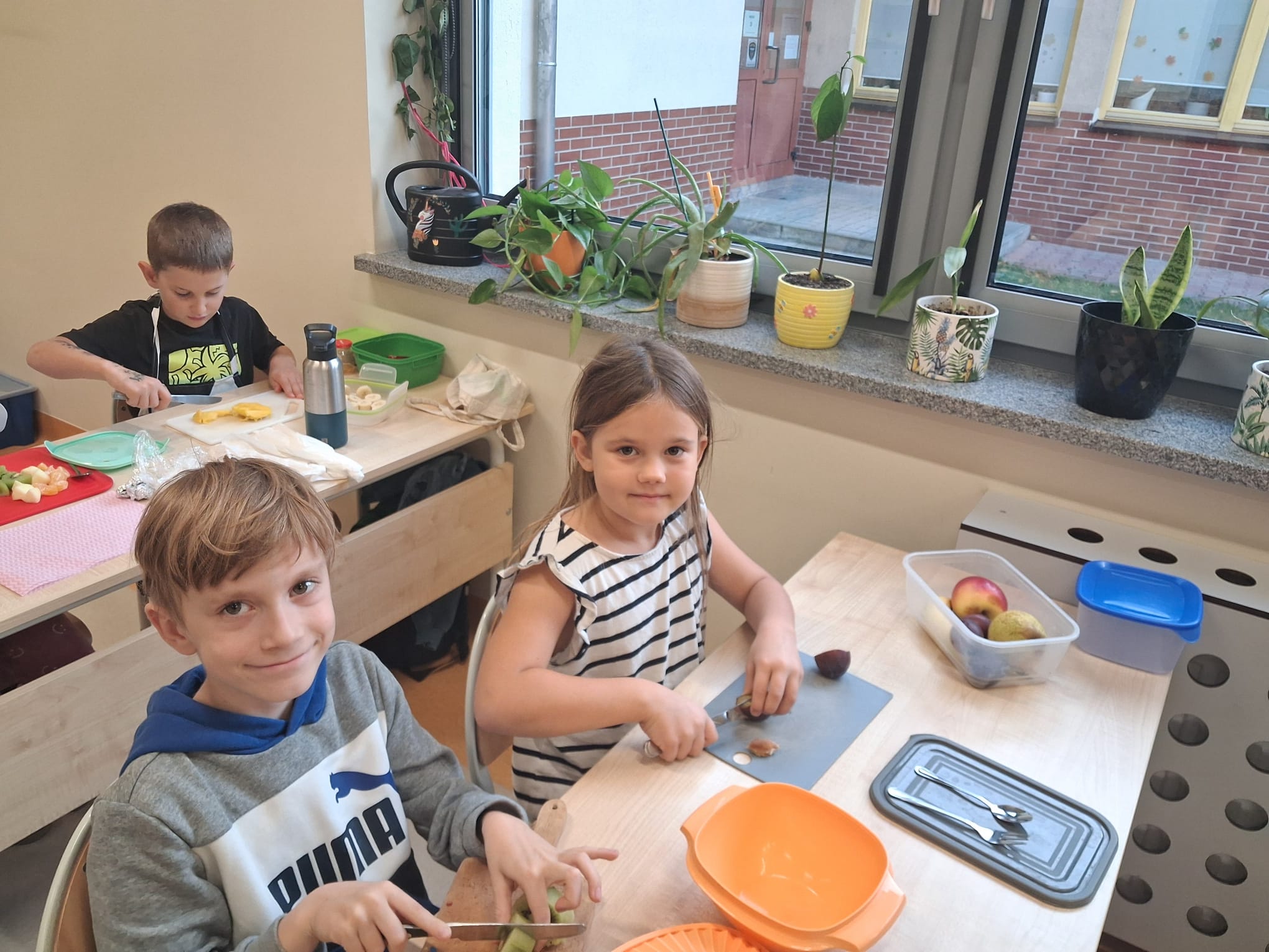 Wiemy, że owoce są smaczne i zdrowe, dostarczają nam witamin, chronią i wzmacniają nasz organizm. Dlatego uczniowie z klasy Ib oraz Id na chwilę zamienili swoje sale w kuchnię i przyrządzali sałatkę owocową. Samodzielnie zrobiona sałatka wszystkim bardzo smakowała – co widać na zdjęciach.