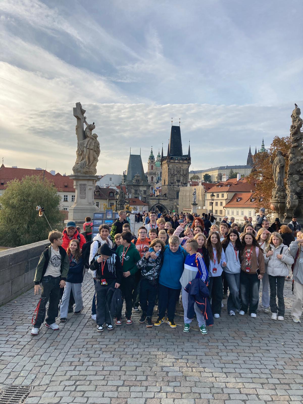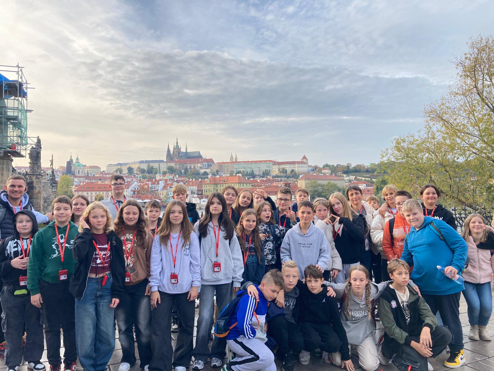 17- 18 października 2024 r. uczniowie szóstych klas uczestniczyli w wycieczce do Pragi. Szóstoklasiści zwiedzanie stolicy Czech z przewodnikiem rozpoczęli od Wzgórza Petrin, gdzie na wierzchołku szczytu wznosi się widoczna z daleka kopia wieży Eiffla – symbol Petřínskiego kopca. Następnie zwiedzali Hradczany – Zamek Praski, Katedra św. Wita, Ogrody Królewskie, Plac Małostrański, Kościół św. Mikołaja, Most Karola. Kolejnego dnia udali się do Narodowego Muzeum Techniki w Pradze. Tam czekały na nich zabytkowe samochody i samoloty, zbiory z dziedziny architektury czeskiej, budownictwa i designu, poligrafii, fotografii oraz astronomii. Wśród eksponatów uczniowie znaleźli prawdziwe unikaty, na przykład przyrządy astronomiczne z XVI wieku, których używał duński astronom Tycho Brahe (1546-1601), pierwszy czechosłowacki samochód, jeden z najstarszych dagerotypów na świecie i wiele innych ciekawostek. Po muzeum uczestnicy wycieczki udali się na godzinny rejs statkiem po Wełtawie. Wycieczkę uczniowie zakończyli zwiedzając Rynek Staromiejski, Ratusz z Zegarem Orloj, Vaclavske Namesti oraz Dzielnicę Żydowska. Mimo długich godzin zwiedzania, wszyscy szczęśliwi i pełni wrażeń wrócili do domu.
