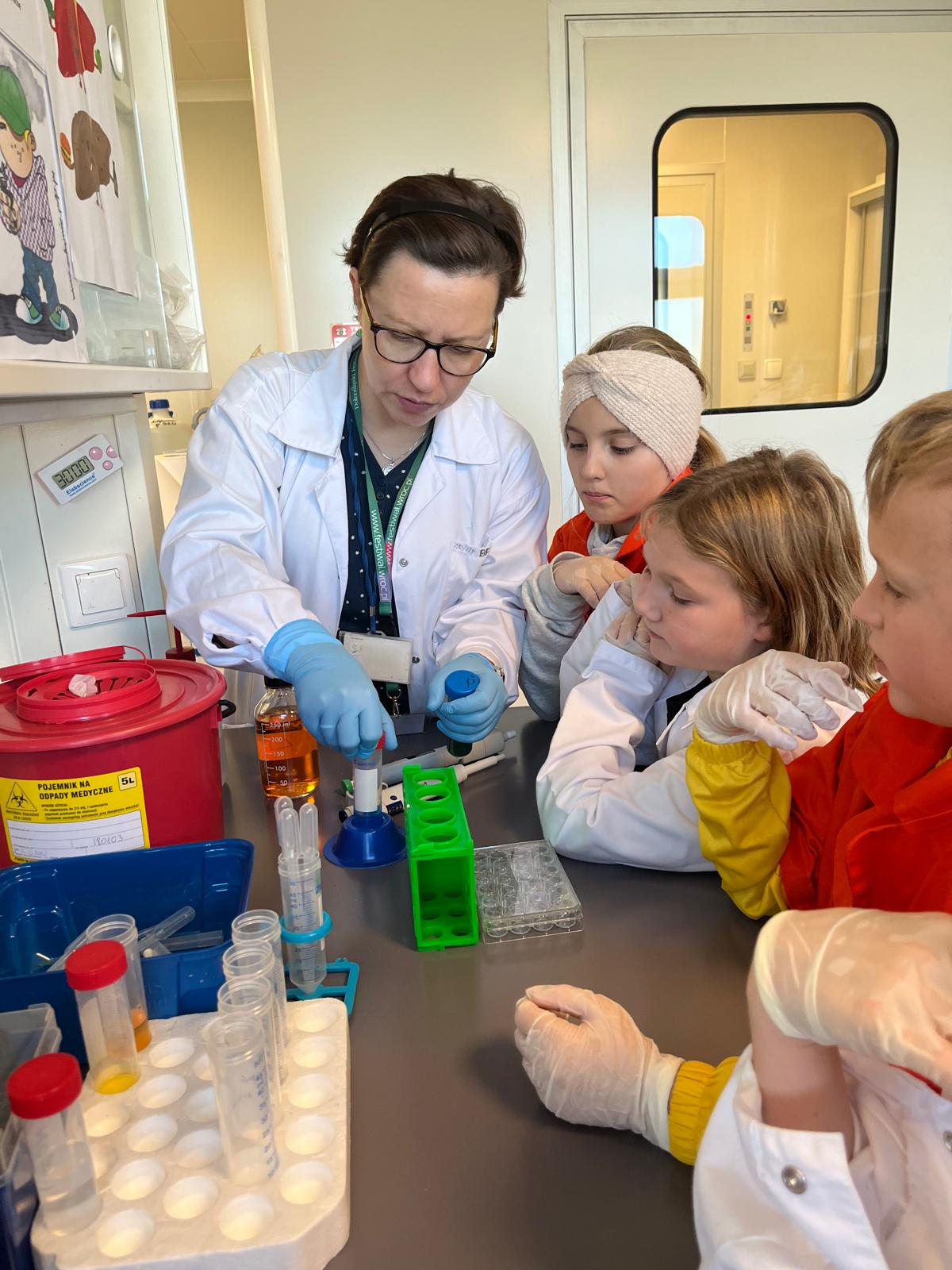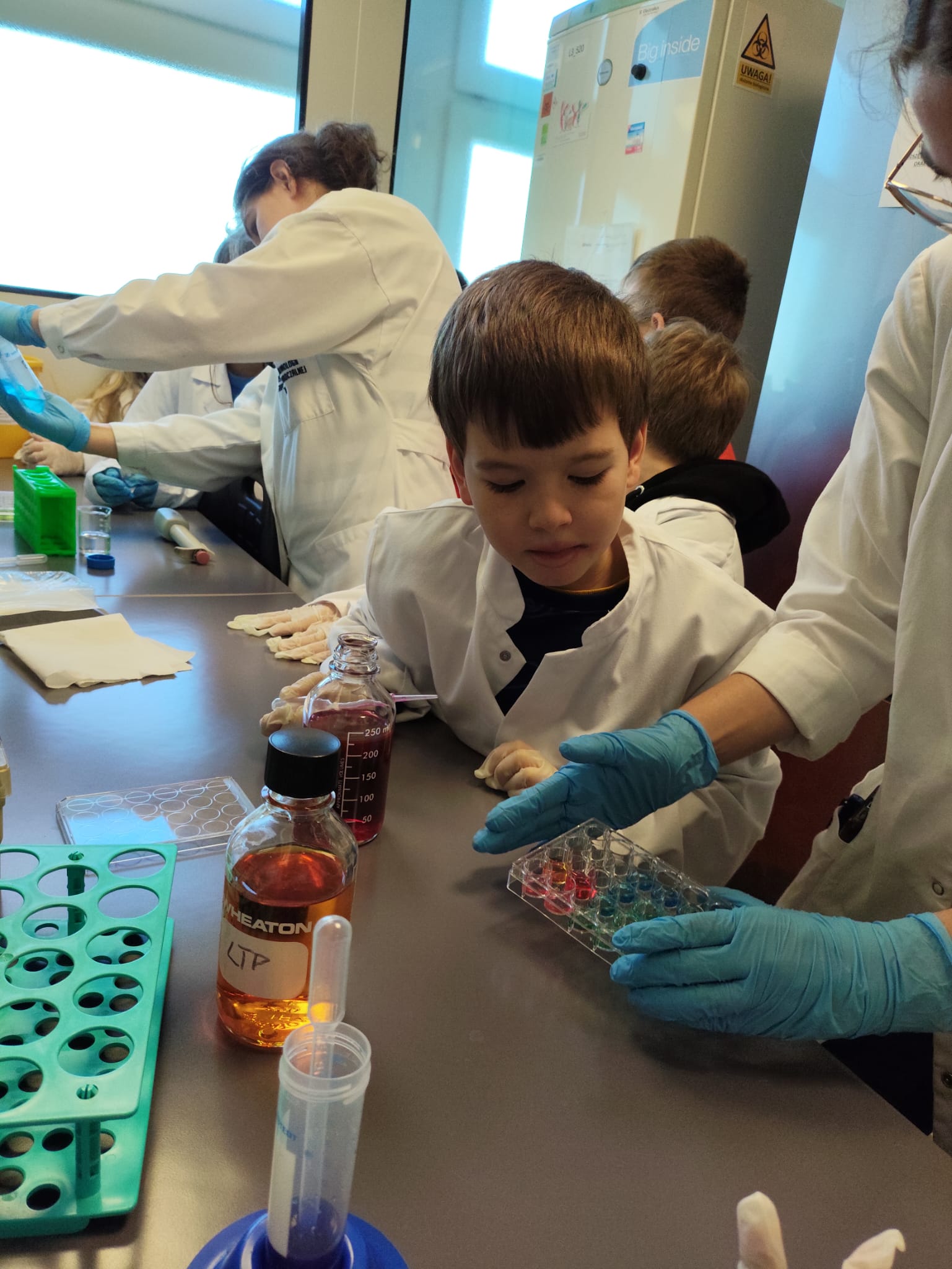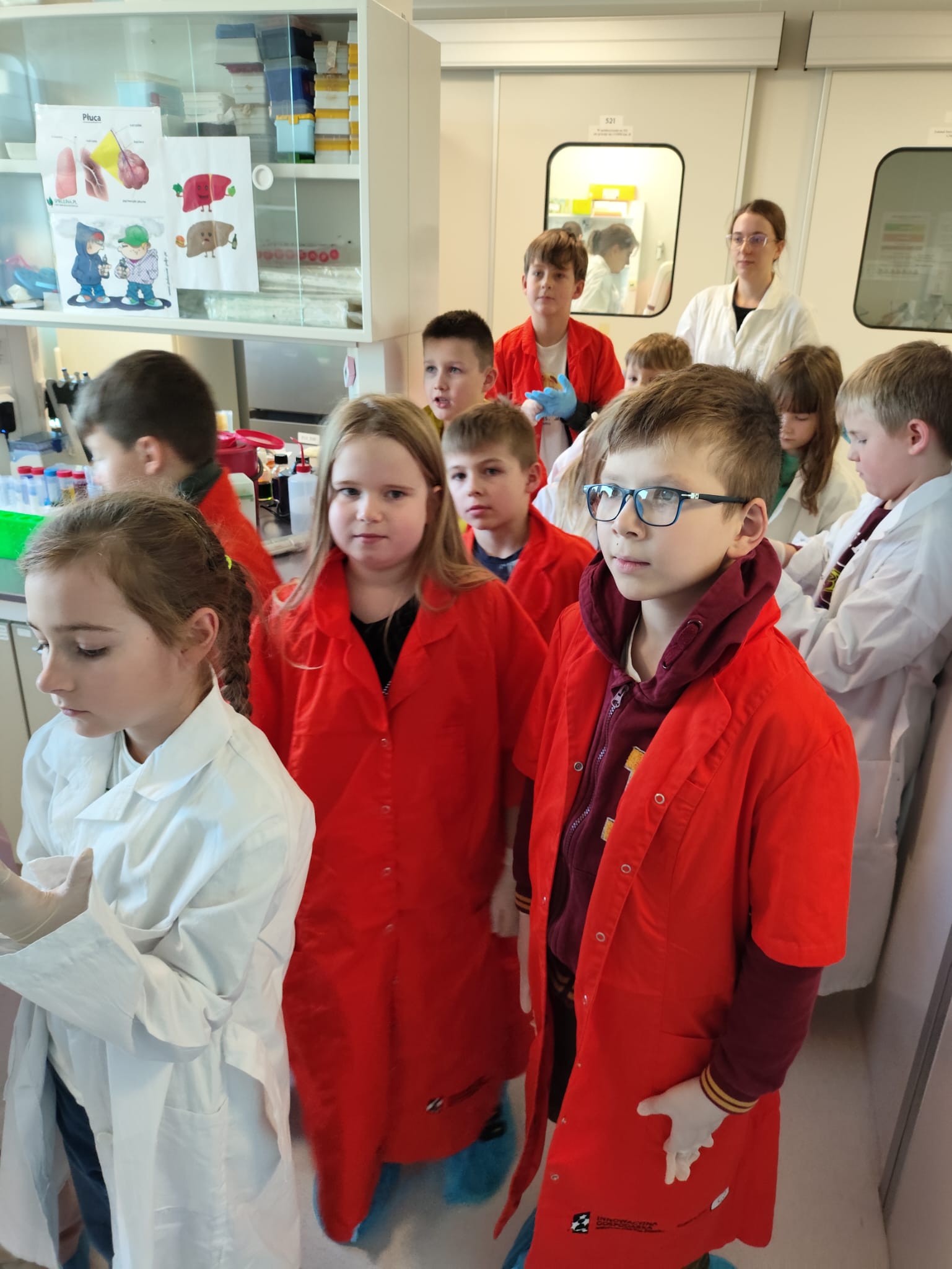 20 października 2024 r. uczniowie klasy 2a wzięli udział w wycieczce do wrocławskiego Instytutu Immunologii i Terapii Doświadczalnej Polskiej Akademii Nauk. Grupa młodych klasowych przyrodników miała okazję obejrzeć sekretne wnętrza kilku pracowni i trochę poeksperymentować. Przepełnione aparaturą i sprzętem badawczym laboratoria wywarły ogromne wrażenie na uczestnikach wycieczki. Dzieci miały okazję wykonać kilka doświadczeń i obejrzeć komórki pod mikroskopem.