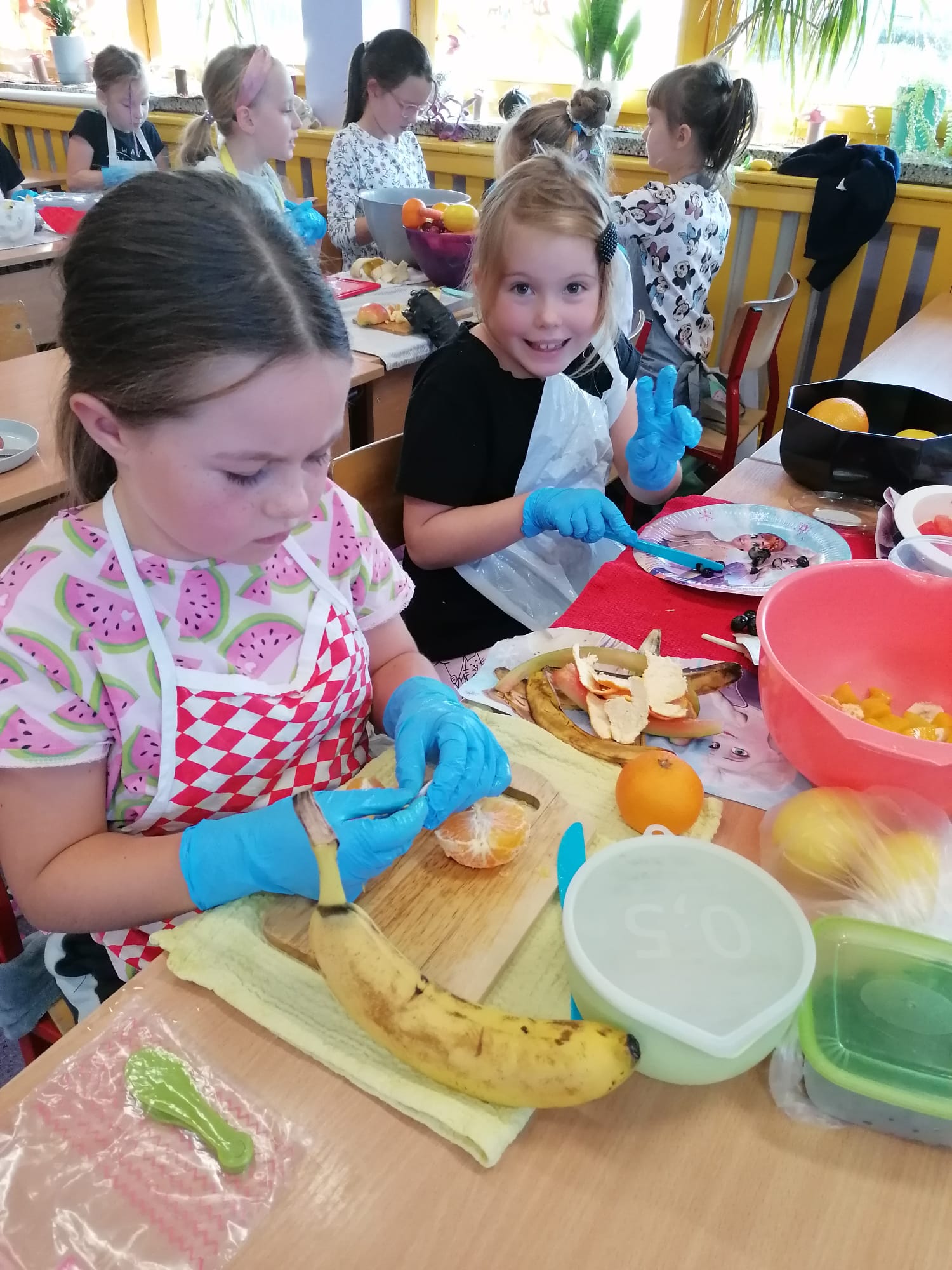 W ubiegłym tygodniu zajęcia świetlicowe odbywały się pod hasłem „Zdrowie może być smakowite”. Nauczyciele świetlicy promowali zdrowy styl życia, właściwe odżywianie, a także zwracali uwagę na ogromną rolę aktywności fizycznej wśród dzieci i młodzieży. Pod hasłem „Zdrowie na talerzu” odbyły się zajęcia kulinarne – dzieci z klasy drugiej robiły sałatkę owocową, lekcje bogate w pogadanki, filmy edukacyjne, które uświadamiały jak ważna jest rola warzyw i owoców w codziennej diecie. Dzieci miały również możliwość zapoznania się z piramidą żywienia i aktywnością fizyczną. Uczniowie brali udział w licznych zajęciach ruchowych na świeżym powietrzu. Dopełnieniem tego zagadnienia było wykonanie zróżnicowanych prac plastycznych dowolną techniką.