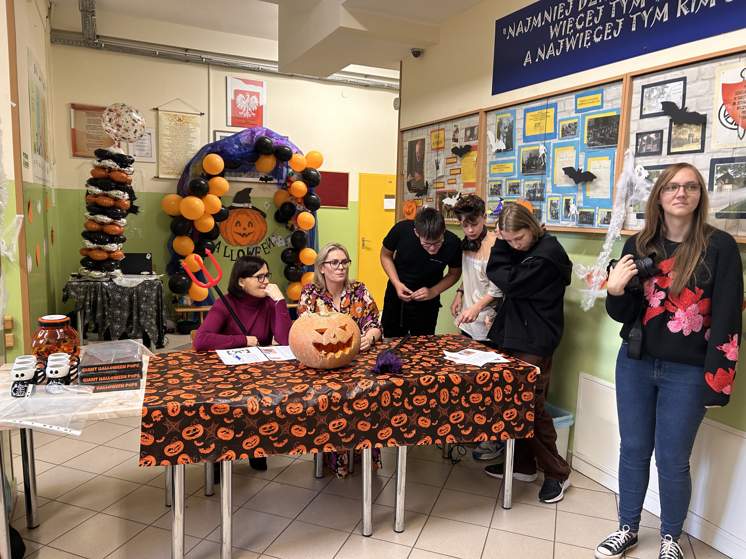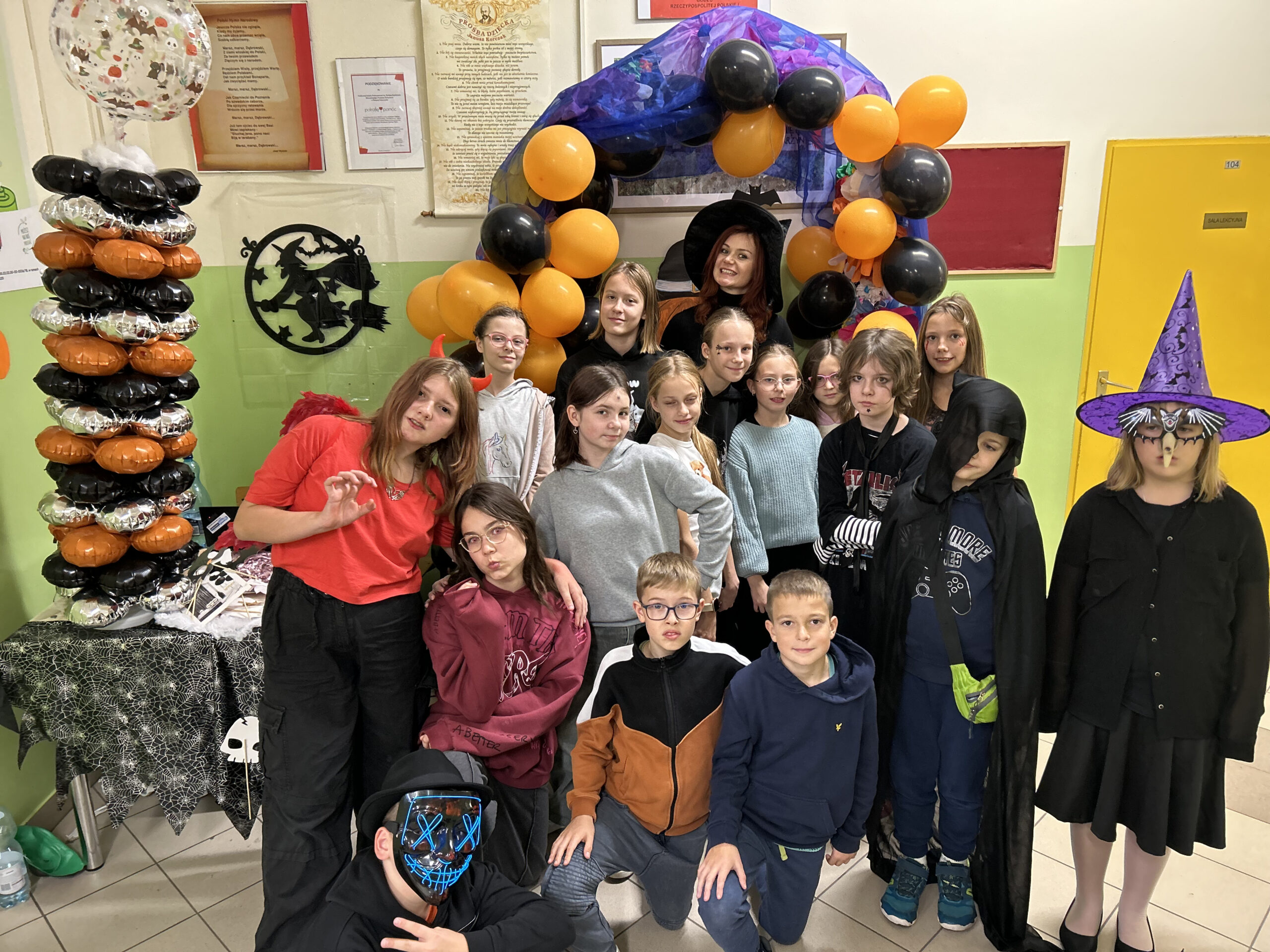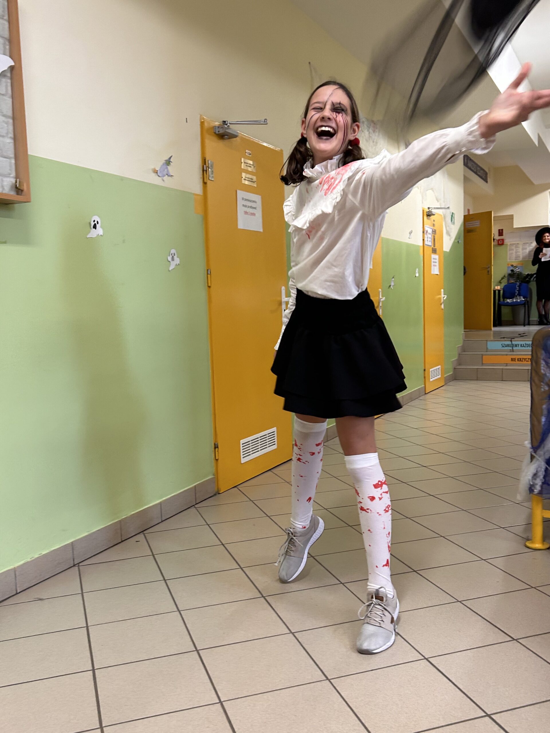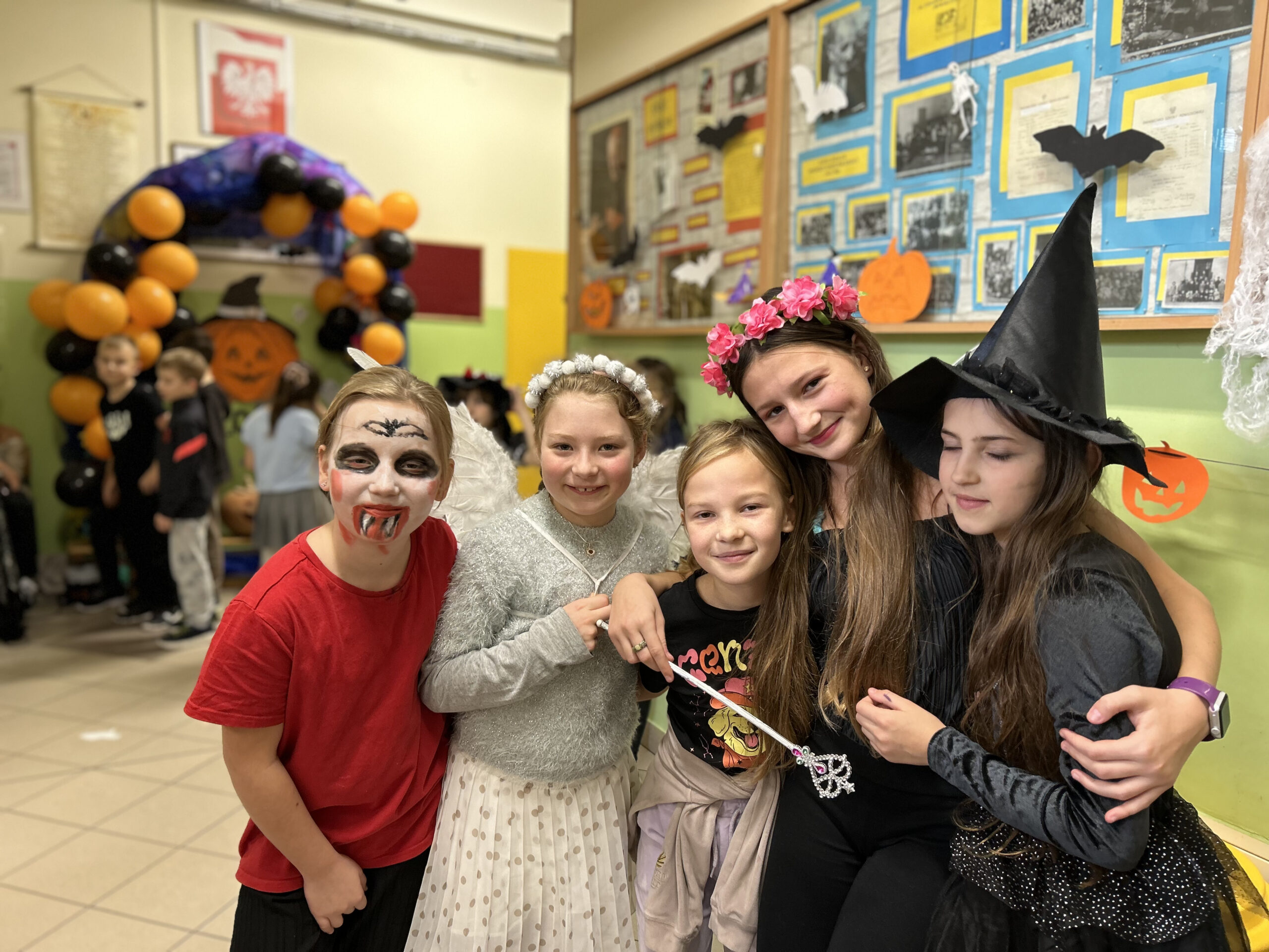 W piątek 31.10 w naszej szkole zrobiło się STRASZNIE fajnie, bo odbyło się Halloween! W ten dzień mali i duzi mogli się przebrać, więc korytarze szkolne zaroiły się od różnych stworów i potworów. Wszyscy bawili się świetnie przy wtórze muzyki puszczanej przez niezastąpionych Djów- Wojtka i Mikołaja z 7b. Ten wyjątkowy dzień zakończył się pokazem mody i konkursem na najlepszy Hallowenowy strój. Jury miało trudne zadanie, bo stroje były bardzo oryginalne i kreatywne. Po intensywnych obradach, jury postanowiło przyznać wyróżnienia następującym osobom: