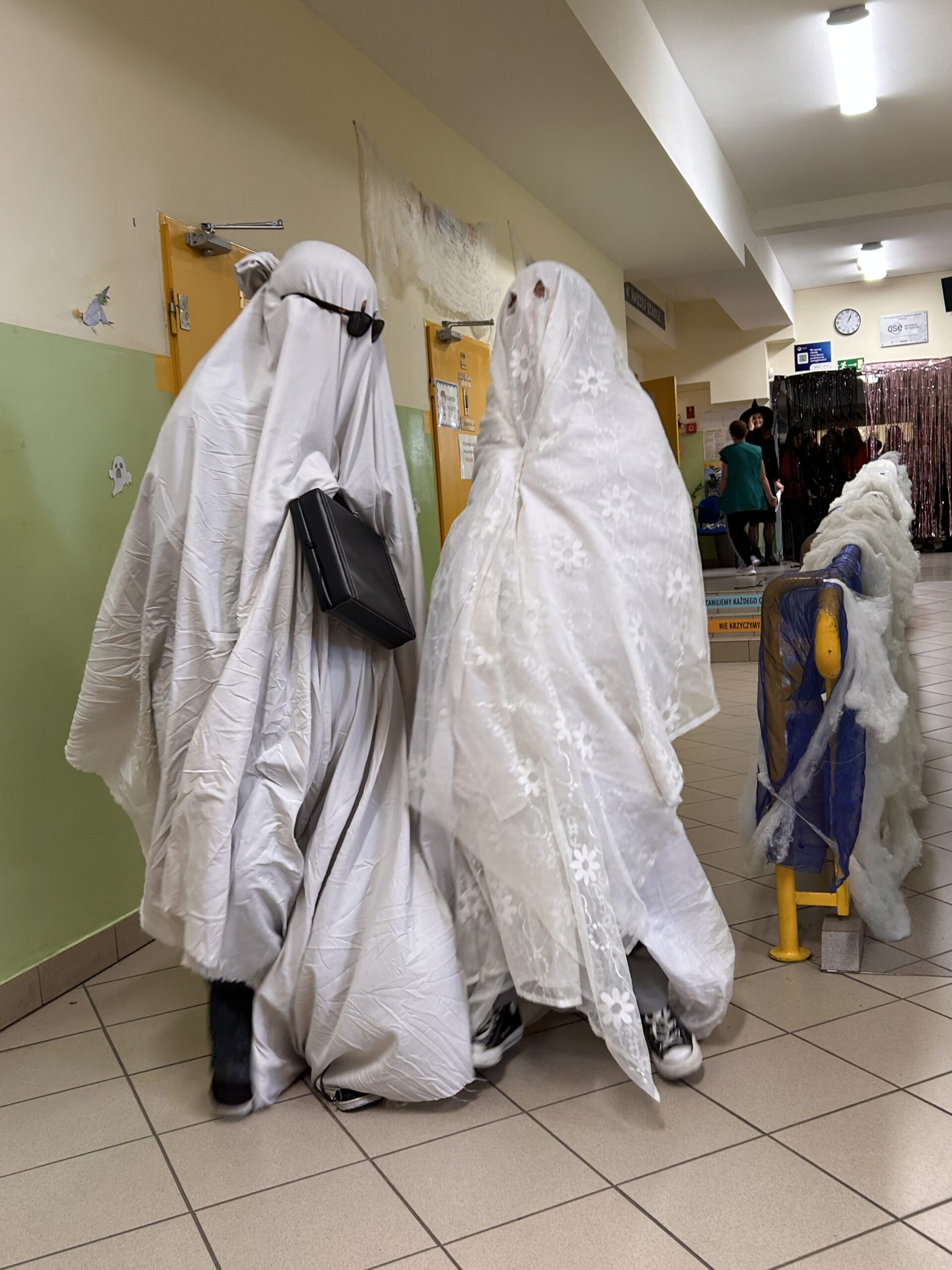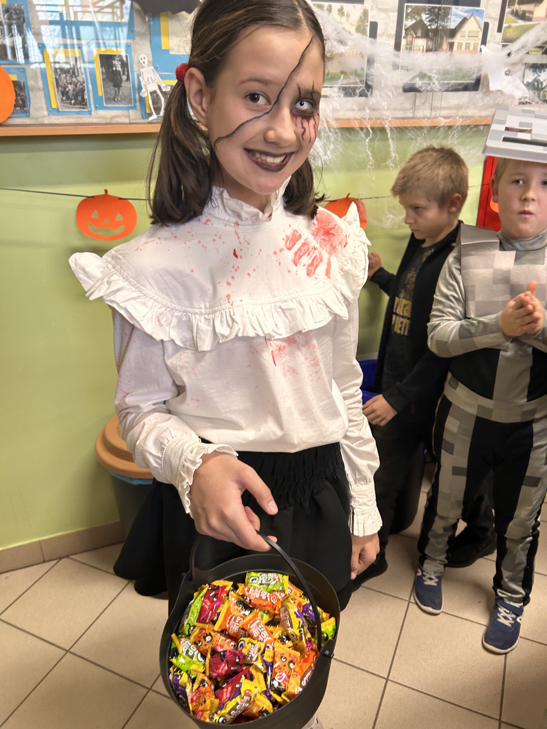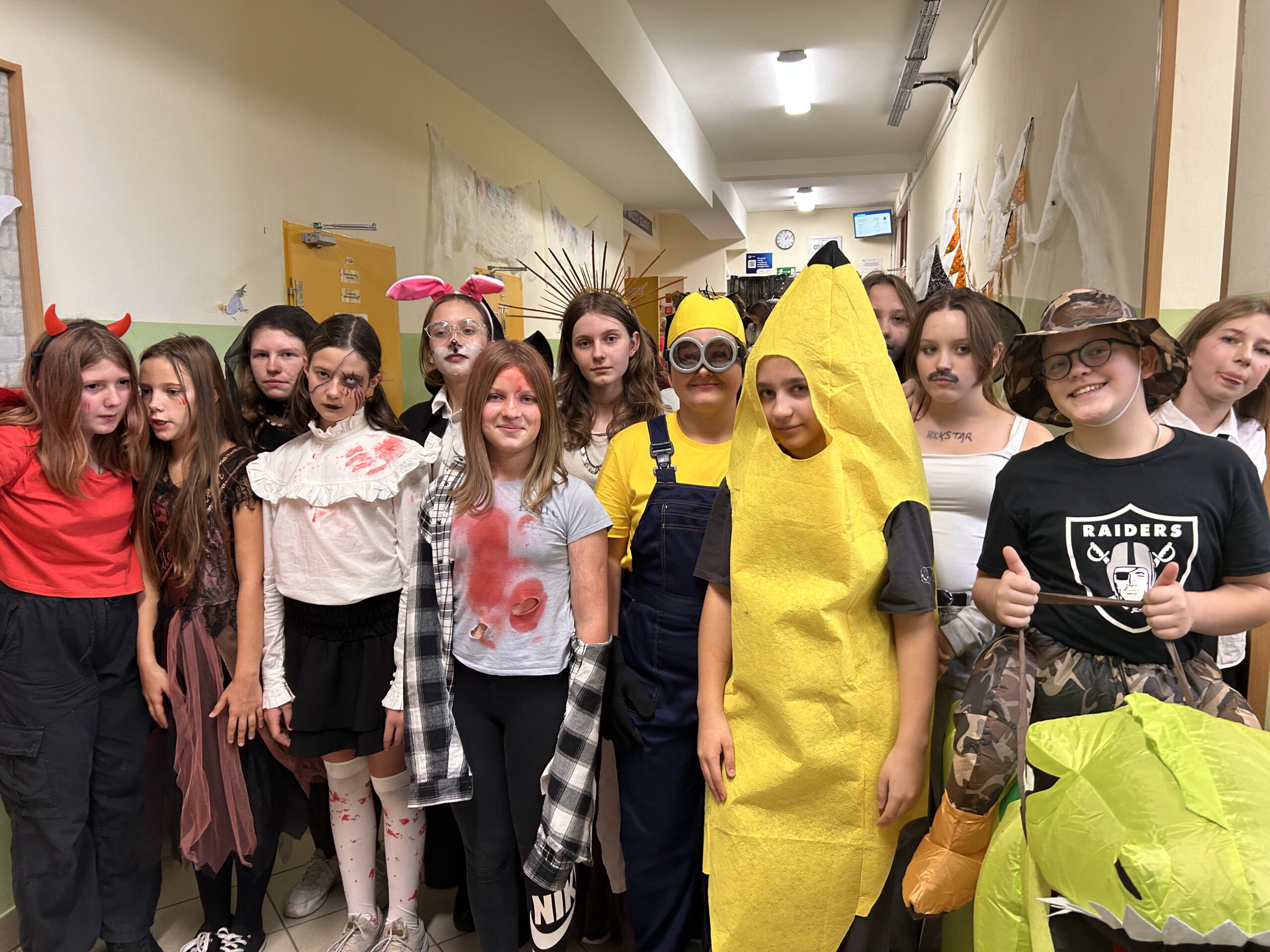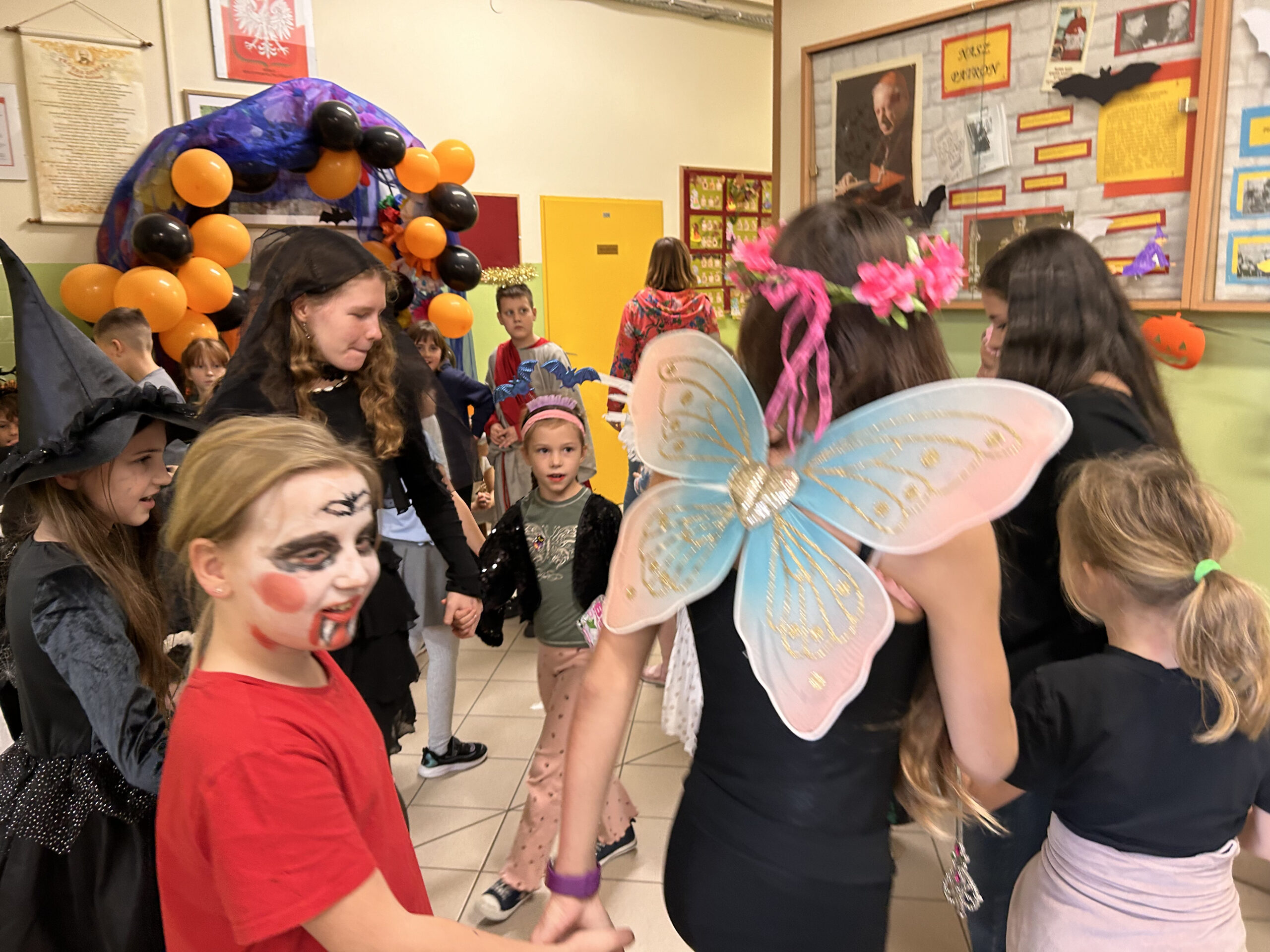 W piątek 31.10 w naszej szkole zrobiło się STRASZNIE fajnie, bo odbyło się Halloween! W ten dzień mali i duzi mogli się przebrać, więc korytarze szkolne zaroiły się od różnych stworów i potworów. Wszyscy bawili się świetnie przy wtórze muzyki puszczanej przez niezastąpionych Djów- Wojtka i Mikołaja z 7b. Ten wyjątkowy dzień zakończył się pokazem mody i konkursem na najlepszy Hallowenowy strój. Jury miało trudne zadanie, bo stroje były bardzo oryginalne i kreatywne. Po intensywnych obradach, jury postanowiło przyznać wyróżnienia następującym osobom: