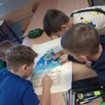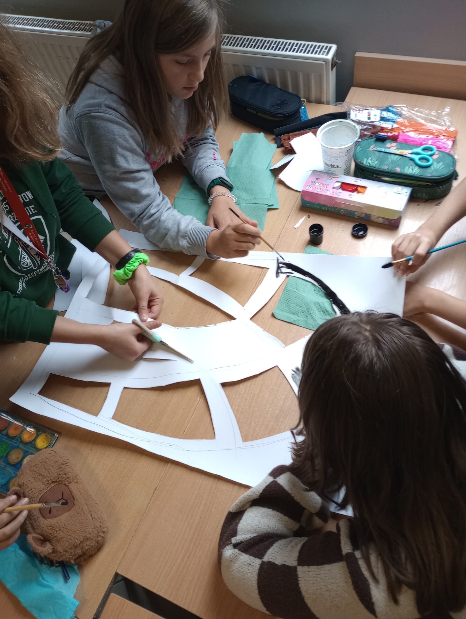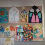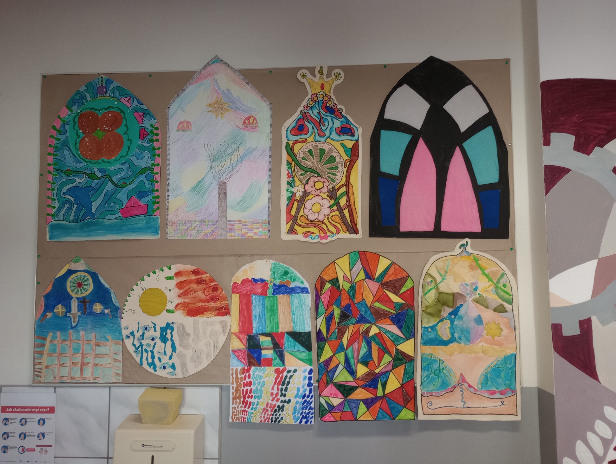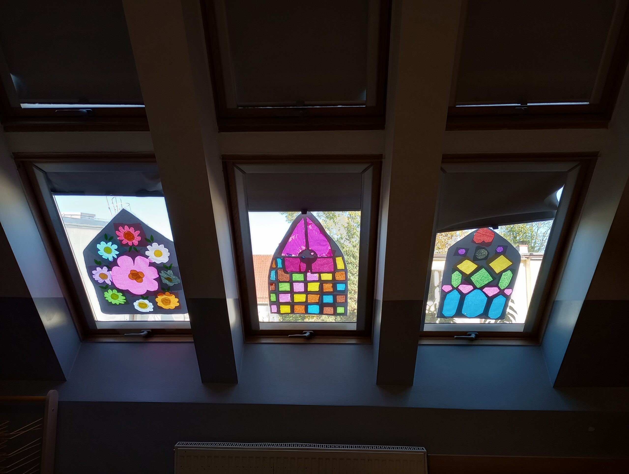 Uczniowie klas piątych realizowali temat związany z omawianym na lekcjach plastyki stylem gotyckim. Wykonane przez nich prace dekorują klasę. Piękne projekty gotyckich okien to efekt pracy grupowej, która uczy współpracy, podziału zadań oraz integruje uczestników.