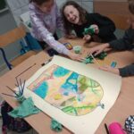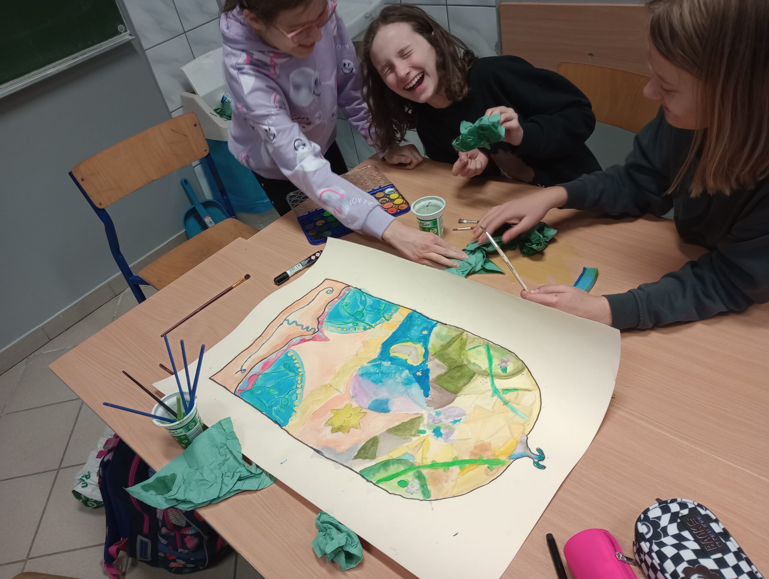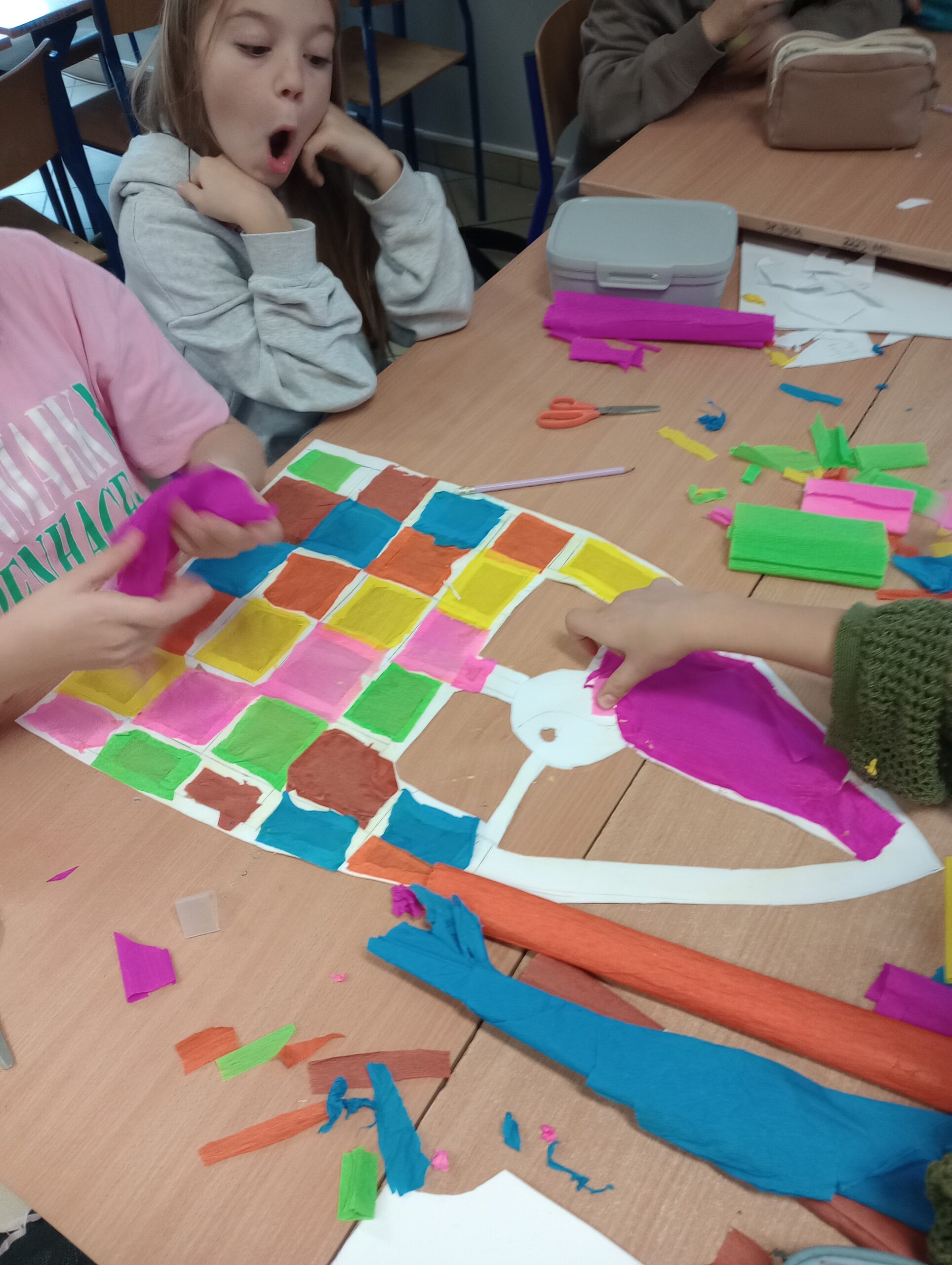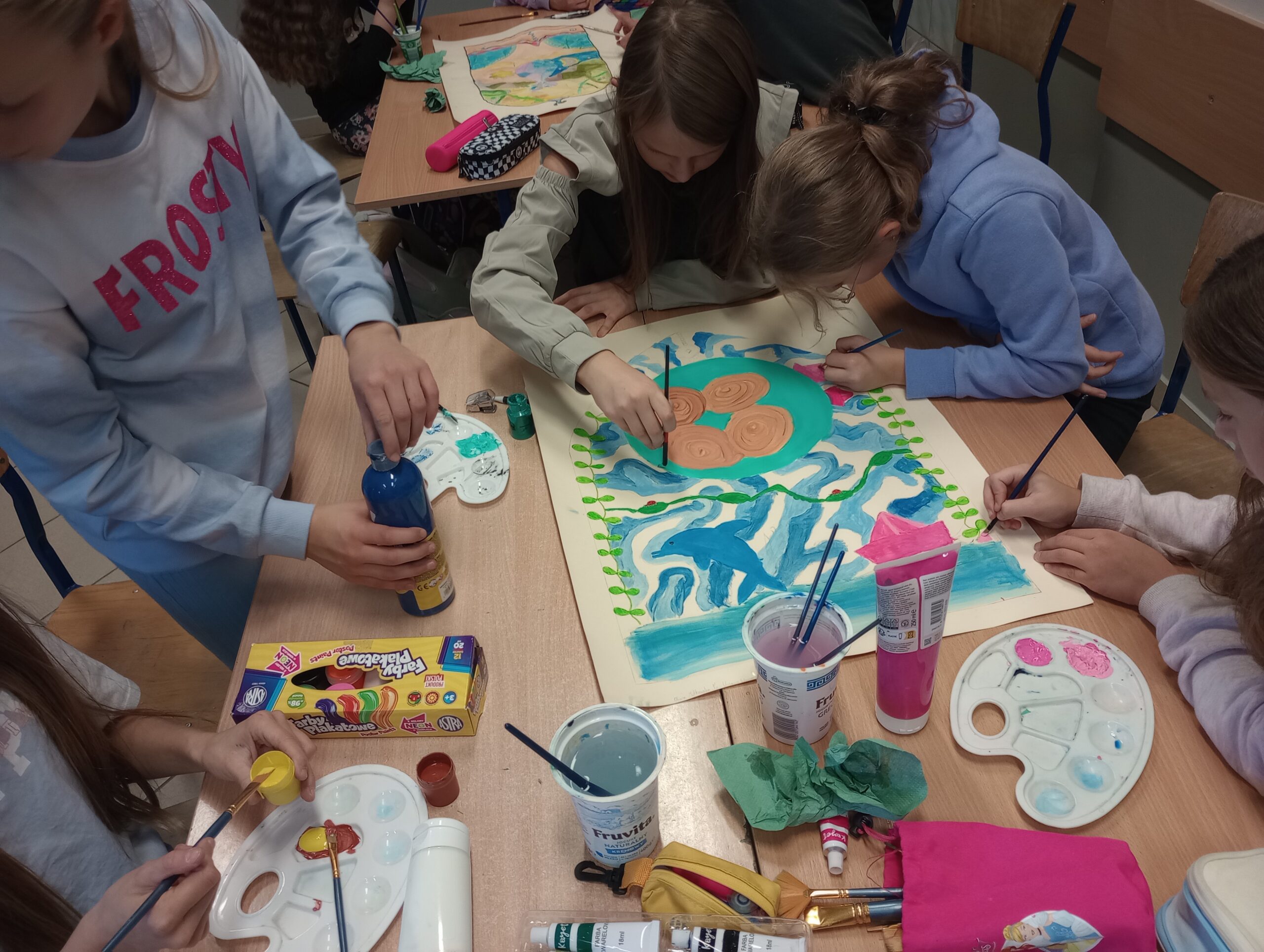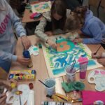 Uczniowie klas piątych realizowali temat związany z omawianym na lekcjach plastyki stylem gotyckim. Wykonane przez nich prace dekorują klasę. Piękne projekty gotyckich okien to efekt pracy grupowej, która uczy współpracy, podziału zadań oraz integruje uczestników.