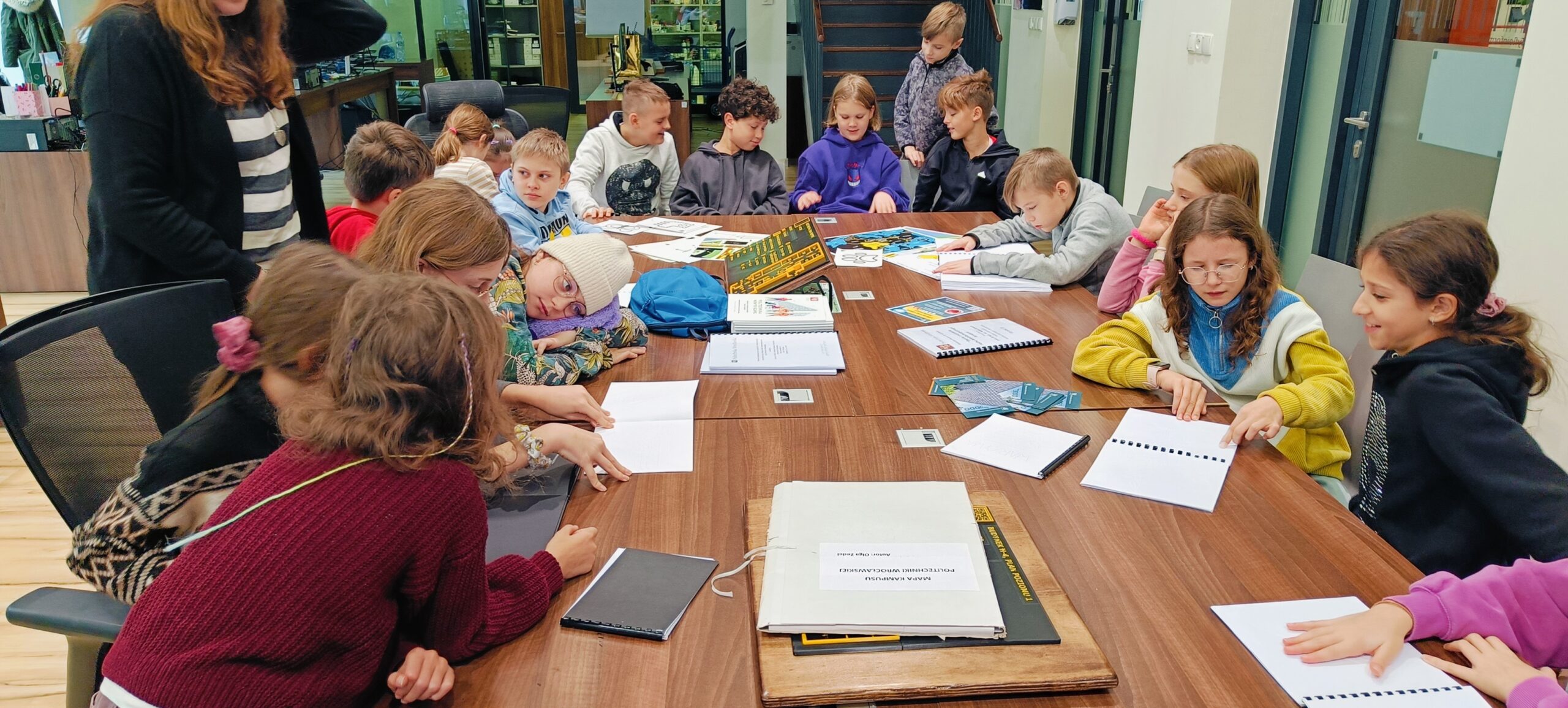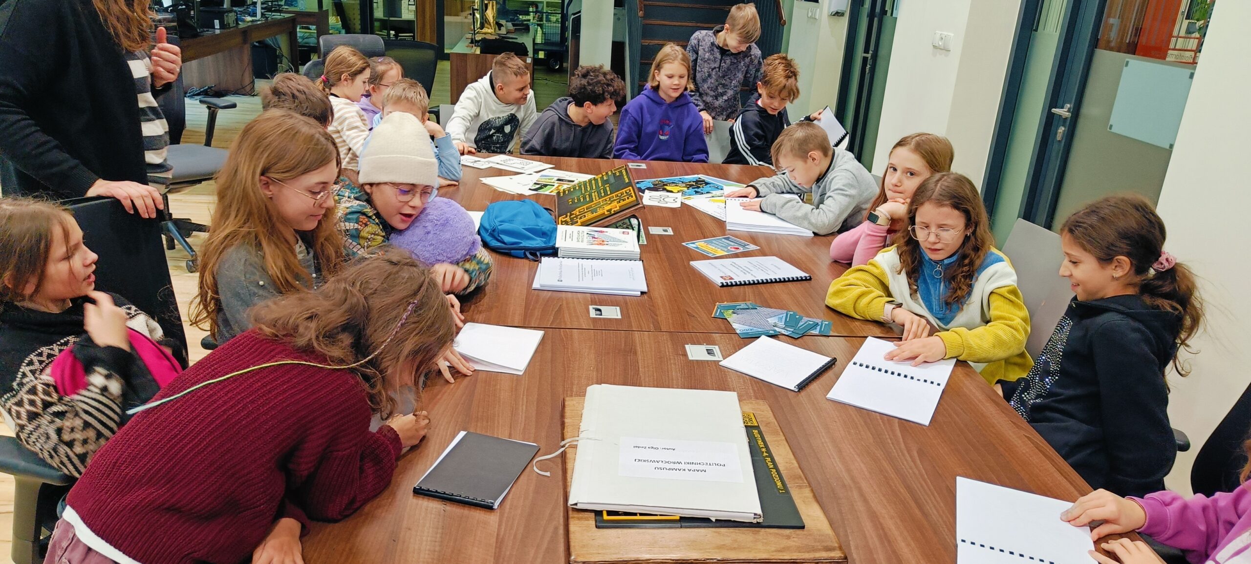 Dnia 13.11. klasa 4c została zaproszona na Politechnikę Wrocławską by wziąć udział w projekcie Polibuda dla Malucha. Dzieci, pod kierownictwem pracownika uniwersytetu Agata Dancewicz, poznali tajniki tyflologii, czy jak tworzy się teksty z wypukłyum tekstem, jakich narzędzi używa się by ułatwić życie osób niewidomych. Interesujące okazały się programy komputerowe zaprezentowanie przez Pana Marka, który jest niewidomym pracownikiem uniwersytetu. Dzieciom bardzo spodobała się możliwość stworzenia własnej wypukłej ilustracji. Myślę, ze najważniejsze w tym było by uczulić dzieci na osoby niewidome w naszym otoczeniu i jak można im pomóc.