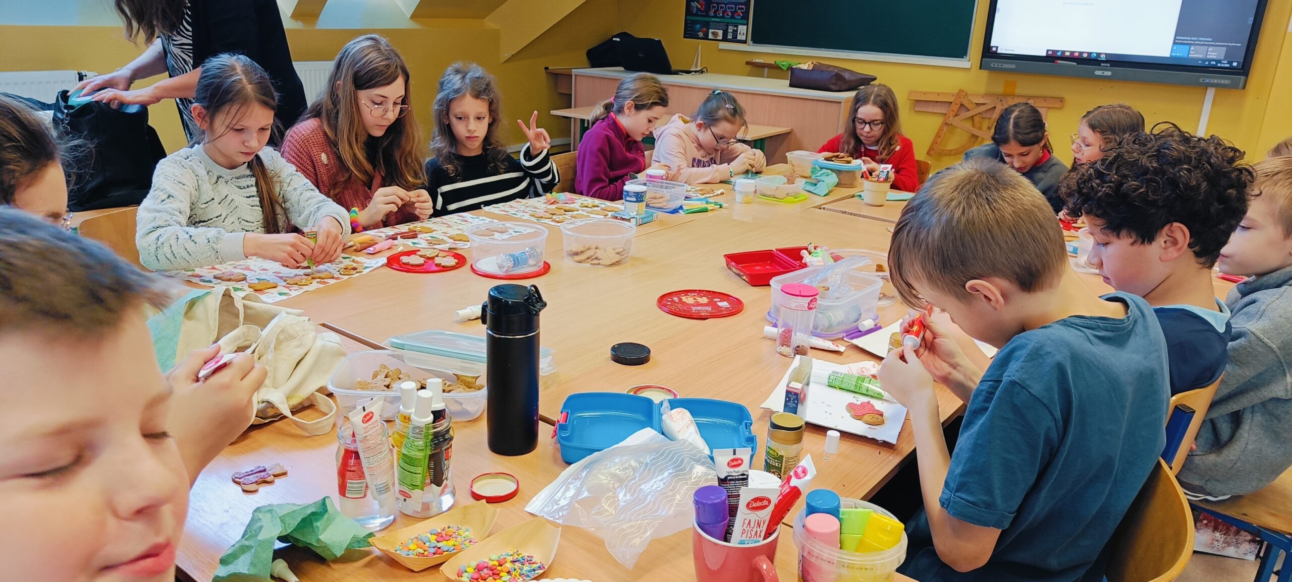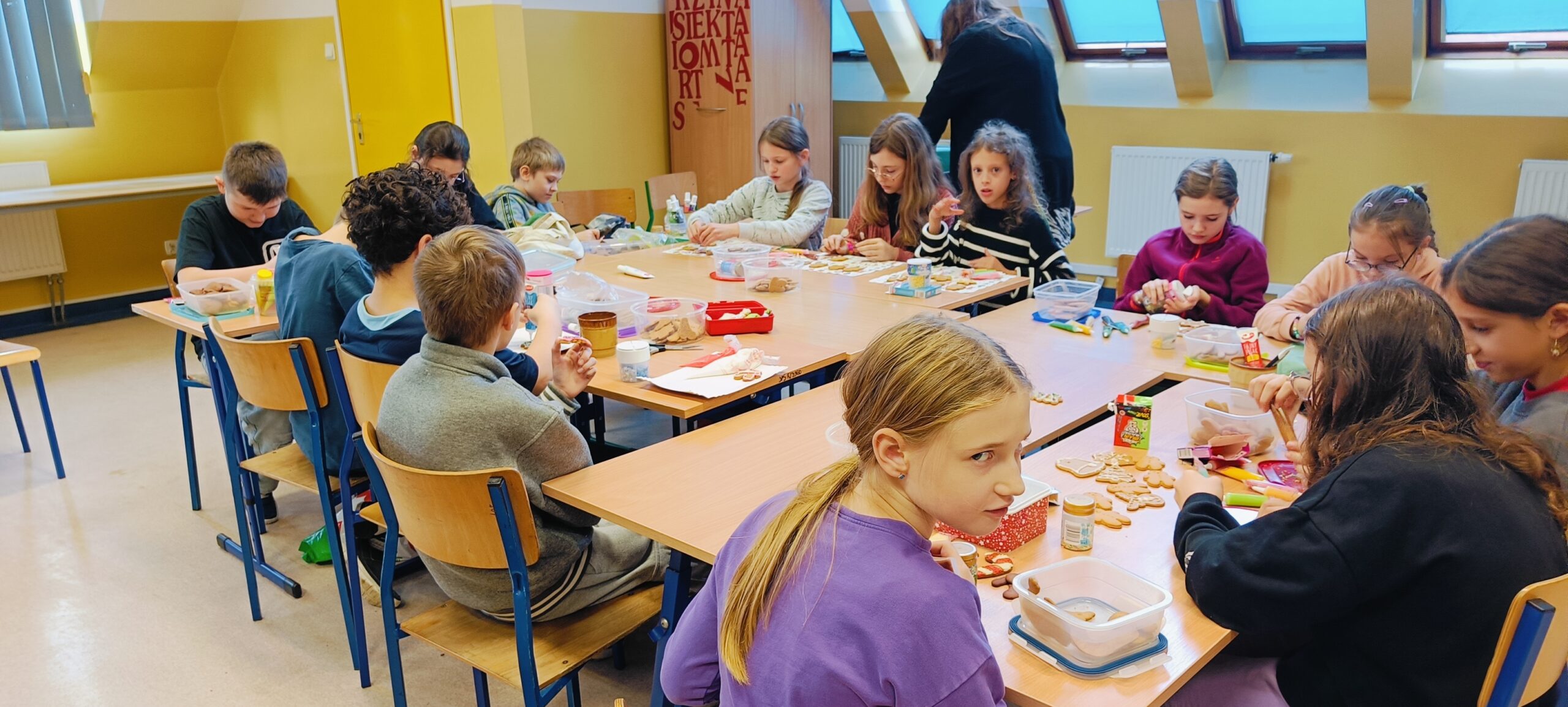5 grudnia, 2024 Mikołajki w klasie 4C Dziś klasa 4 c z okazji Mikołajek ozdabiała pierniczki. Wspólnie, przy akompaniamencie świątecznych piosenek, dekorowaliśmy ręcznie robione pierniczki. Niektóre z nich nie dotrwały do końca, ale zabawa była smaczna. Wszystkim życzymy udanego święta Mikołaja Klasa 4 c z wychowawczynią Malwiną Kamińską