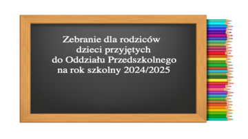 Zapraszamy na zebranie rodziców/opiekunów dzieci przyjętych do Oddziału Przedszkolnego na rok szkolny 2024/2025, które odbędzie się 29 sierpnia 2024 roku o godzinie 17.00. Zebranie odbędzie się w sali 106. Podczas zebrania z rodzicami dzieci z grupy 0a będzie możliwość zakupu pakietu książek (koszt – 220 zł). W roku szkolnym 2024/2025 obowiązują następujące podręczniki: […]