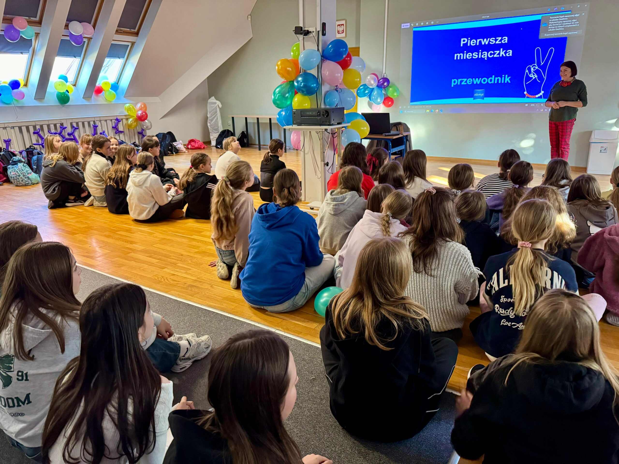 22 stycznia 2025 r uczennice klas 5 i 6 uczestniczyły w spotkaniu w ramach projektu edukacyjnego ” Między nami kobietami”. Celem programu jest przygotowanie dziewcząt do pierwszej miesiączki, przypomnienie i uzupełnienie wiedzy z zakresu fizjologii dojrzewania jak również wyrobienie właściwych nawyków higienicznych.