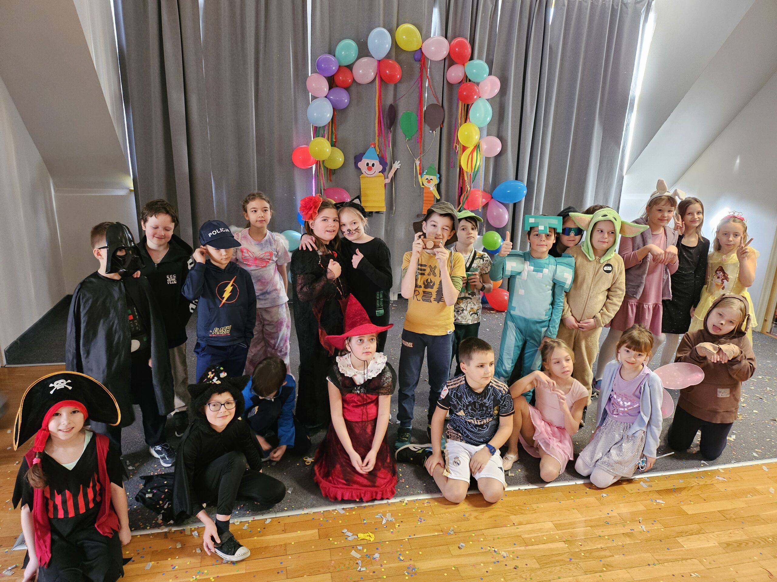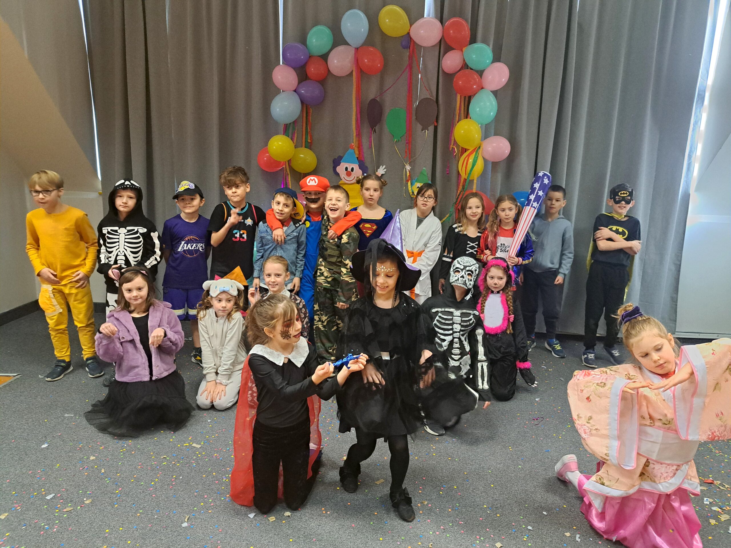 23 i 24 stycznia 2025r. nasza szkoła zamieniła się w krainę baśni. Wszystko za sprawą balu karnawałowego klas 1 – 3. Na parkiecie królował chaos i radość. Koty goniły myszy, superbohaterowie ratowali świat, a księżniczki tańczyły z piratami. Było głośno, kolorowo i szalenie wesoło. Fantastyczny wodzirej – Klaun Alutka, rozkręcił imprezę do granic możliwości. Taniec, śmiech i zabawy trwały do upadłego. Nawet nauczyciele nie mogli oprzeć się rytmom i włączyli się do wspólnej zabawy. Bal karnawałowy był nie tylko doskonałą okazją do zabawy, ale także do integracji uczniów z różnych klas. To wydarzenie pokazało, jak ważna jest wspólna zabawa i tworzenie pozytywnych wspomnień.