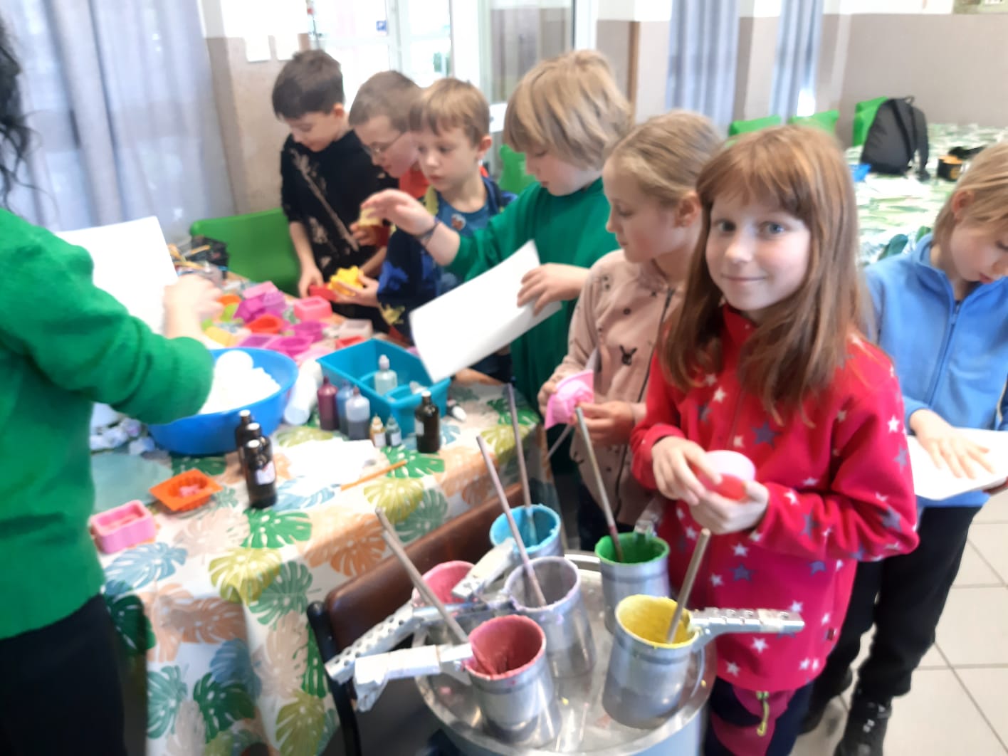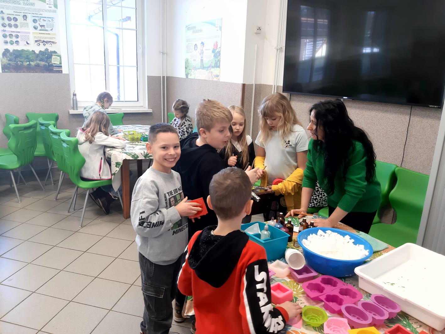 17 i 18.02.2025 uczniowie klasy 2a i 2d wybrali się na dwudniową wycieczkę do Centrum Edukacji Ekologicznej i Krajoznawstwa „Salamandra” w Myśliborzu, gdzie przygotowano dla nich mnóstwo ciekawych i inspirujących zajęć praktycznych. Zajęcia odbywały się w specjalnie dostosowanych i odpowiednio wyposażonych w pomoce pracowniach m.in. w pięknej sali muzealnej, w otoczeniu mieszkańców polskich lasów, gdzie nasi uczniowie zgłębiali tajemnice życia zwierząt. Na warsztatach w pracowni laboratoryjnej w ramach lekcji „Mali odkrywcy „ uczniowie wykonali doświadczenia związane z właściwościami wody, natomiast w „Chmuratorium” zgłębiali wiedzę na temat wulkanów. Na kolejnych zajęciach uczniowie pogłębili swoją wiedzę na temat pszczół, poznali ich budowę, rolę w ekosystemie oraz gatunki występujące w Polsce. Na zakończenie zajęć wykonali własnoręcznie świece z wosku pszczelego. Dużo frajdy przysporzyły dzieciom warsztaty papieru czerpanego jak również warsztaty tworzenia mydełek, gdzie uczestnicy mieli możliwość eksperymentowania z gliceryną, obserwowania procesu jej topienia pod wpływem wysokiej temperatury i zastygania w niskiej, zapoznania się barwnikami i zapachami używanymi w produkcji mydełek a także wykonania własnego mydełka. Wszystkie zajęcia odbywały się w miłej i życzliwej atmosferze. Uczniowie wrócili do domów pełni wrażeń i nowych wiadomości a wycieczka była dla nas również okazją do integracji międzyklasowej.