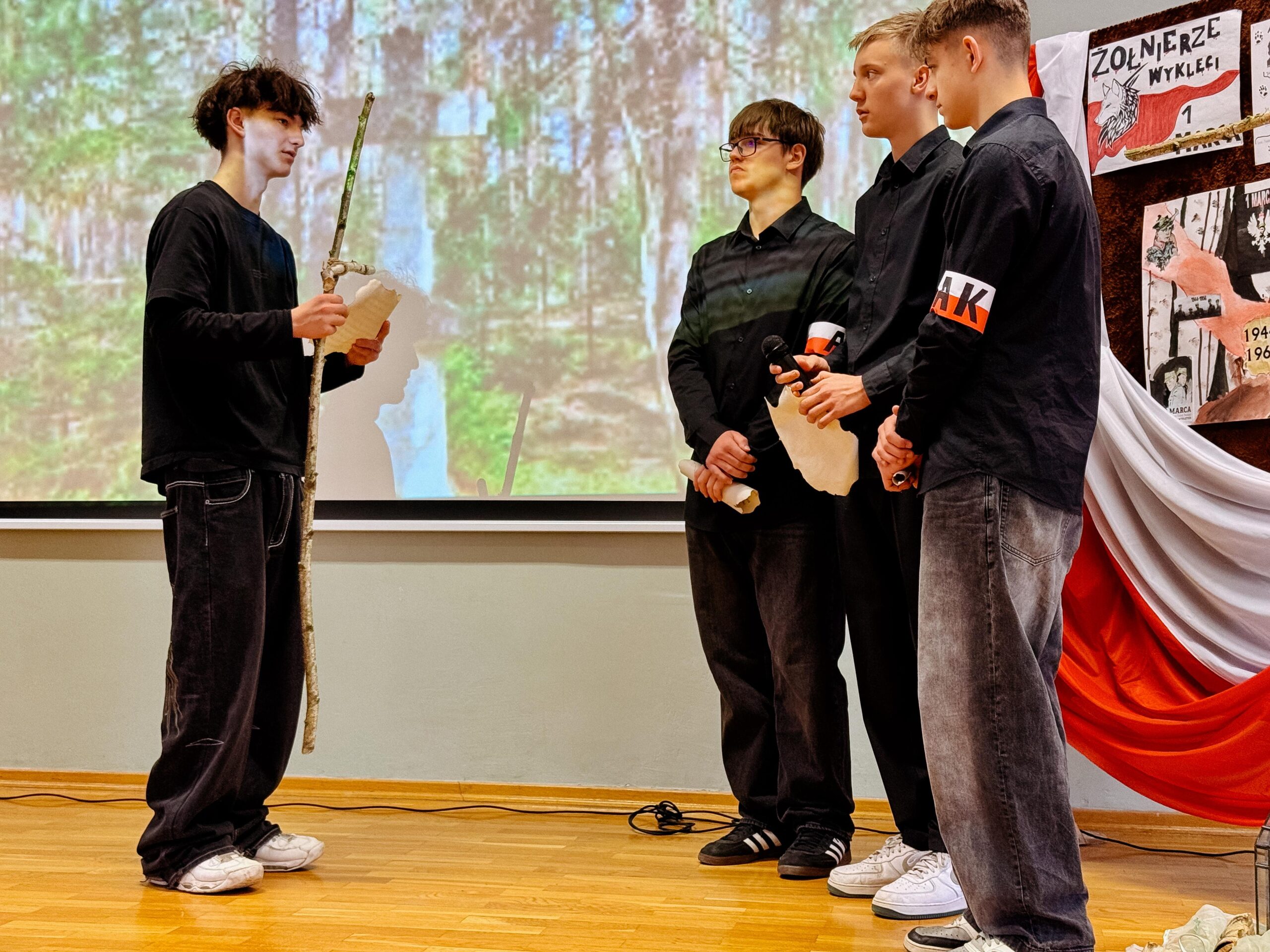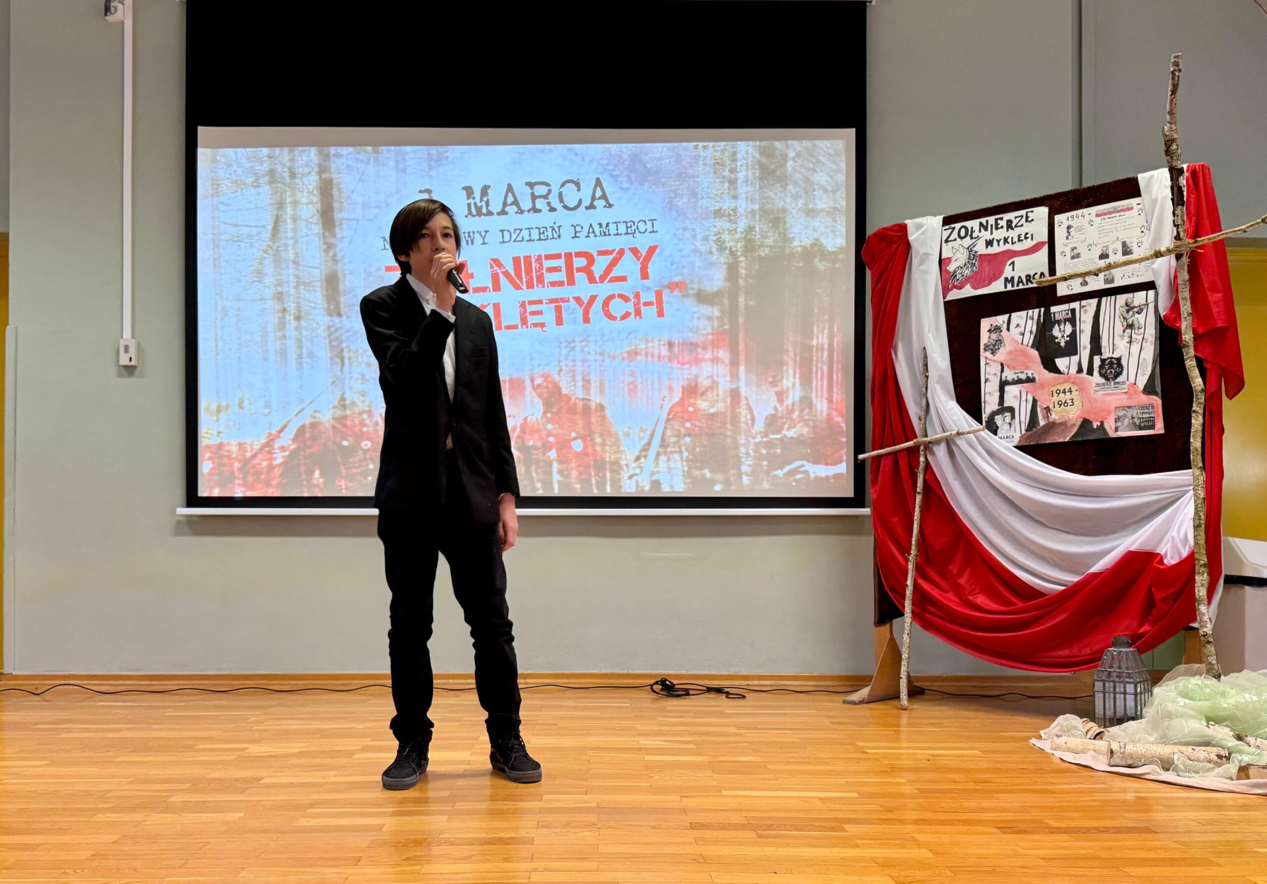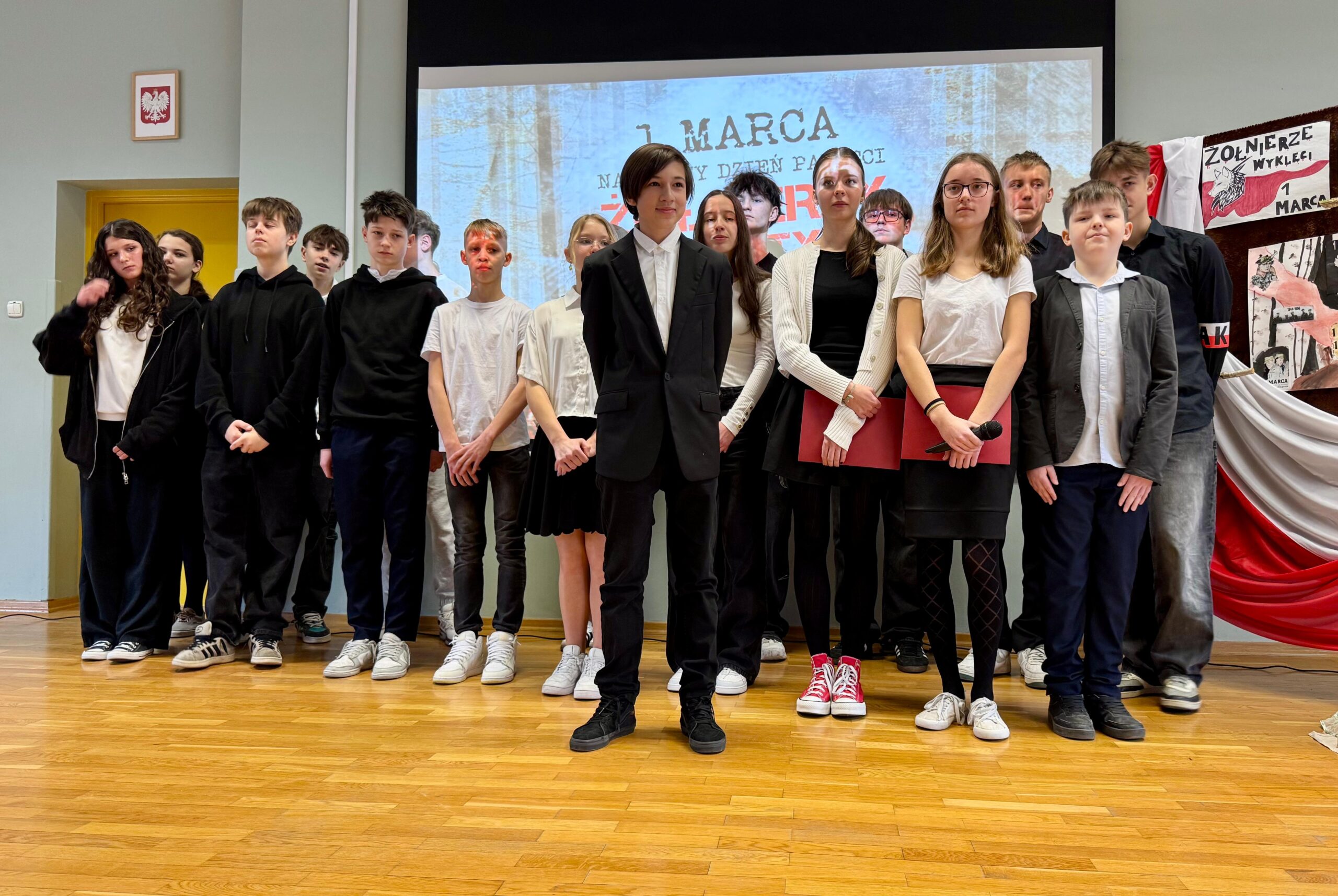 1 marca obchodzony jest Narodowy Dzień Pamięci „Żołnierzy Wyklętych”. Tego dnia składamy hołd wszystkim bohaterom, którzy po II wojnie światowej przeciwstawili się władzy komunistycznej. Wierni ideałom – „Bóg, honor, Ojczyzna” – złożyli największą ofiarę – śmierć. Z tej okazji uczniowie klasy 8a oraz Tomasz Pindor z klasy 4 przygotowali uroczysty apel poświęcony żołnierzom niezłomnym i ich bohaterskim czynom.